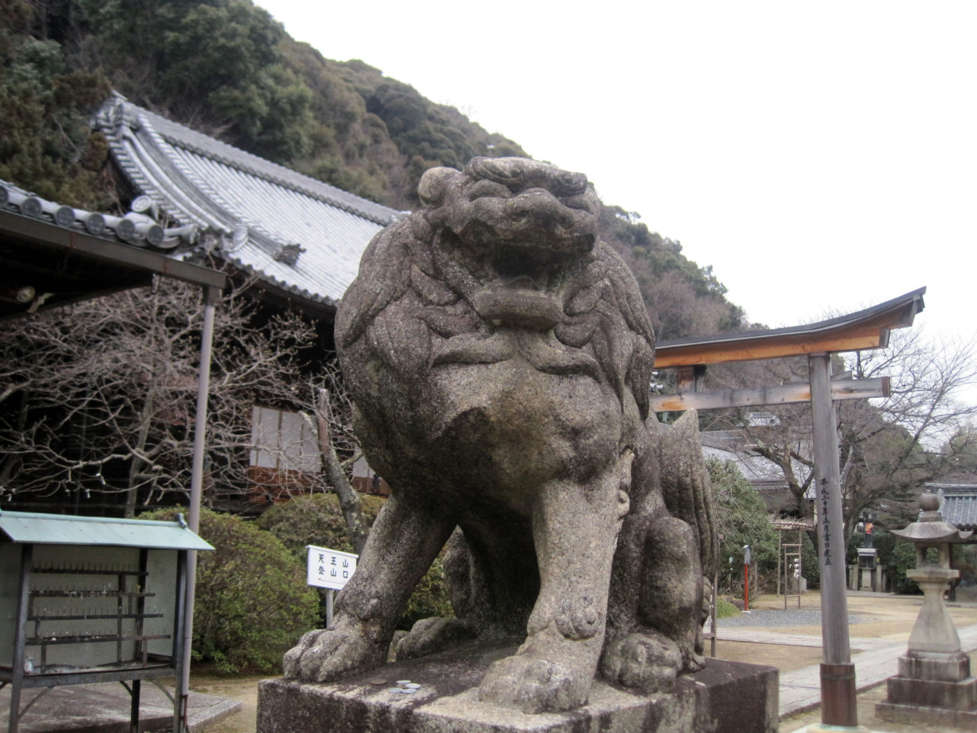【聖天堂は天皇の命令により神社造で、お寺でありながら鳥居があり、一の鳥居には観音寺、二の鳥居には聖天宮の扁額が掛かっている。】です。