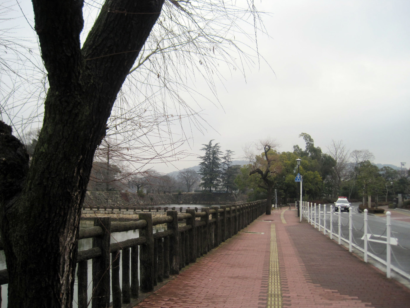 最近,よく烏城周辺を歩きますが,土手沿いに,旭川を眺め,また,内堀を反対から見てみましょう。