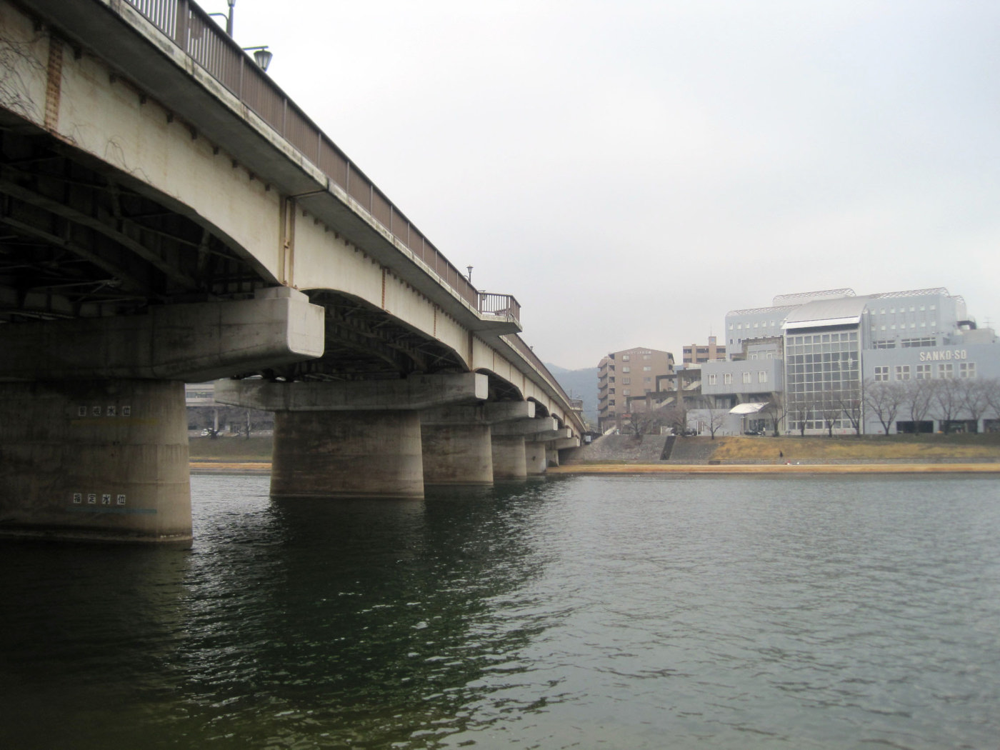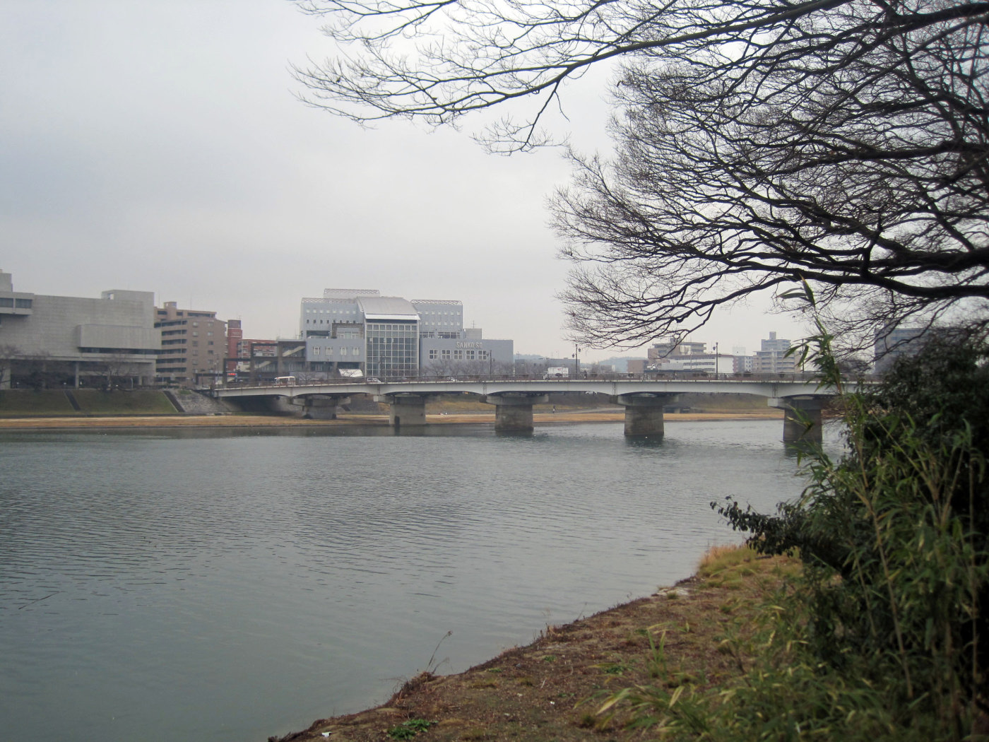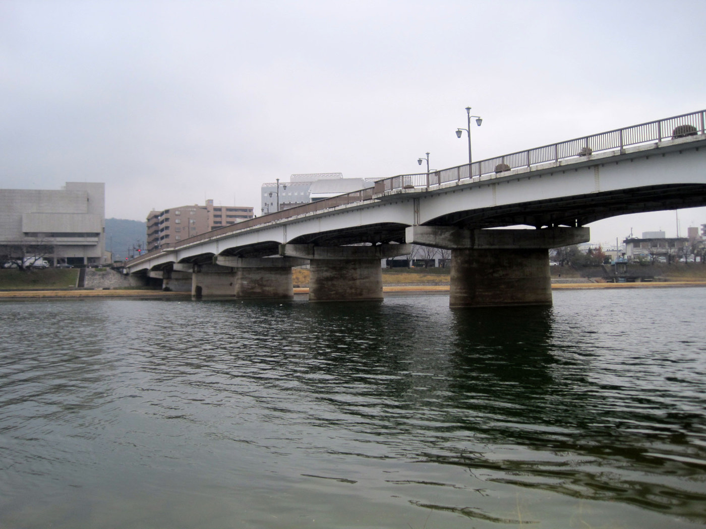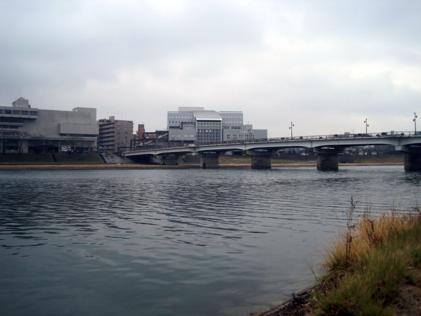 曇天の空の下ではありますが,旭川が穏やかに流れても行っています。