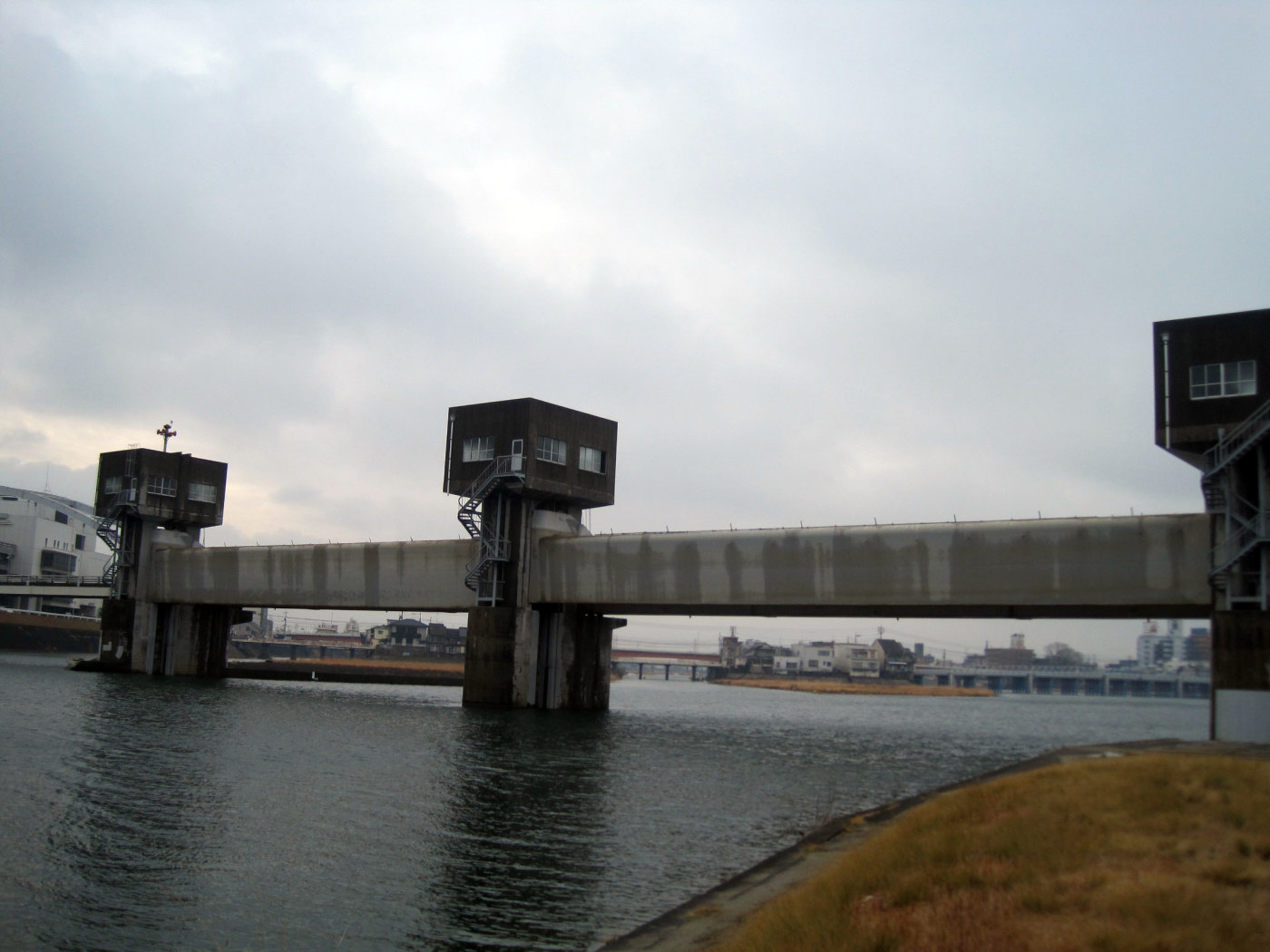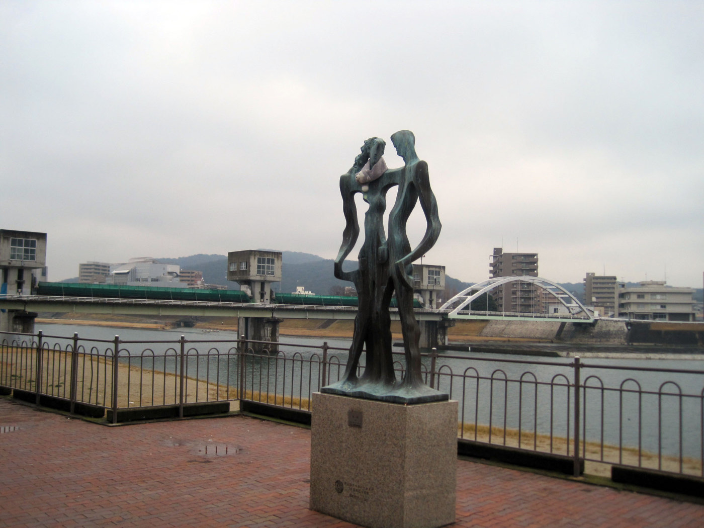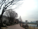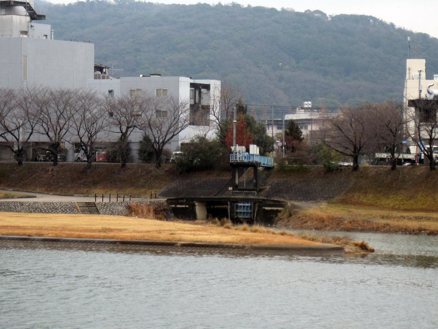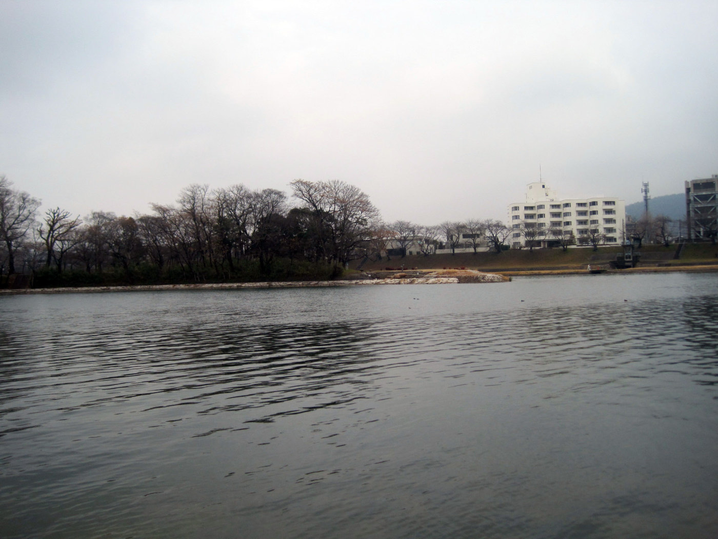 曇天の空の下ではありますが,旭川が穏やかに流れても行っています。
