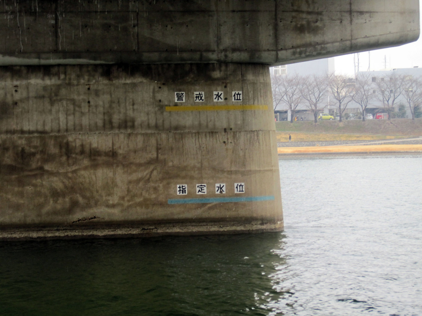 橋桁には,水位の基準が書かれています。