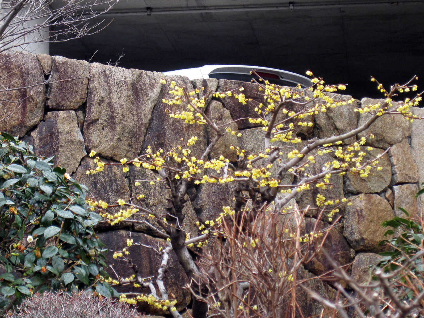県庁の庭って,小さな表の駐車場の出口の処ですが・・・蝋梅が