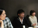 照明をしてくださった前田先生と岡大農学部4年の眞野さん,さらには,昨年度までうちに居た宮原さんも含めて,クロークと写真係を手伝っていただいた椛蛹Fの大塚さんも参加して下さいました。 |