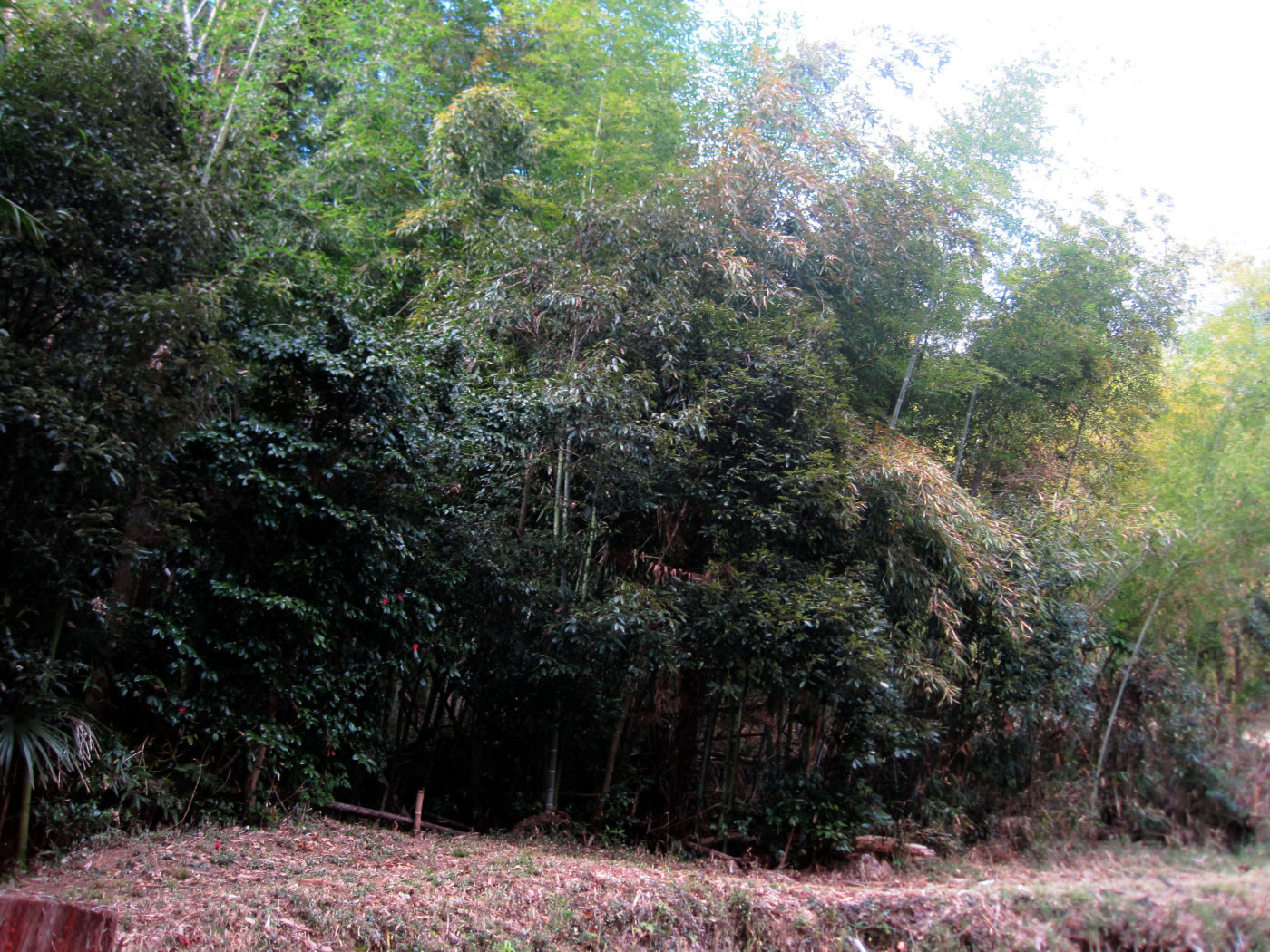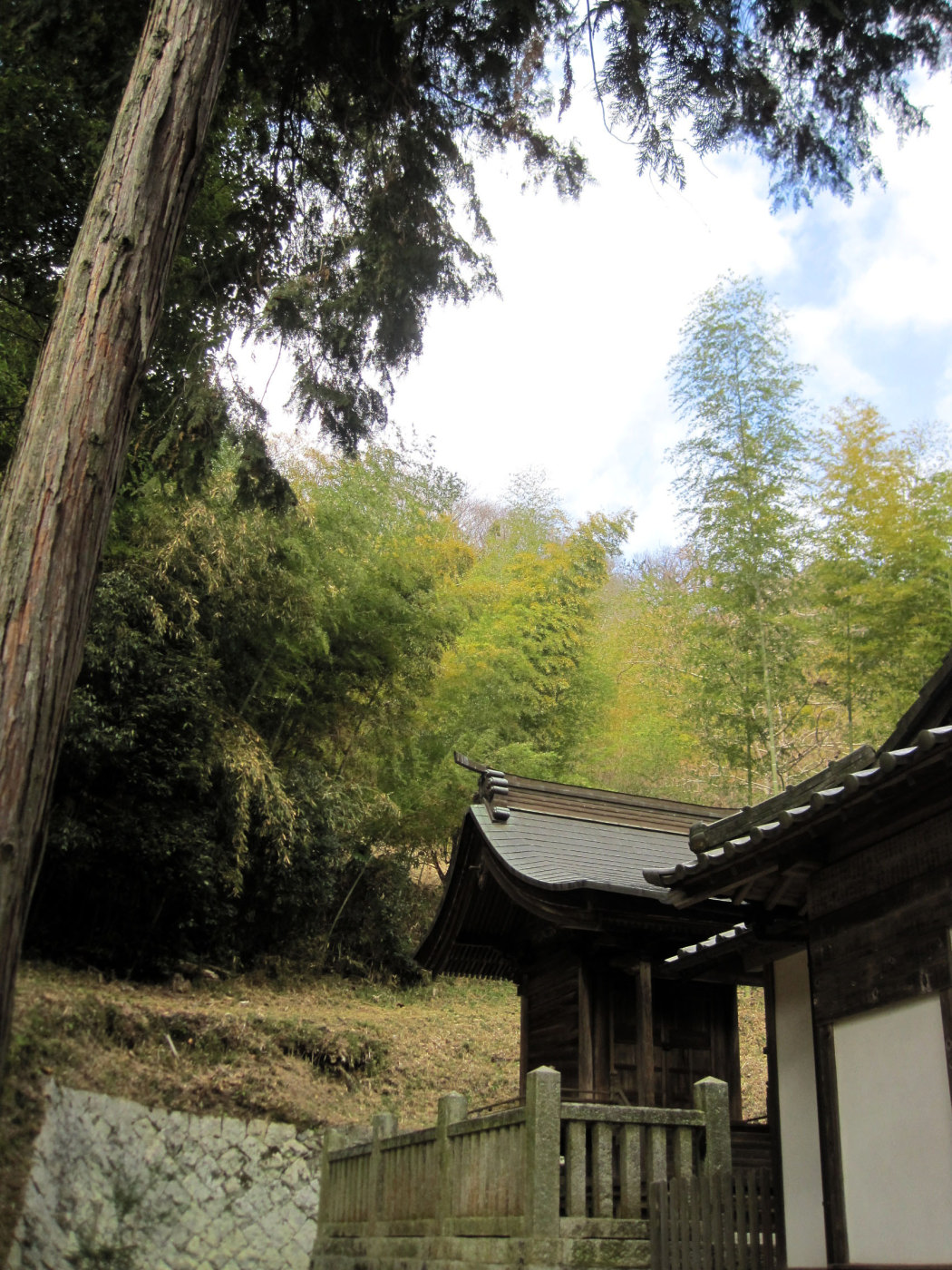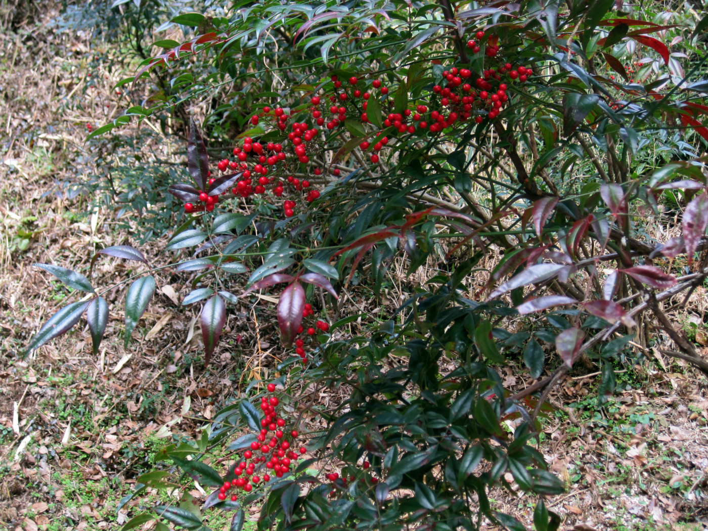 裏手の竹林の緑が冬枯れた目に鮮やかです。