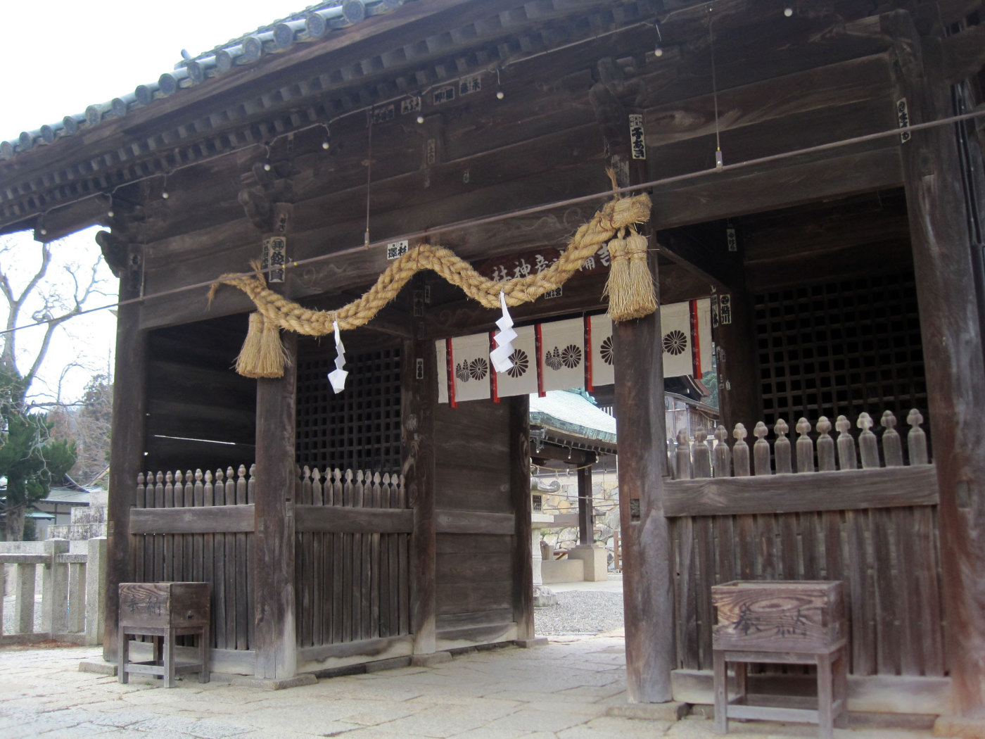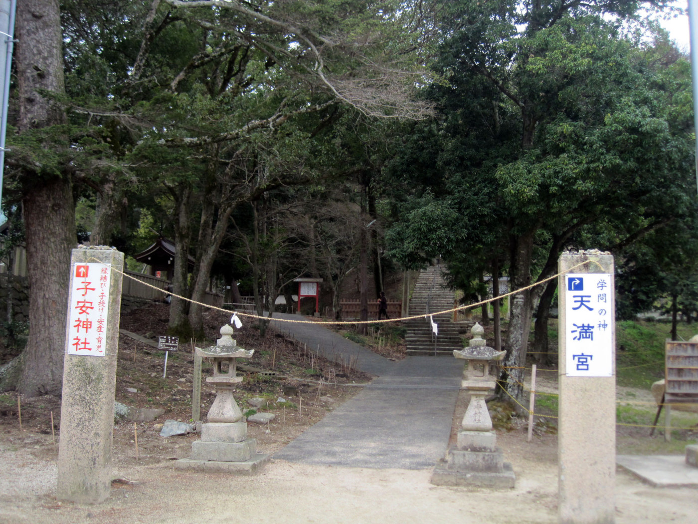 さて,本殿っを横に見ながら門を抜けて,子安神社〜天満宮へと向かいましょう!