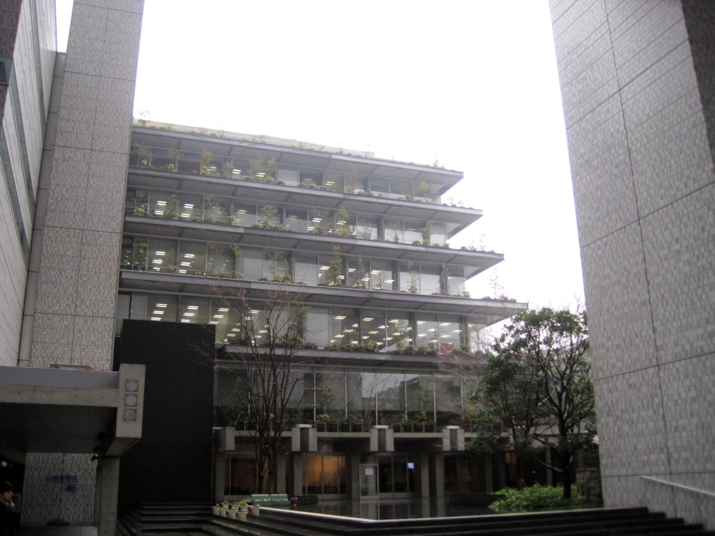 向かいにみえる県立図書館も,県庁も雨の中です(スクータ移動者には辛い)