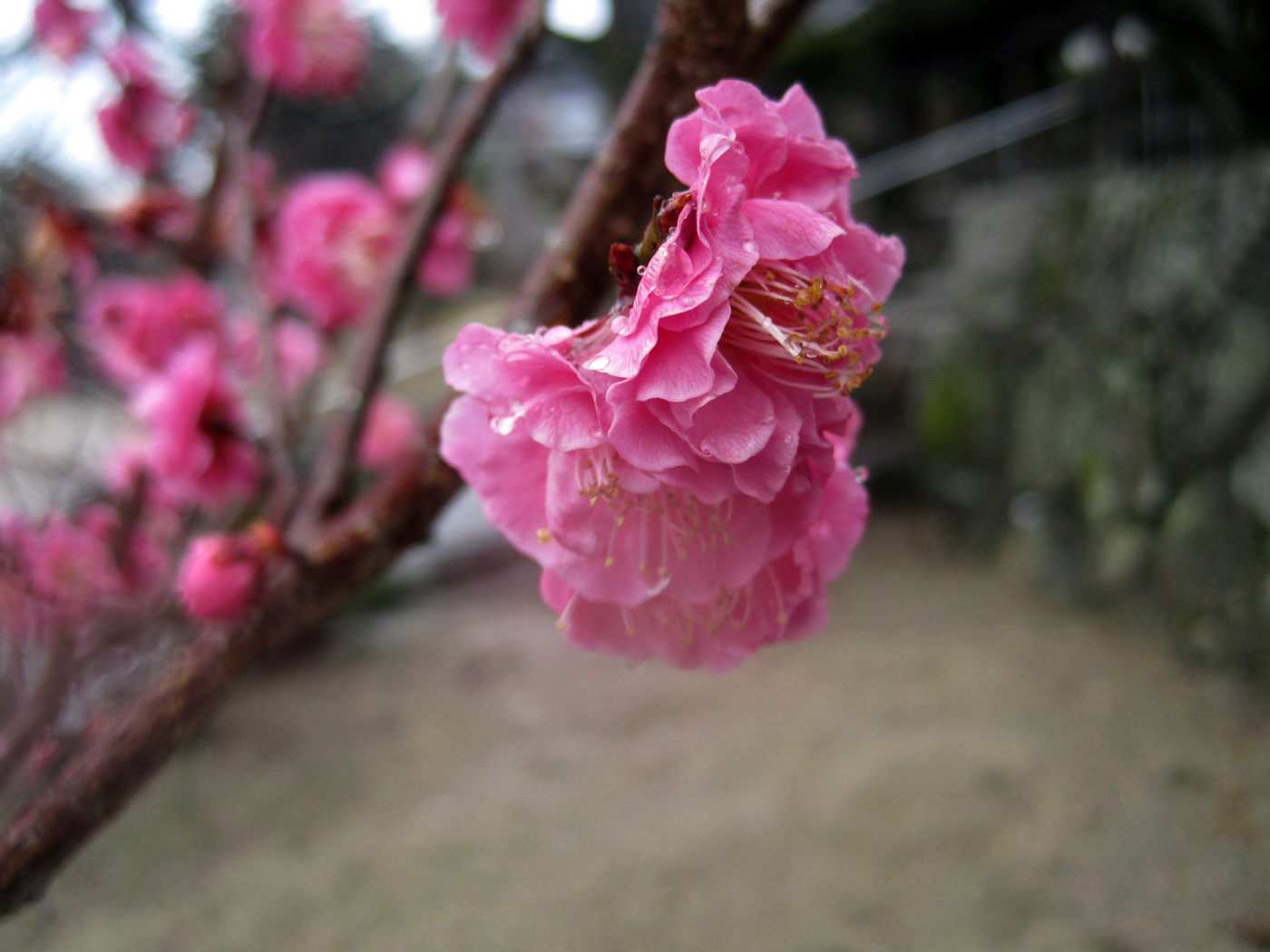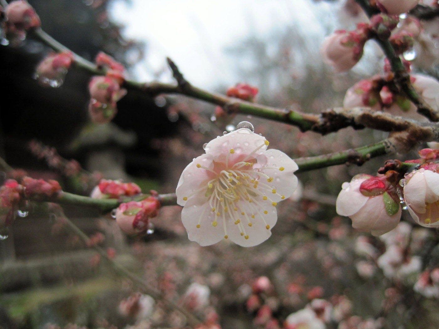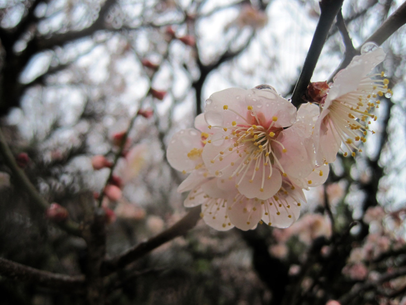3日続いた岡山へ出向く用事も,こうやって梅を堪能(っていうか,花びらに乗っている雨粒が少しだけ花には重そうですが)出来て,まぁよかったってしましょうか。