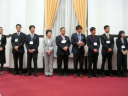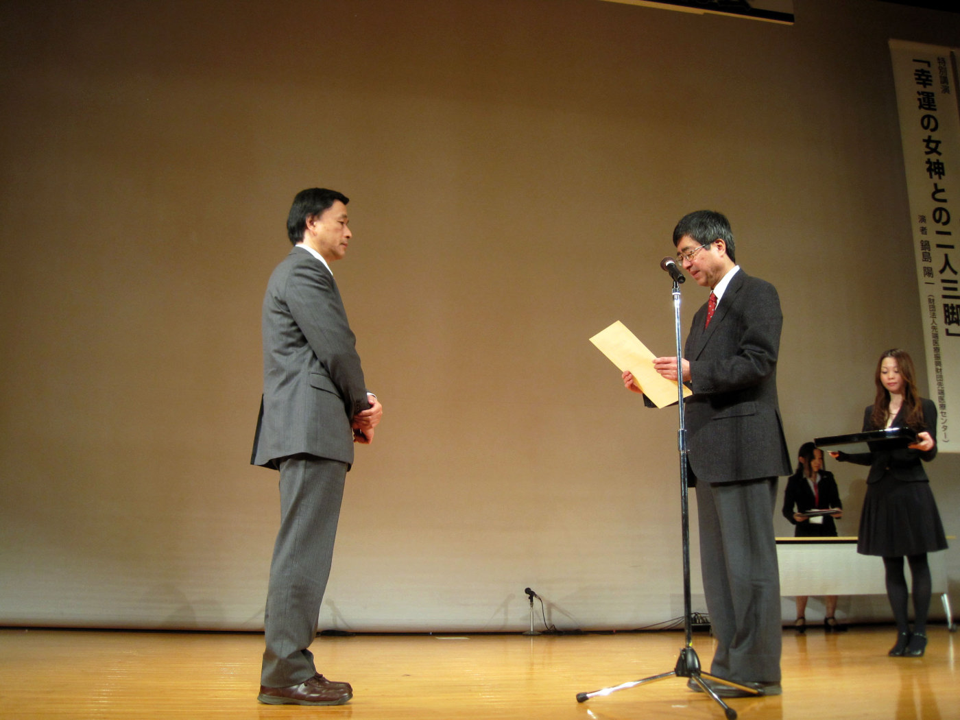 遠山新理事長から主題歌担当理事に指名されました。 |