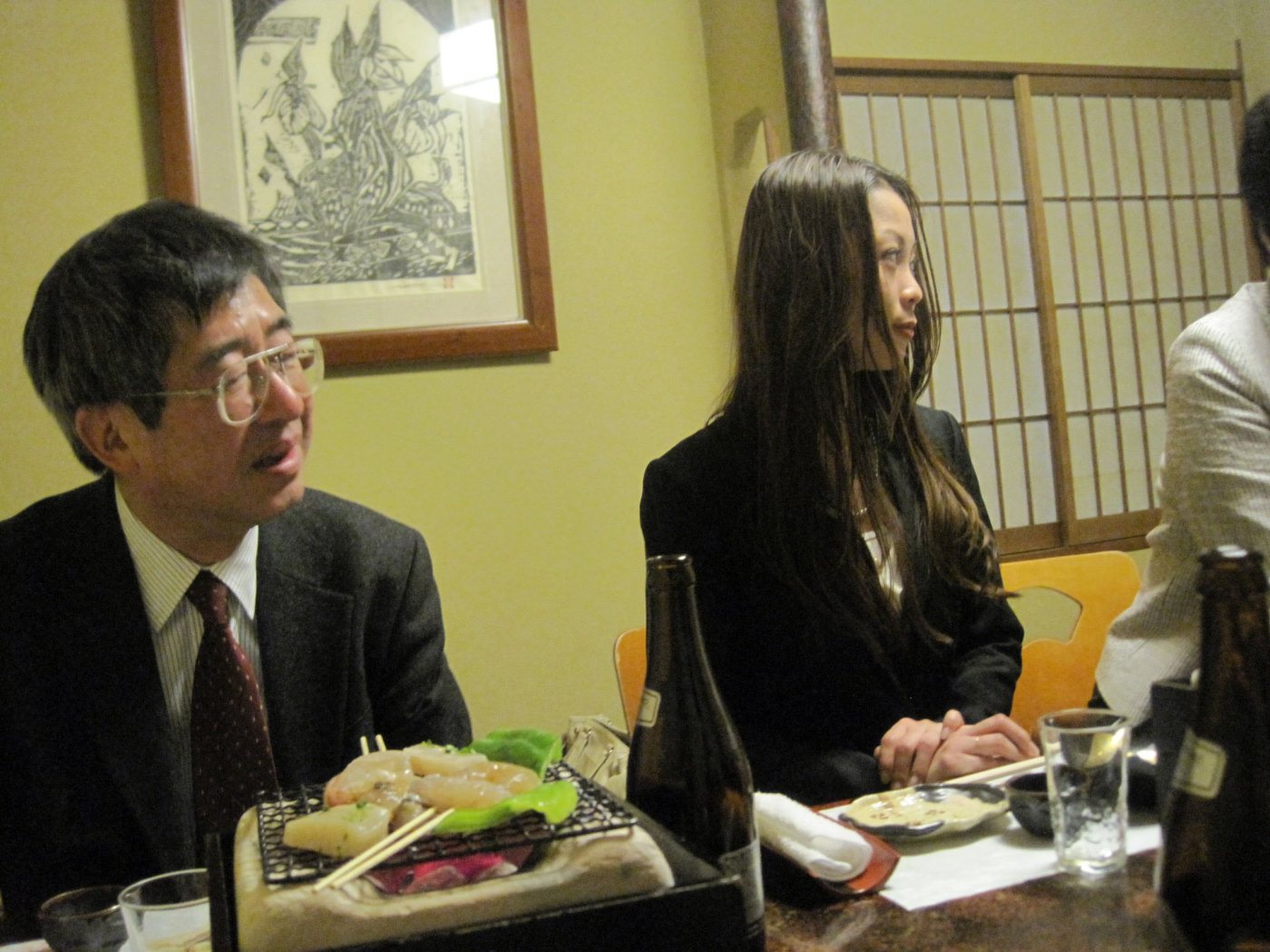 さて,そのあと,祇園までまた徒歩! っていうのも,中西印刷の事務支局の宇野さんの慰労を佐藤理事長,仲井事務局長そして東北大事務の鈴木さんが企画され,大槻は和文誌担当の石田さんと宇野さんの慰労会を企画していたのでの,合体させました。