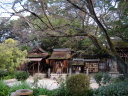 【斎場所大元宮(さいじょうしょだいげんぐう、祭神:天神地祇八百万神)。延喜式内社全3132座の天神地祇八百万神を祀る。八角形の本殿に六角の後房を付けた、極めて特異な形状をしており、重要文化財に指定されている。】だそうで,確かにこの八角〜六角はちょっと不思議な印象です。