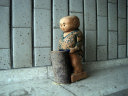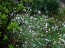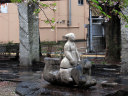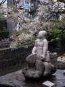 石像も雨に濡れながら・・花を惜しんでいるようです。