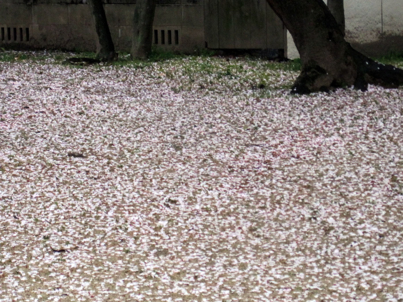 宵闇が迫り・・・・雨に人通りも少ないなかで・・・桜は観ている人が居ようが居まいが,咲いては散っていました。