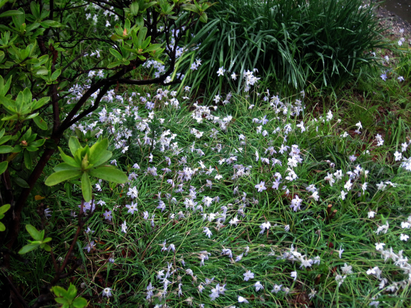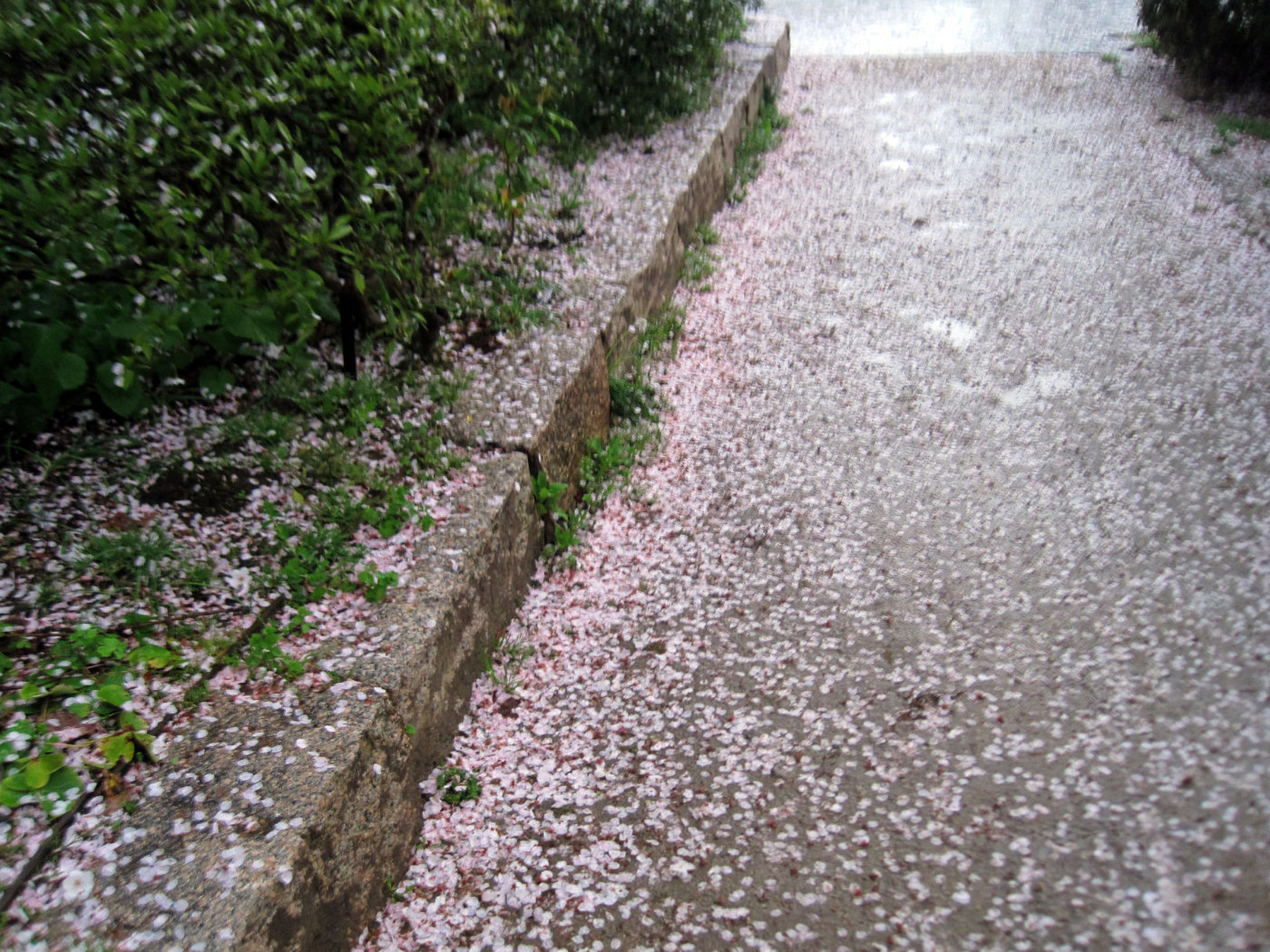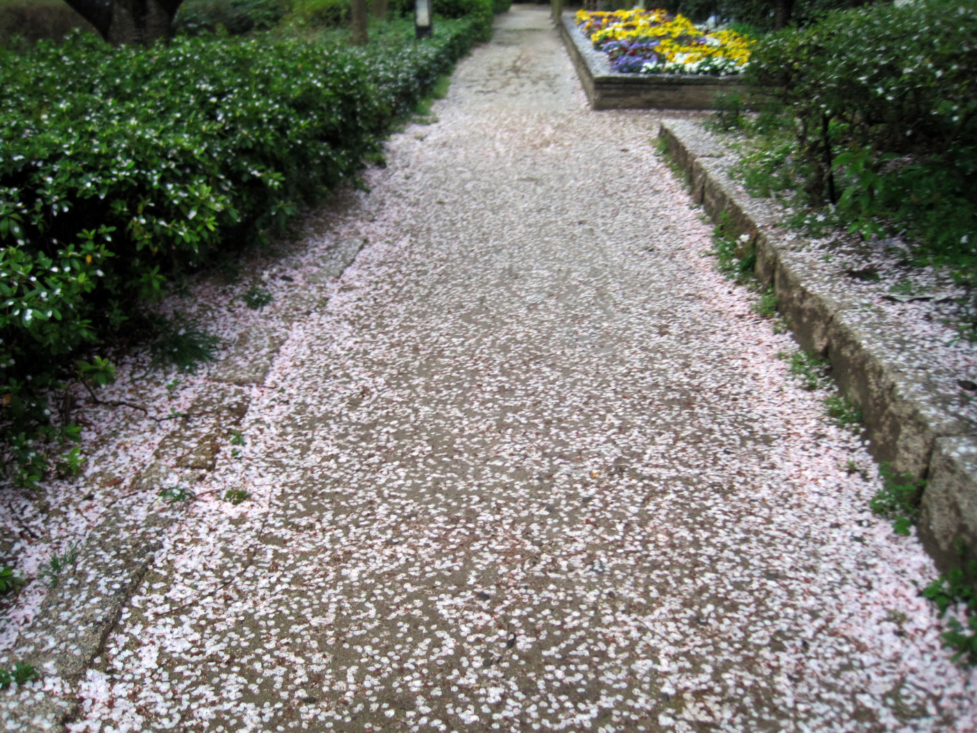 靴に花びらが付いたり,雨傘にも落ちたりしてきました。