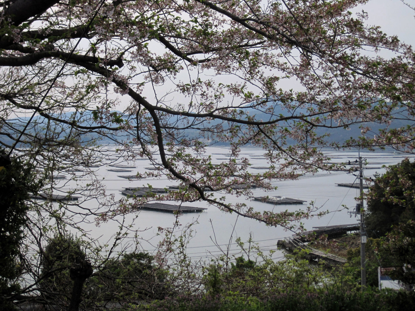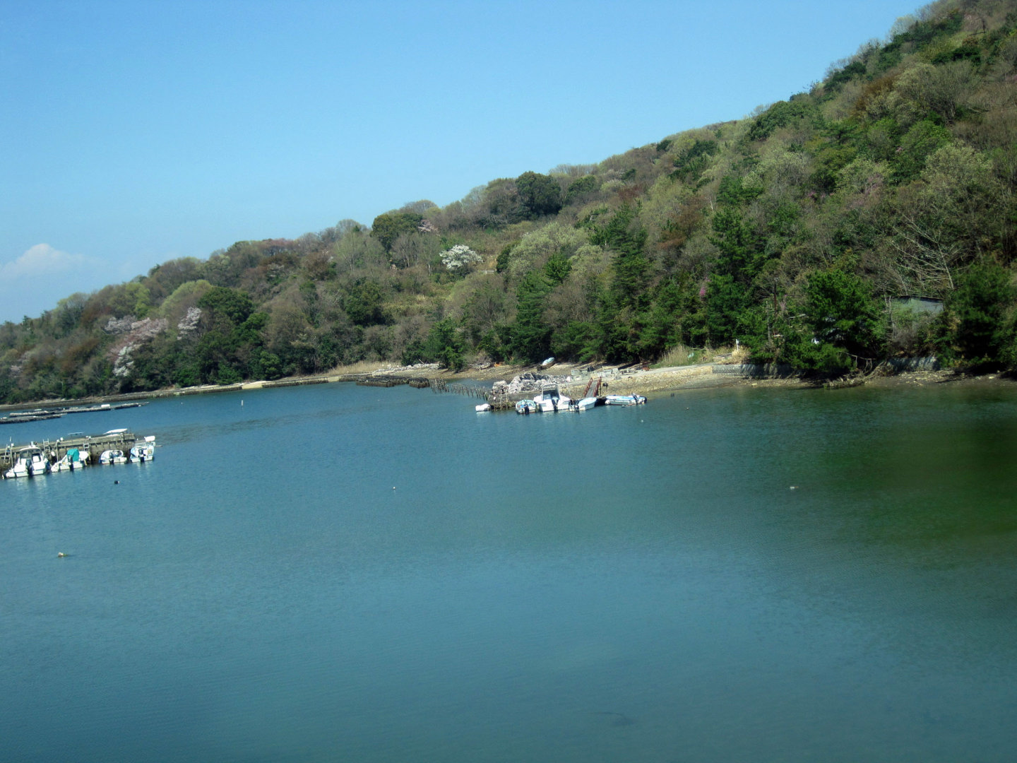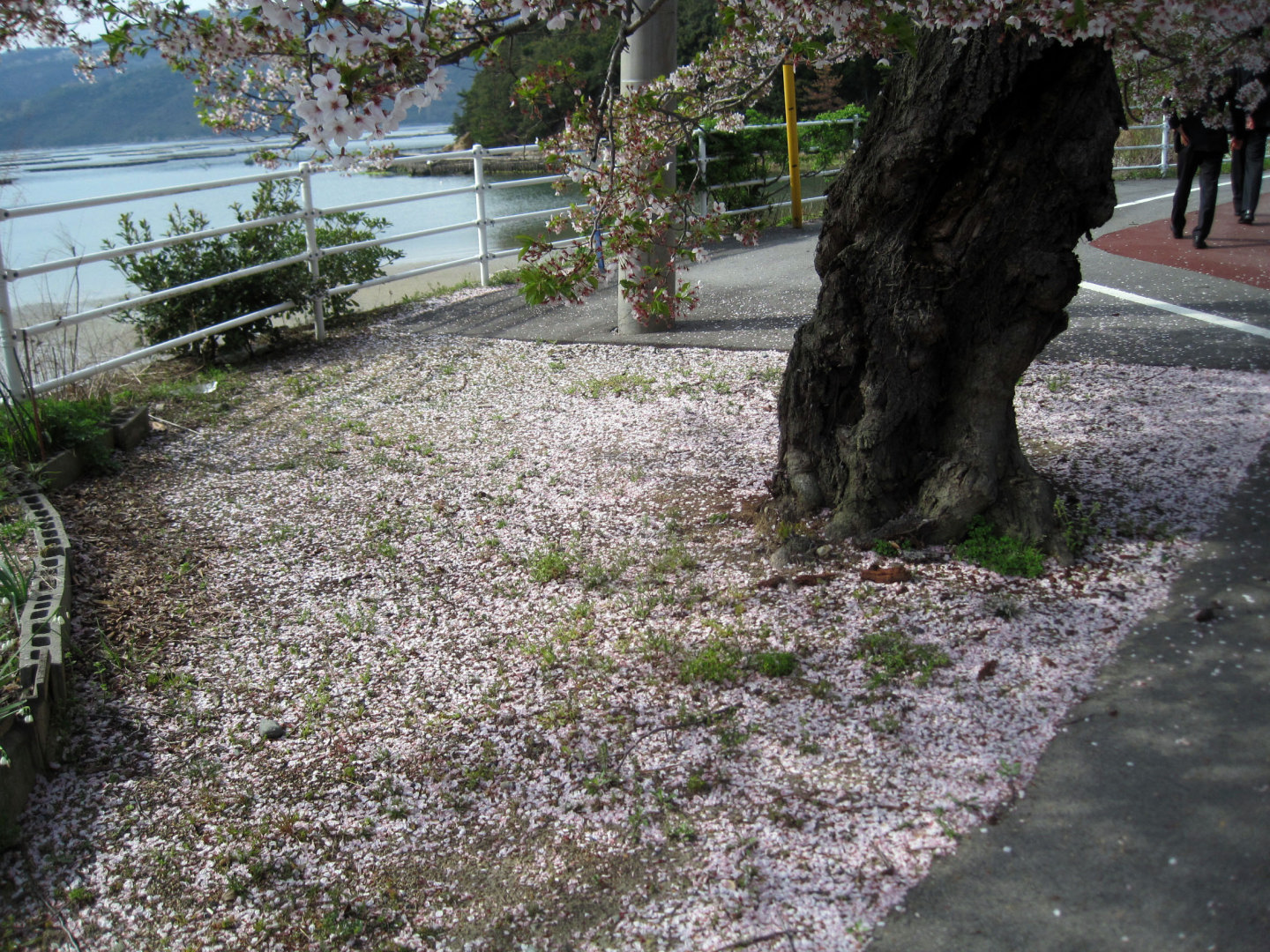 春の長島周囲は,青い海,そして,葉桜になりかけていますが,桜もまだ,結構,残っています