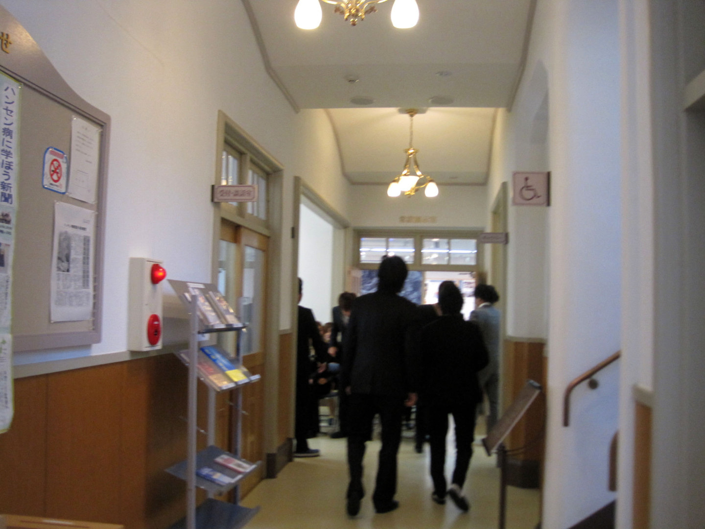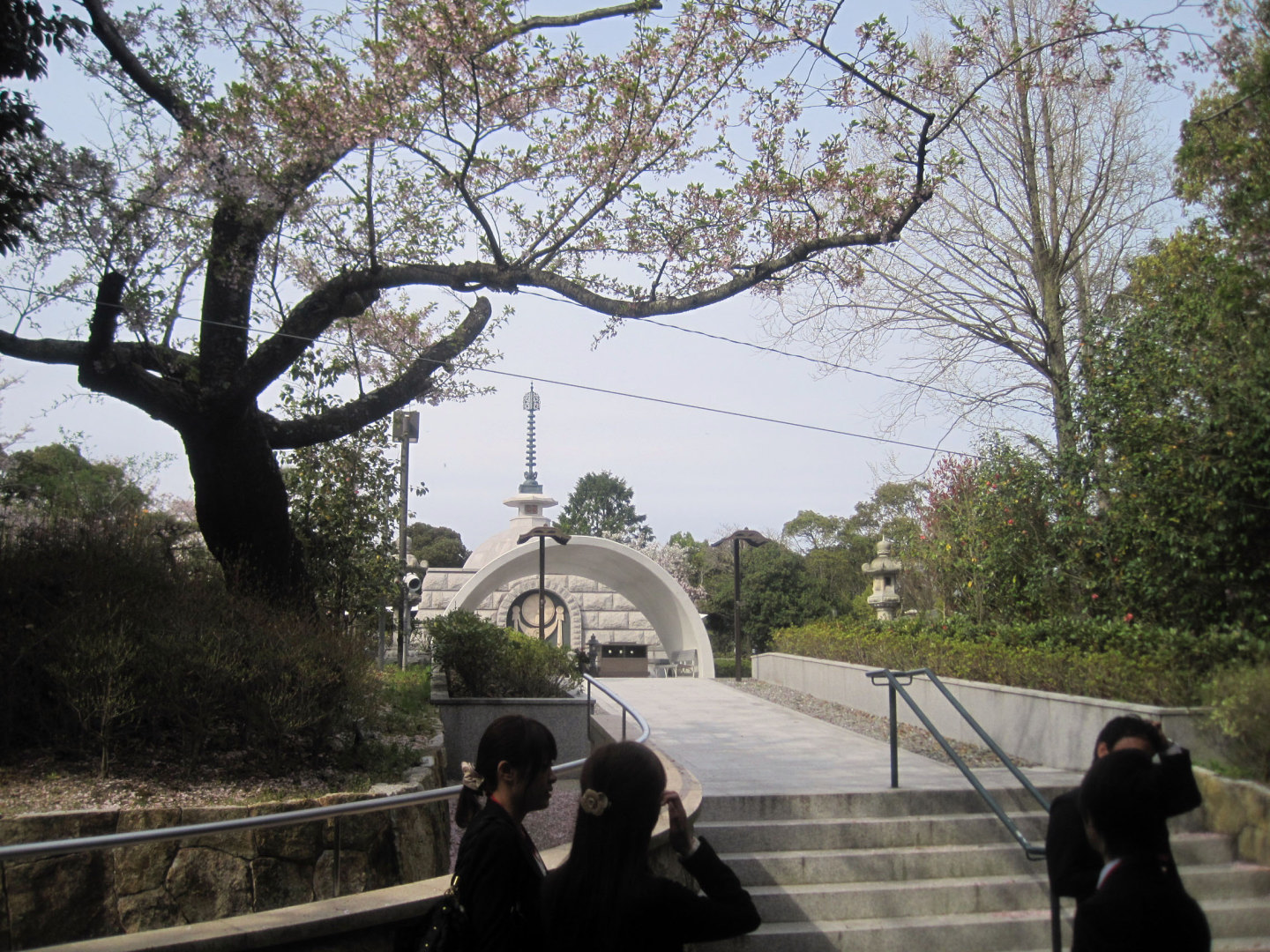 さて,哀しい歴史を秘めた水子供養等と,春に咲き誇る花々を眺め,さらに穏やかな瀬戸の海を木の間越しに見つめながら・・・福祉棟に向かいました。