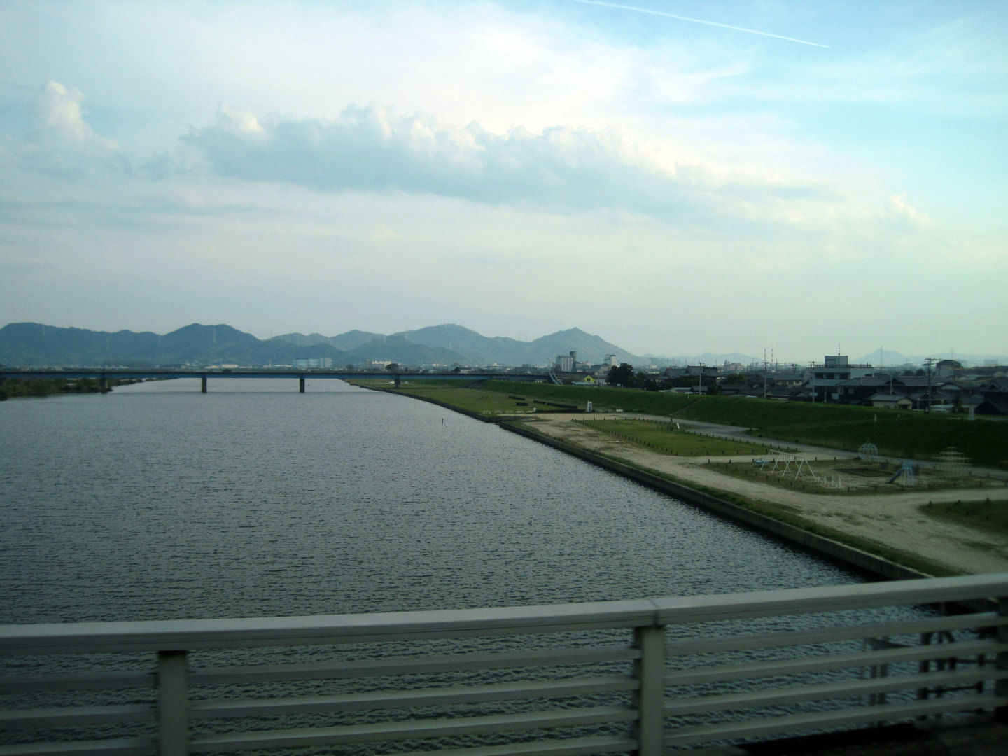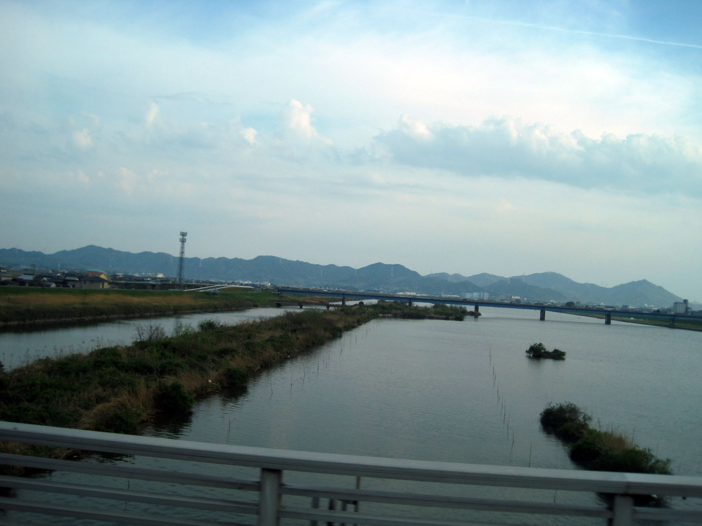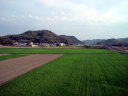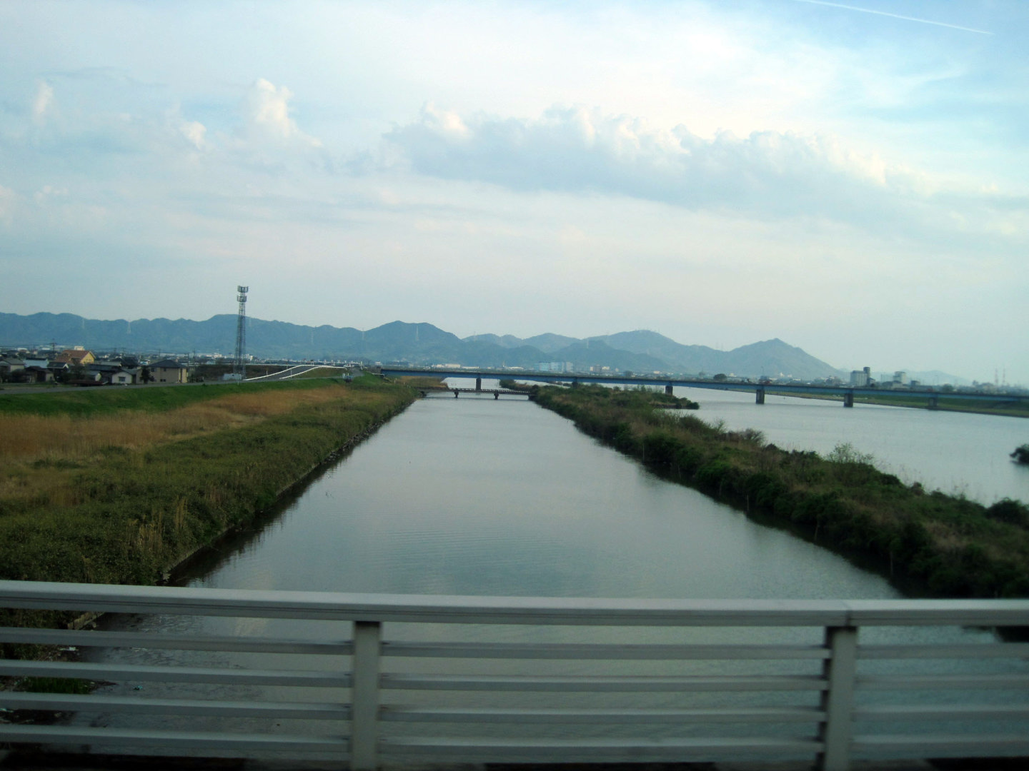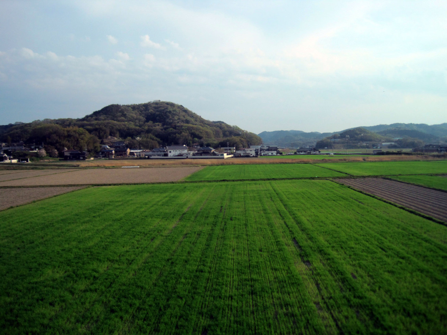 瀬戸内市邑久町の田畑と千町川・・・所によって桃の栽培をされています。
