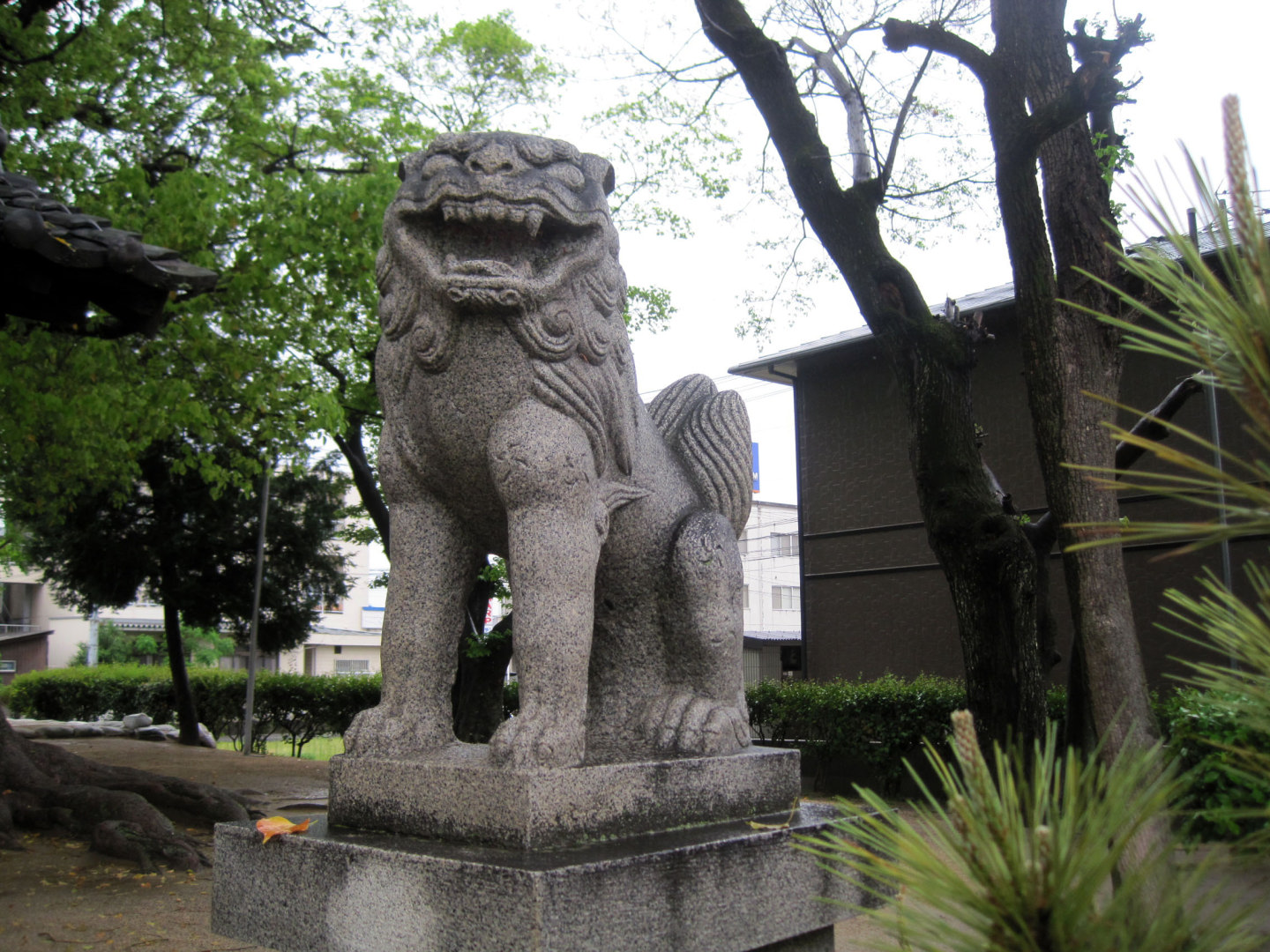 勇壮な狛犬〜阿吽! そして,銀杏の大木もあります。
