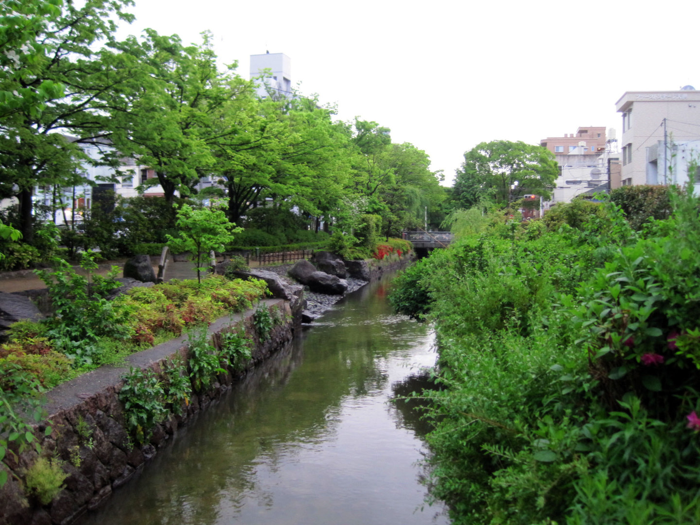 さて,岡大から川崎病院(内山下)への途中の枝川の緑道公園!