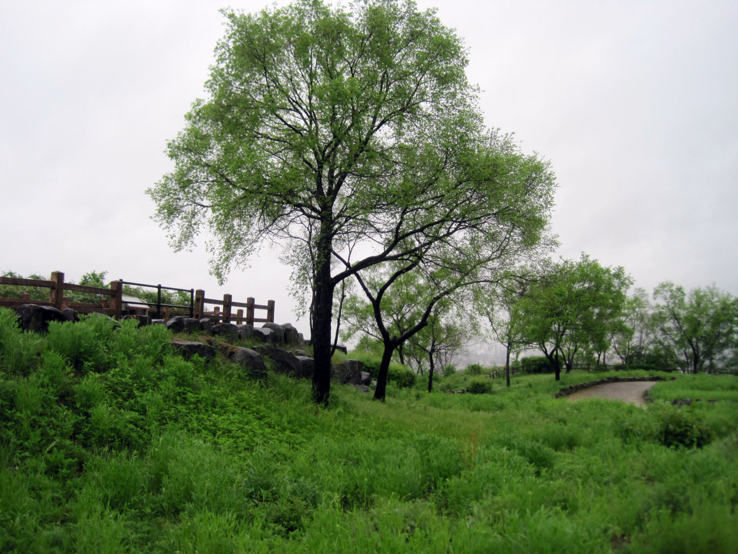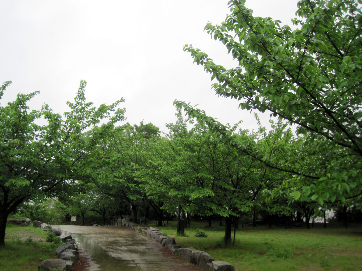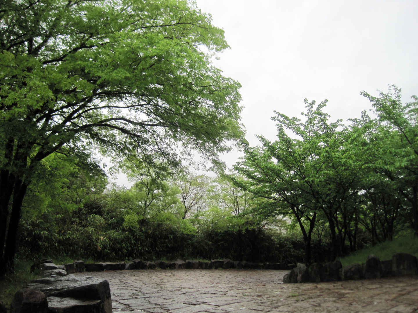 少し早めに着いたので・・・「亀島山花と緑の丘公園」です。雨の中ですが・・・・。