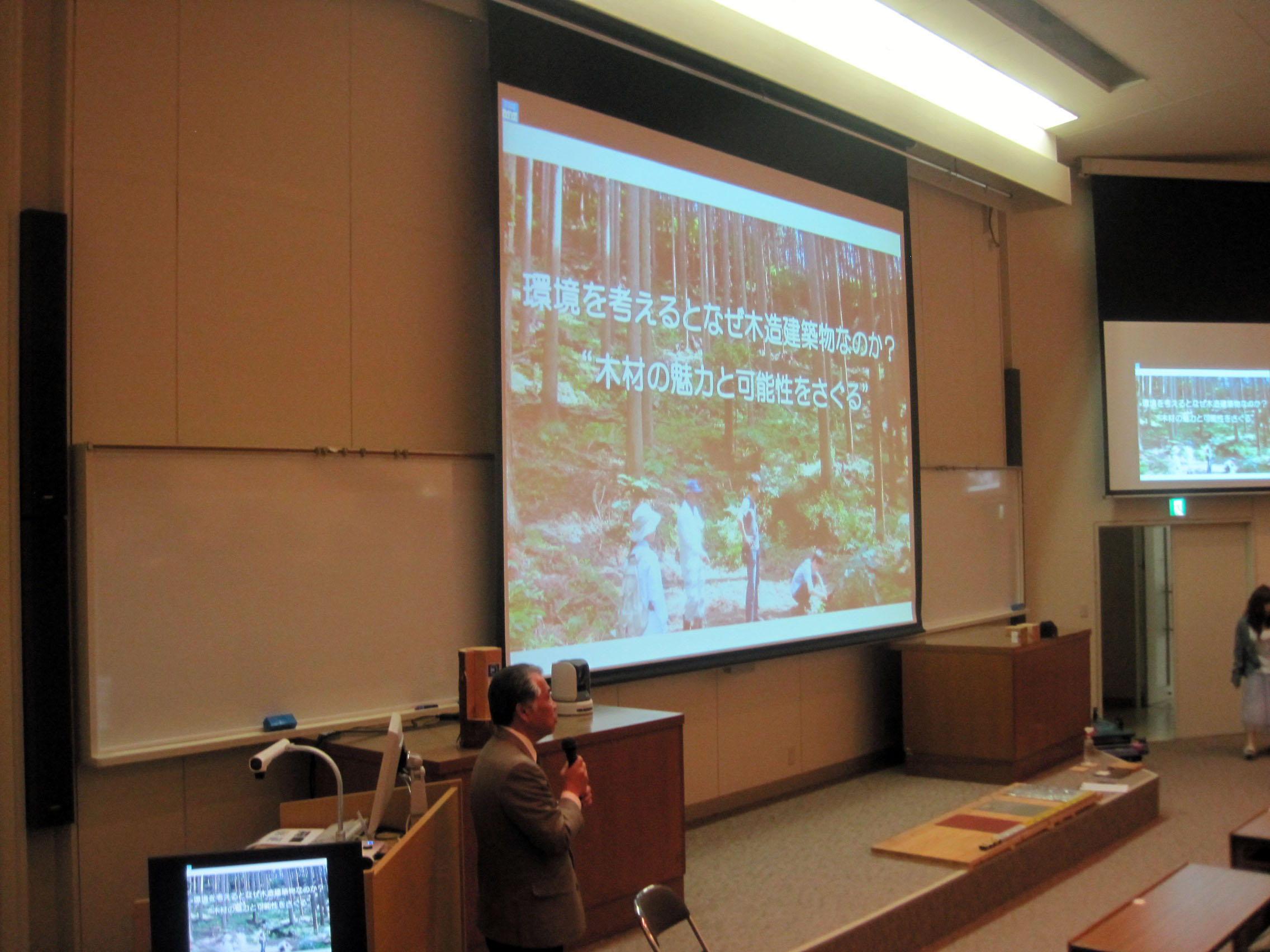 大規模木造建築を手がけられてらっしゃるのですが,森林医学との関係,そして,僕がやっている住宅メーカーさんとの共同研究の関係もあって・・よい講義です。