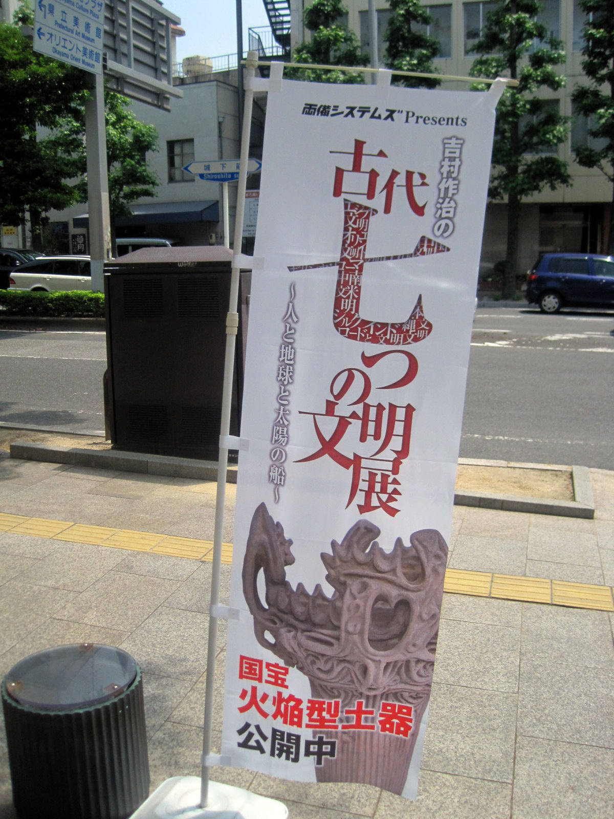 外の看板にもあった・・・国宝の縄文式火炎土器は,感動!!!また,エジプトのロゼッタストーンのレプリカや,ハンムラビ法典のレプリカも,レプリカとはいえ・・・かなり感動でした。