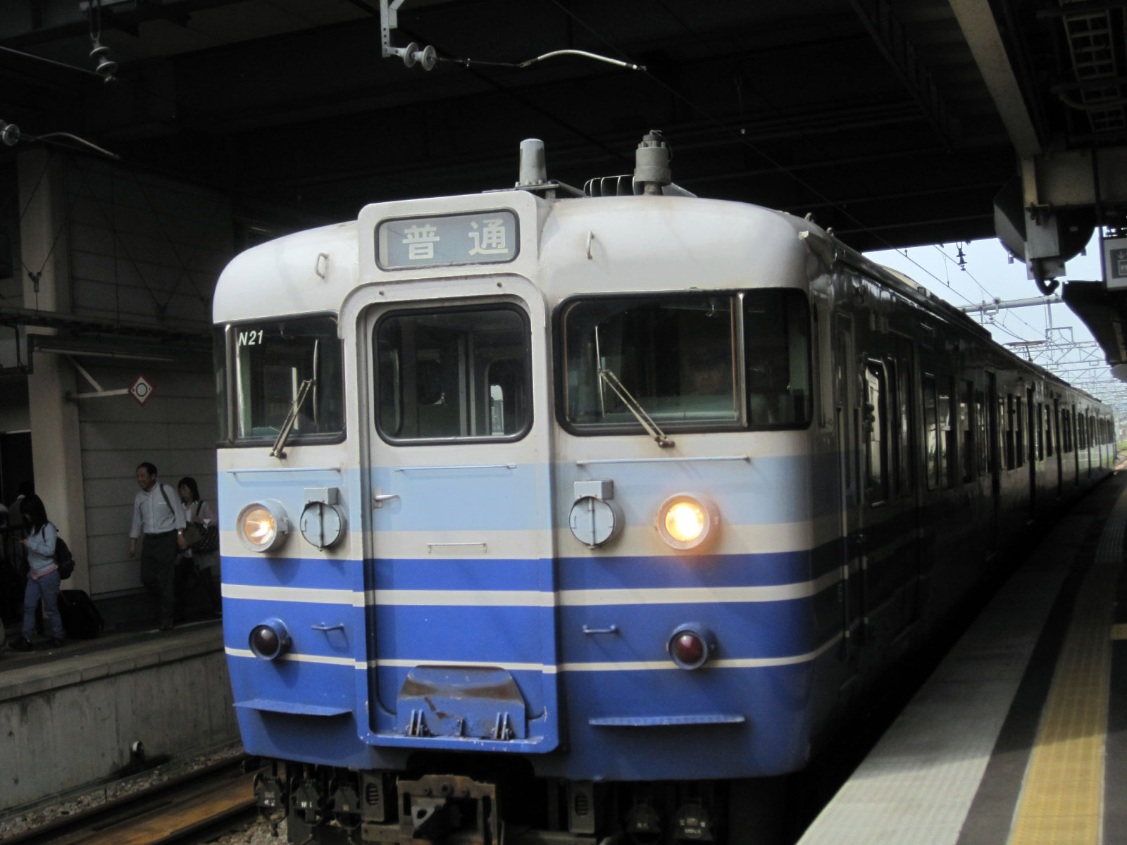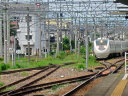 特急「はくたか」が通過していきました!高校生はでも,どこでも変わらないように見えます。そして,緑の列車と青の列車は,ほぼ同じ時刻で上下線,発車です。