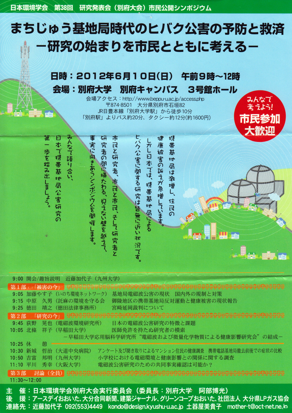 別府大学で日本環境学会! その市民公開シンポジウムで,電磁波過敏症について!