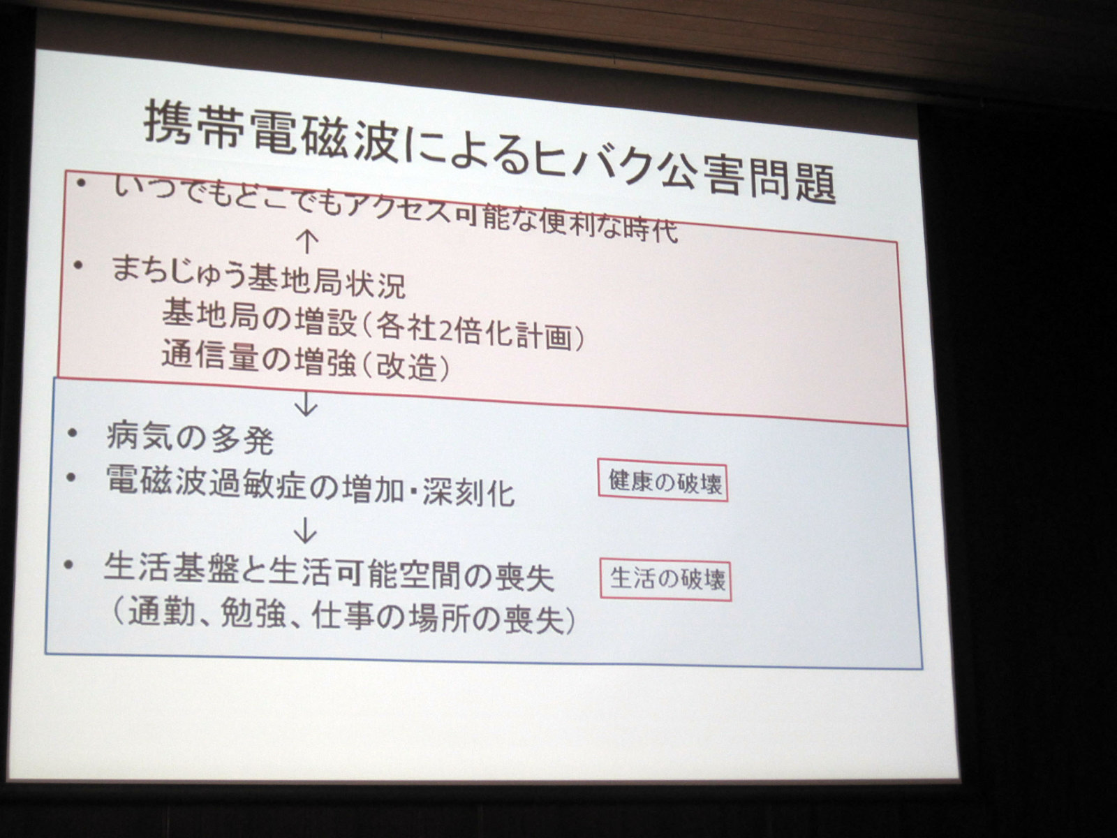 側面として,弁護士の方もおっしゃっていましたが,水俣などと同様に,こと裁判という面では,通信大手に迎合(?)せざるを得ない部分,これは原子力ムラと同じなのでしょうか?? 医科学・社会科学,種々の面で多くの問題を抱えているテーマになってしまっています。