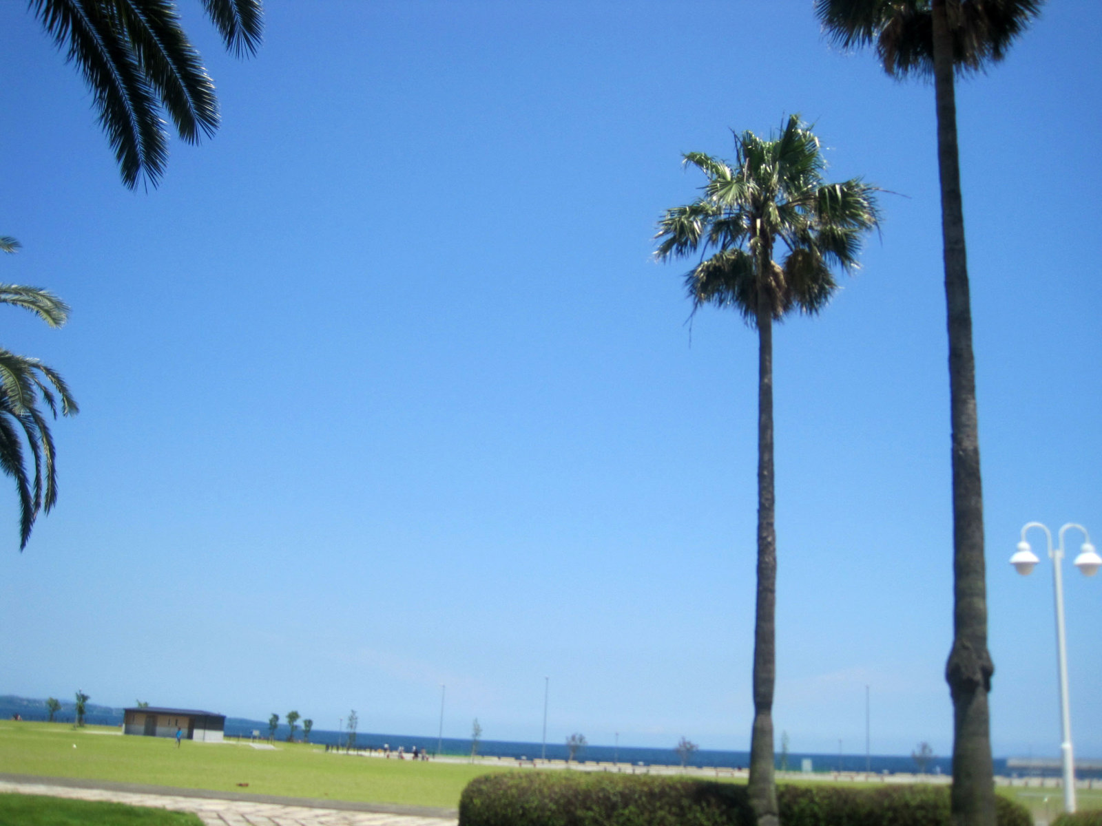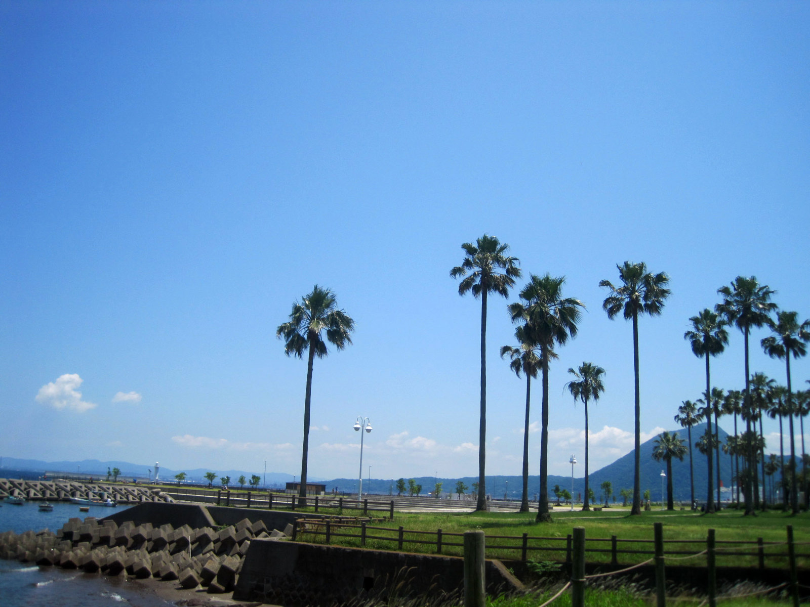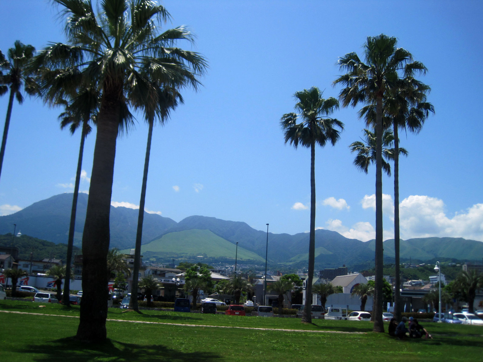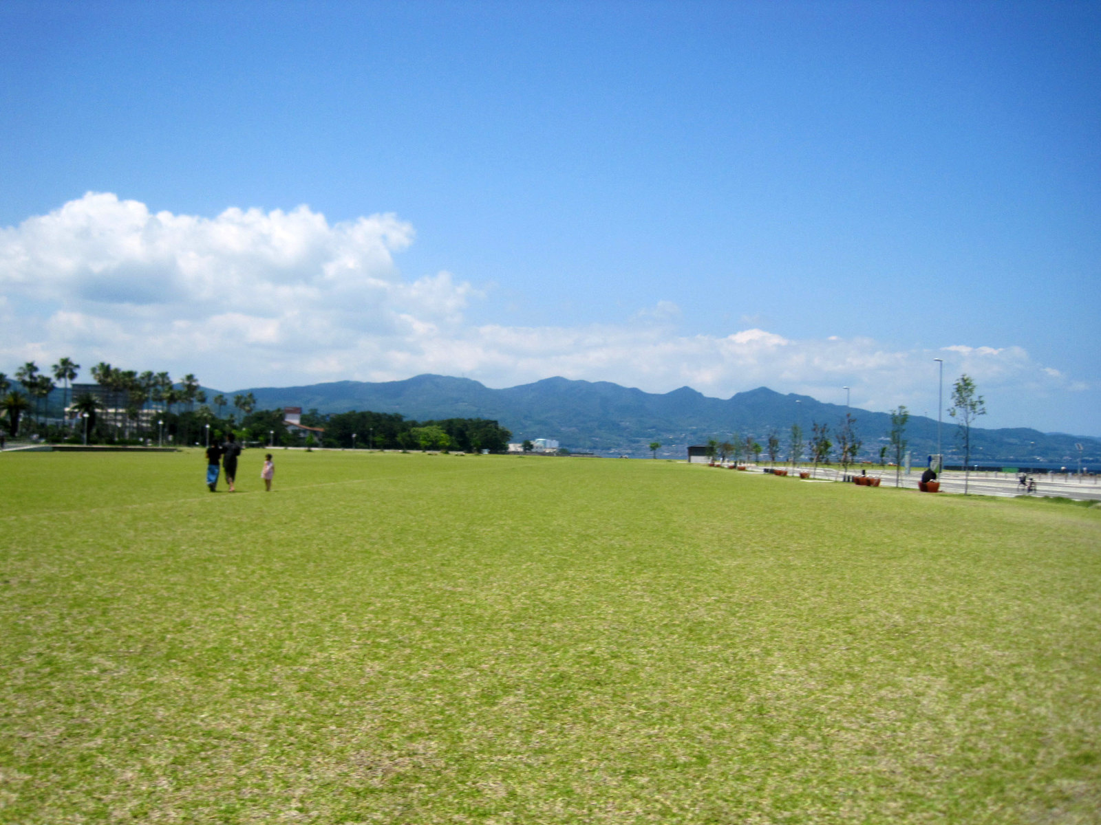 別府湾岸に作られた市民公園という感じですが・・・でも,空といい緑の芝生や南国めいた椰子などといい・・・絶品!