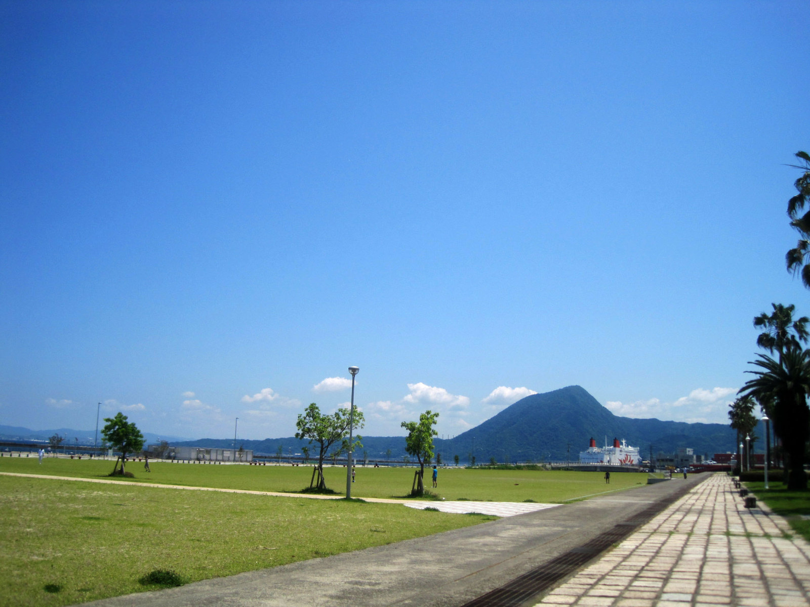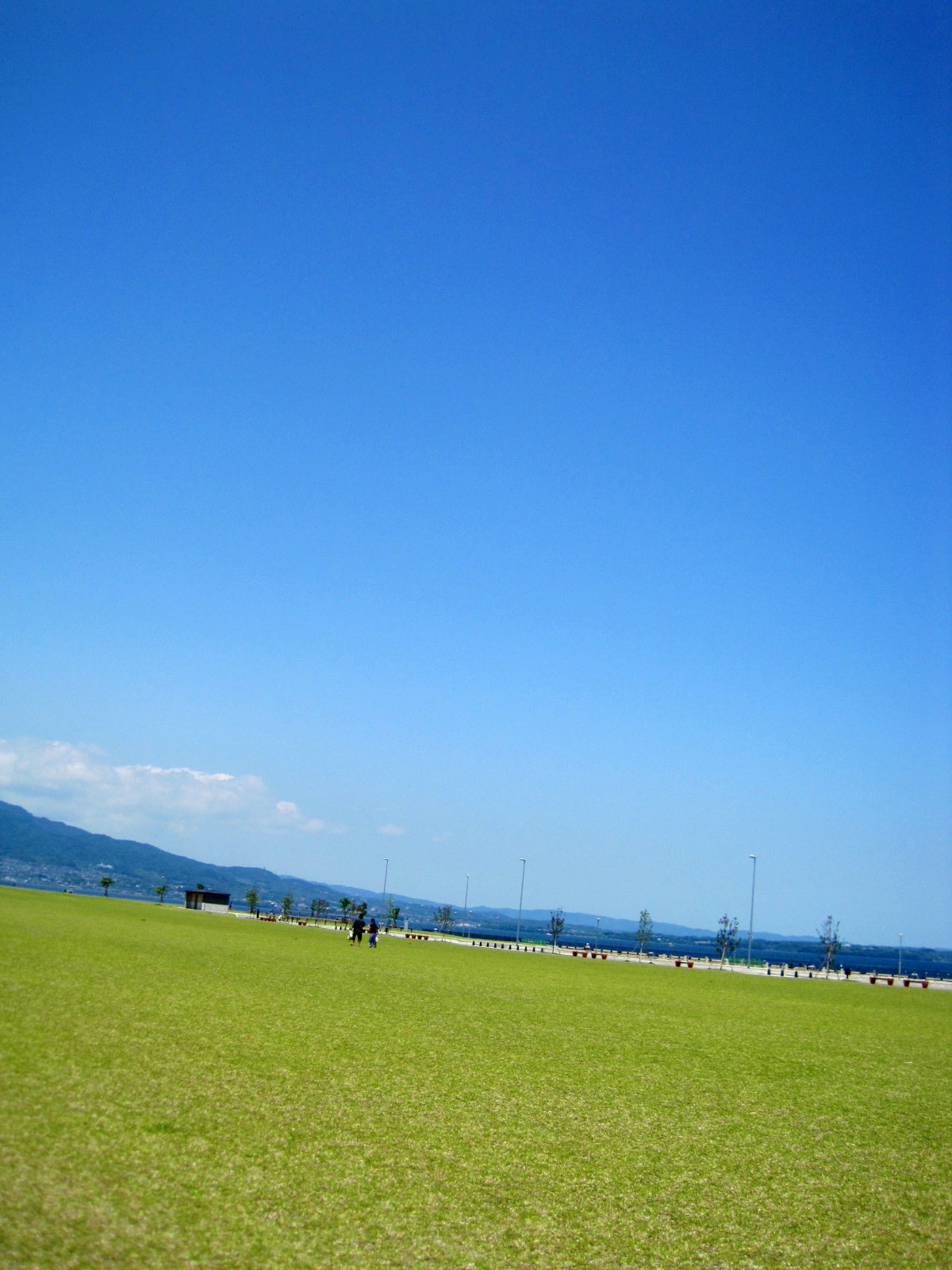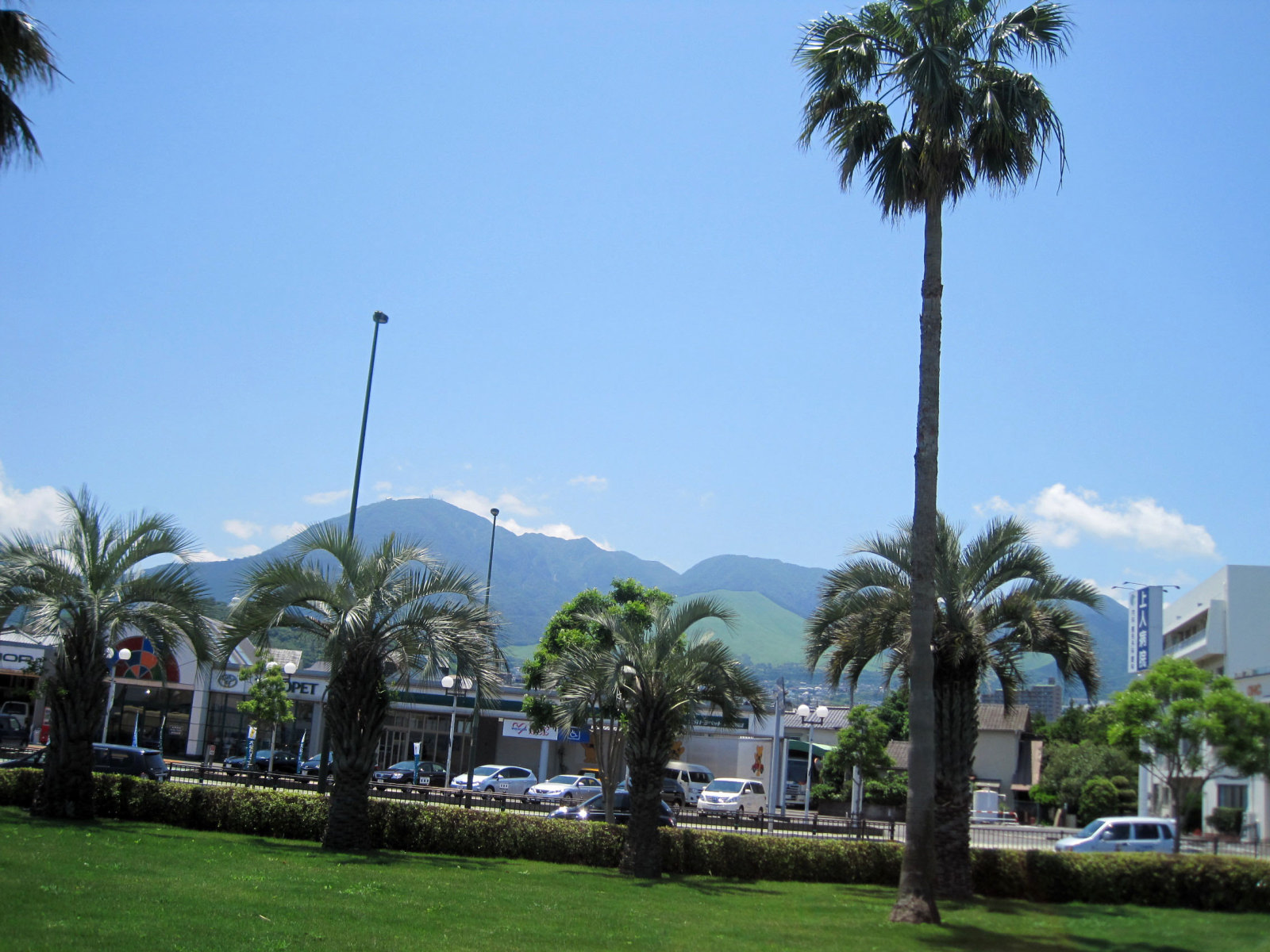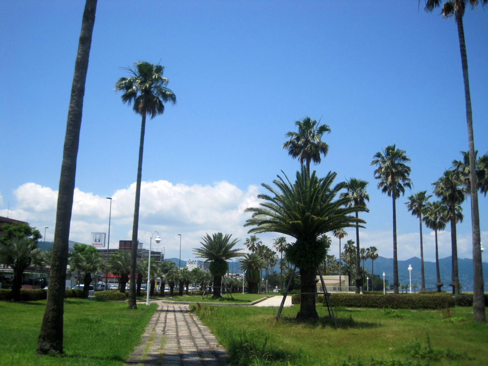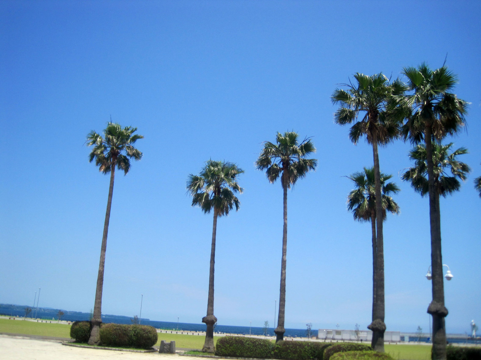 別府湾岸に作られた市民公園という感じですが・・・でも,空といい緑の芝生や南国めいた椰子などといい・・・絶品!