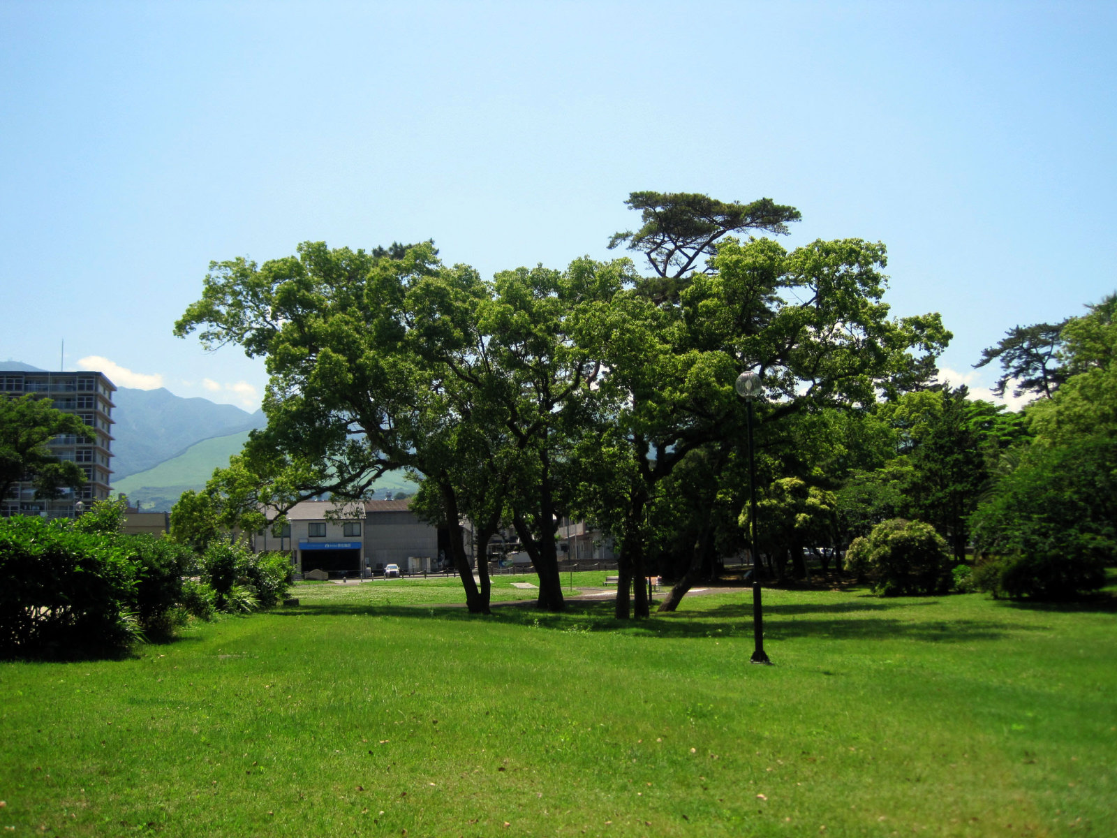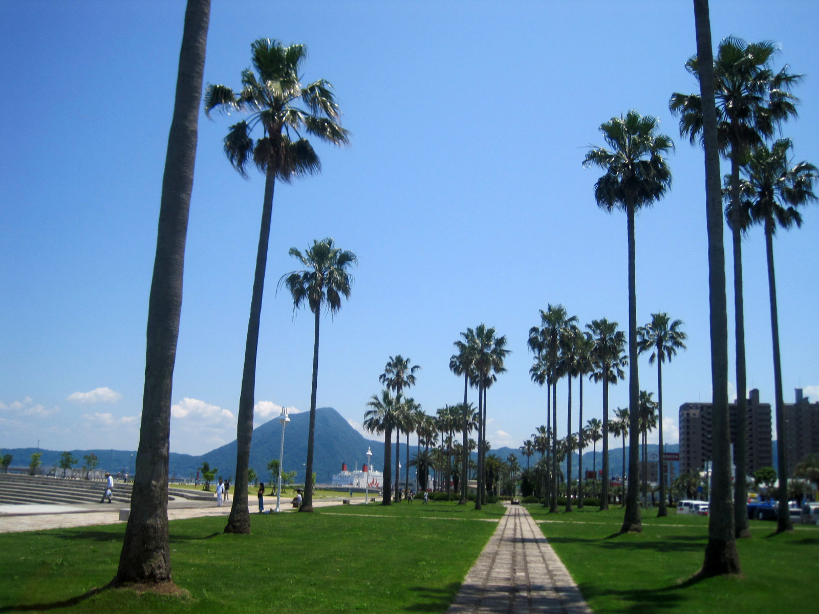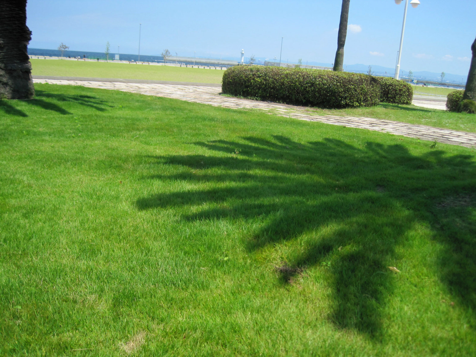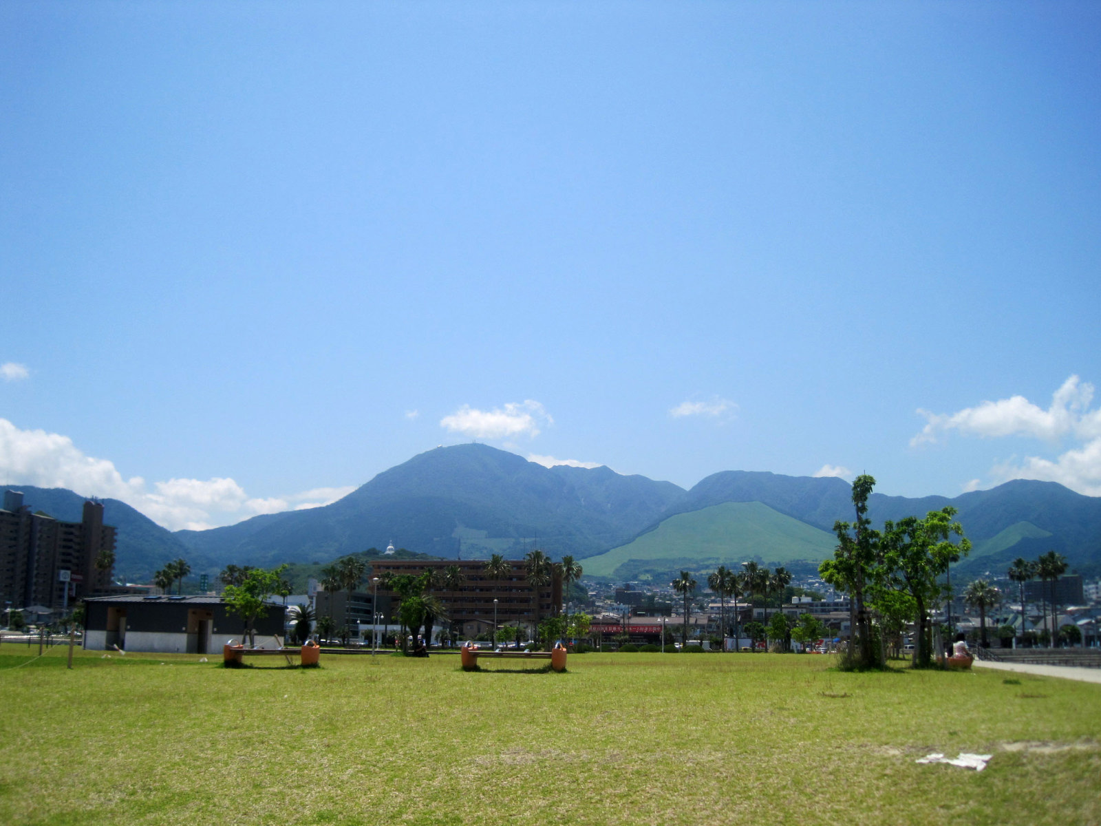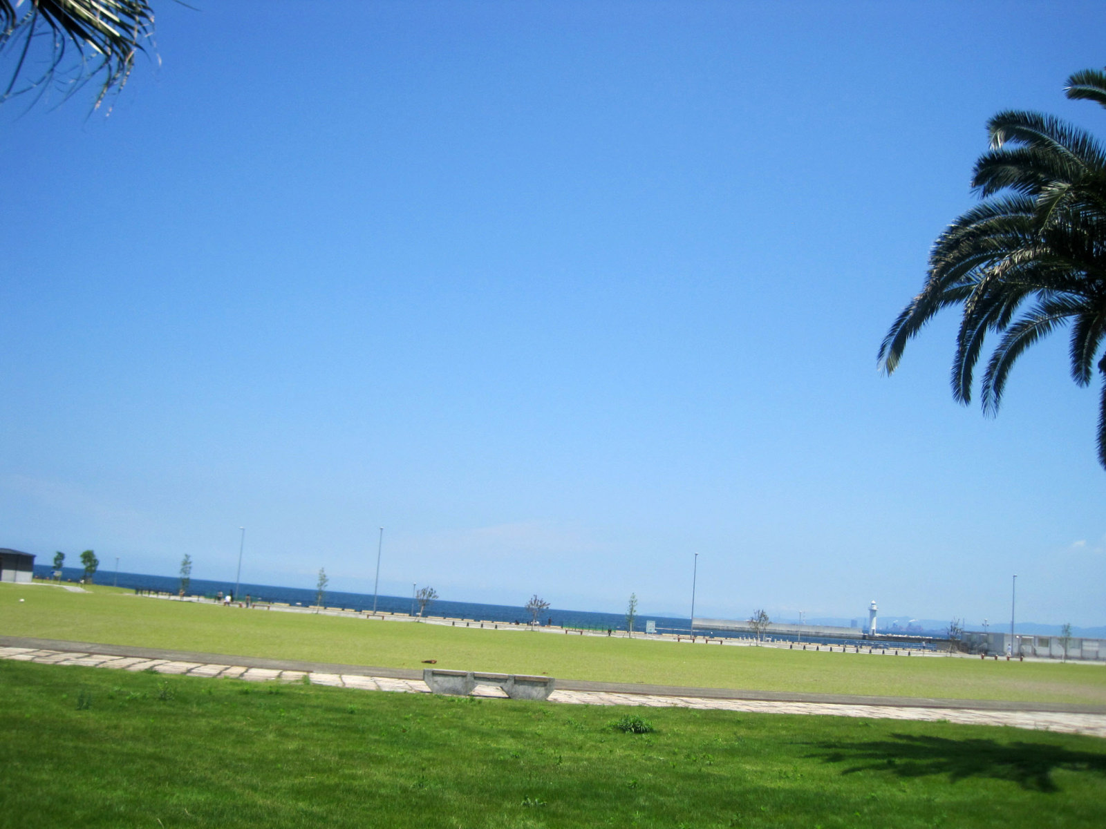 別府湾岸に作られた市民公園という感じですが・・・でも,空といい緑の芝生や南国めいた椰子などといい・・・絶品!