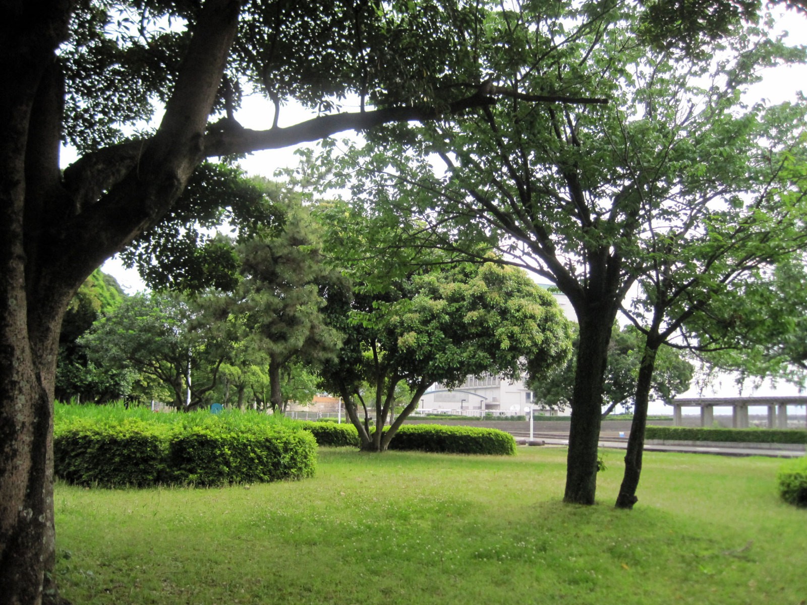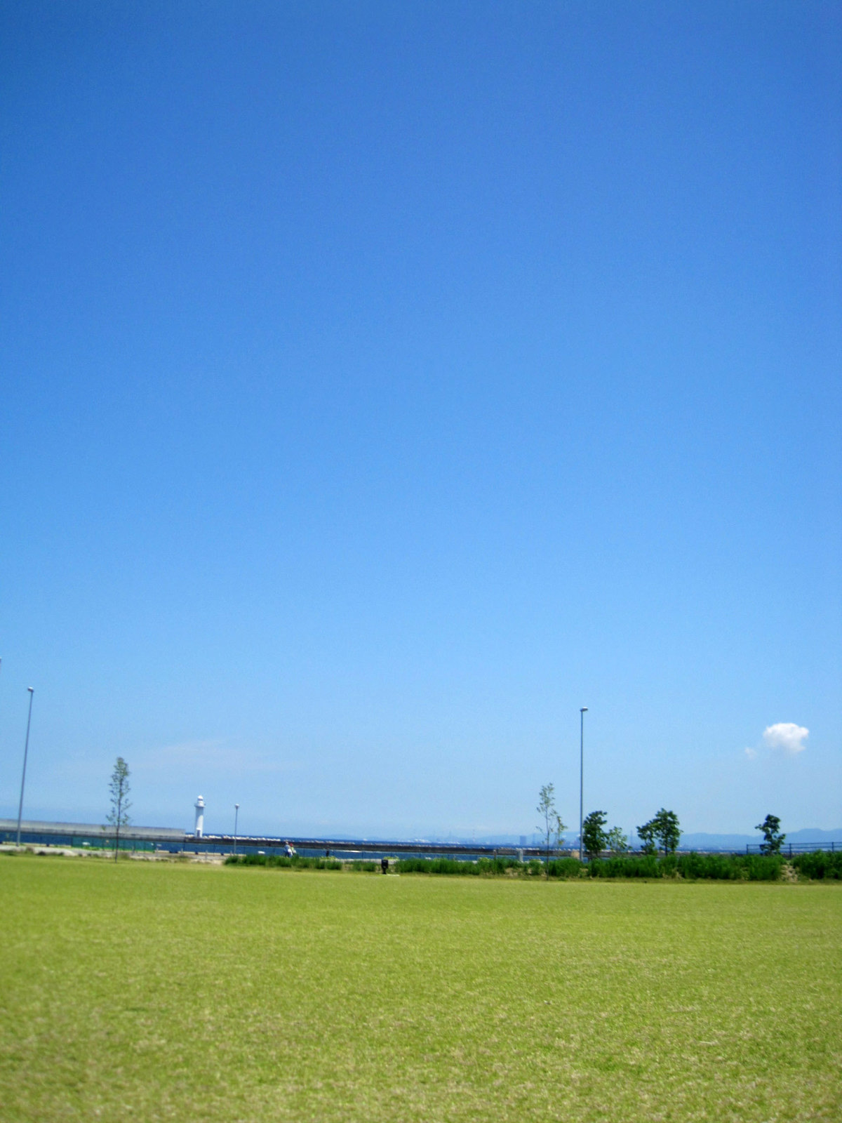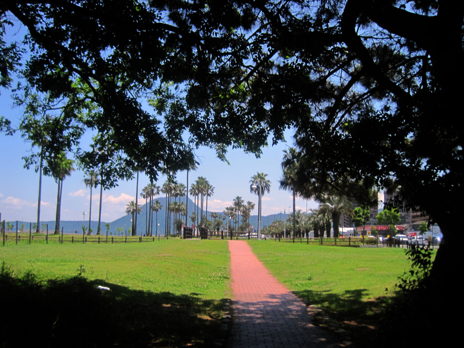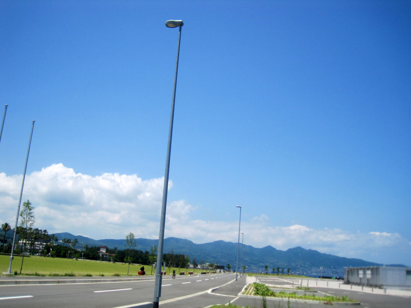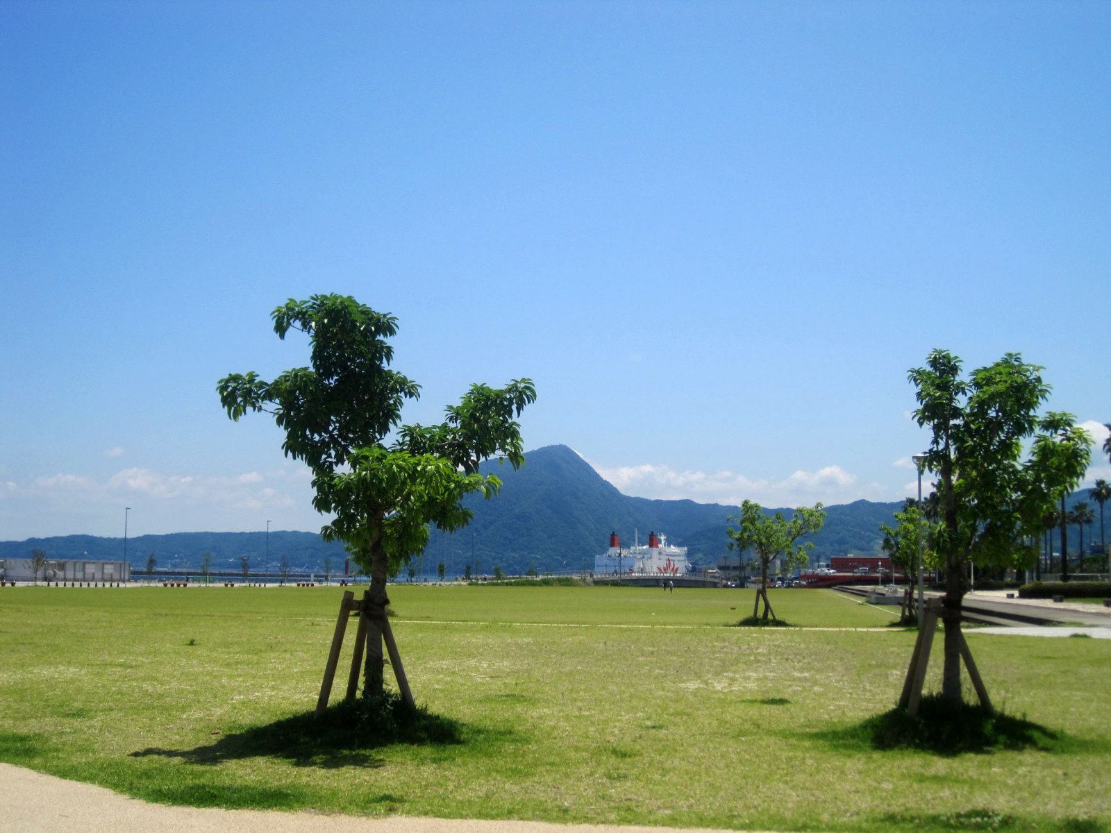 別府湾岸に作られた市民公園という感じですが・・・でも,空といい緑の芝生や南国めいた椰子などといい・・・絶品!