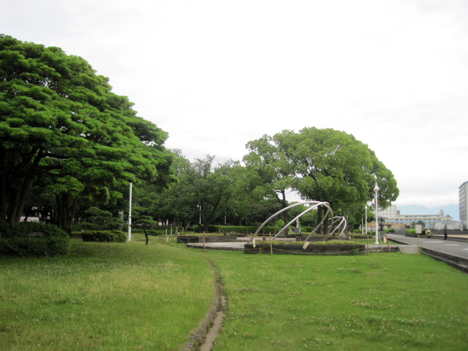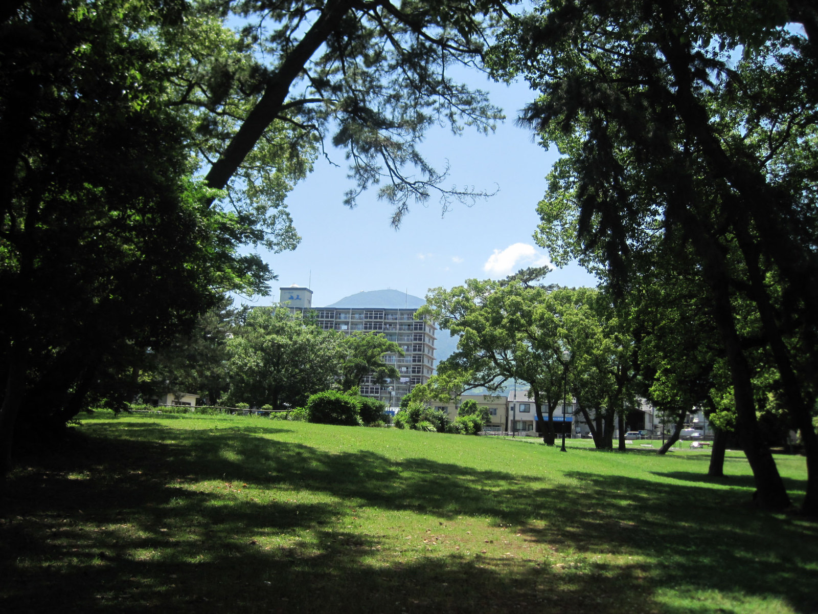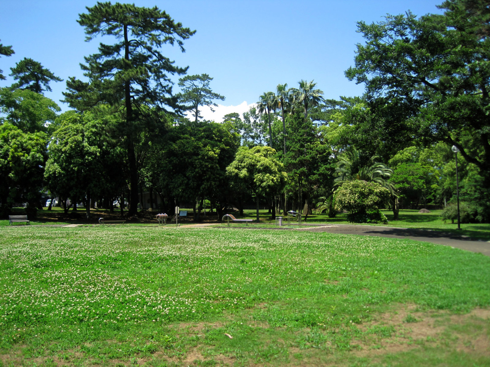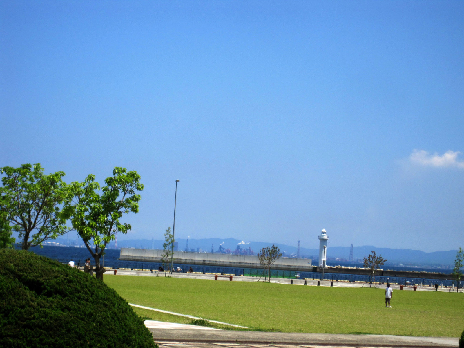 別府湾岸に作られた市民公園という感じですが・・・でも,空といい緑の芝生や南国めいた椰子などといい・・・絶品!