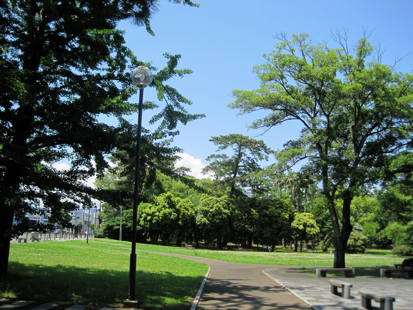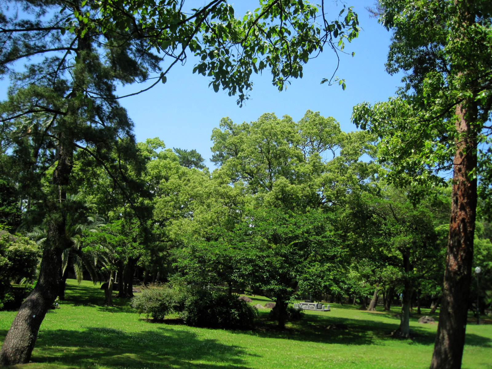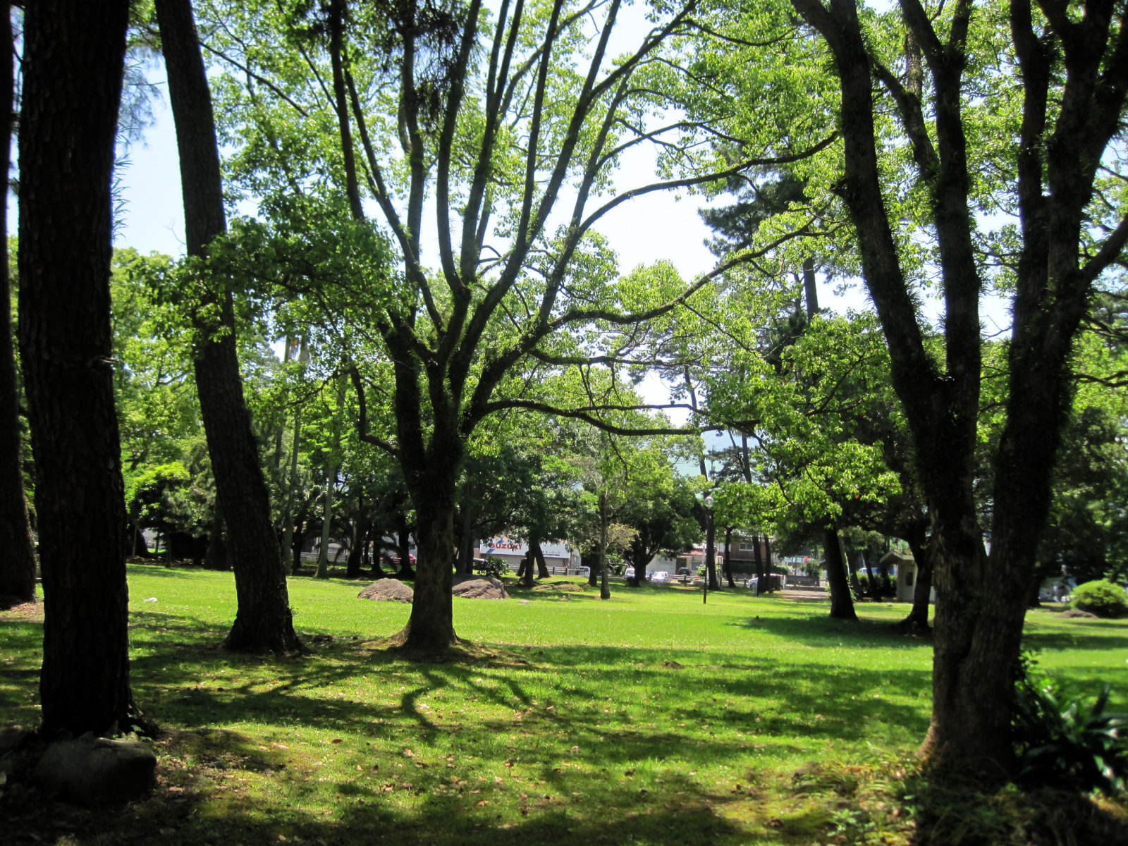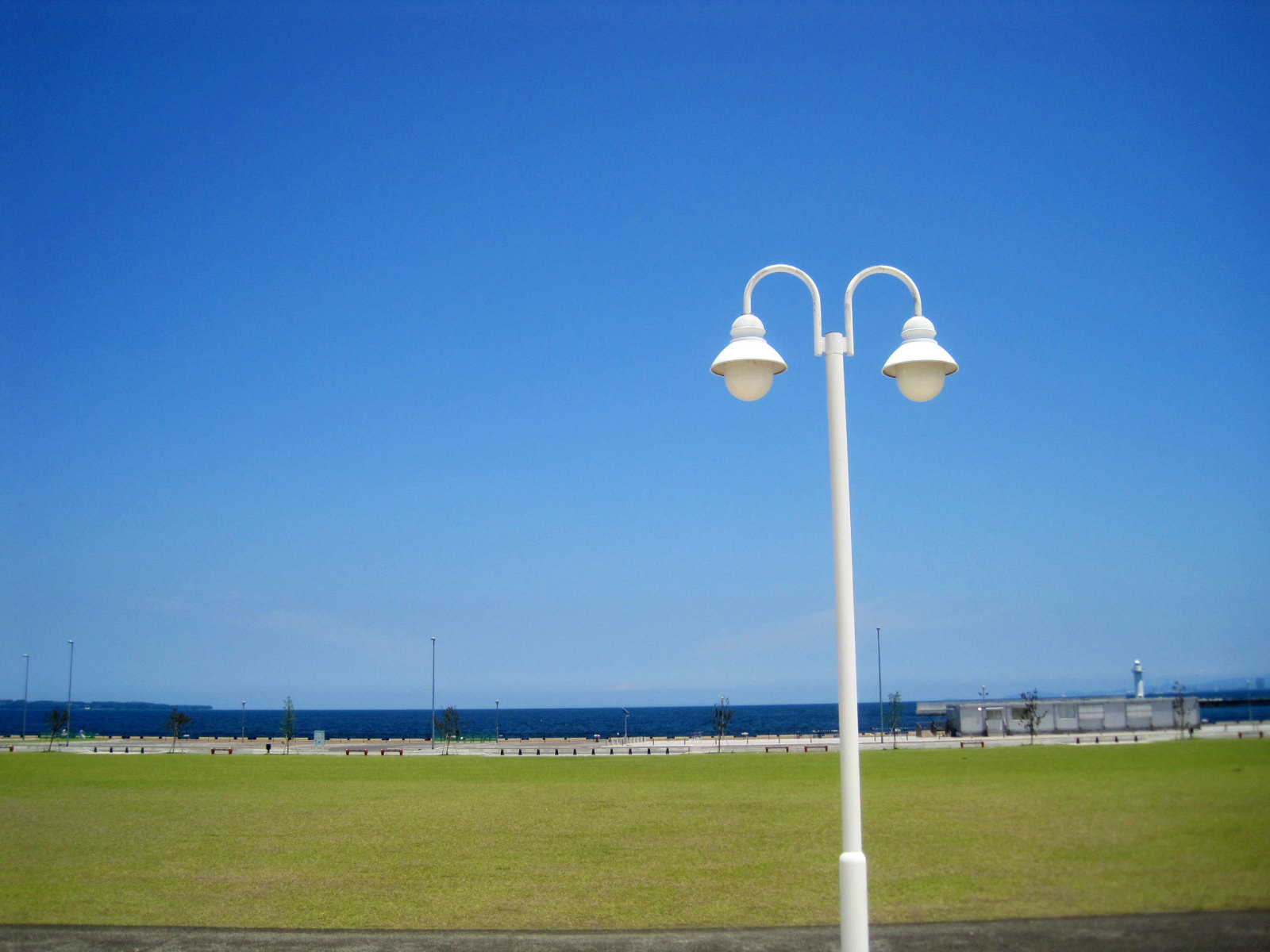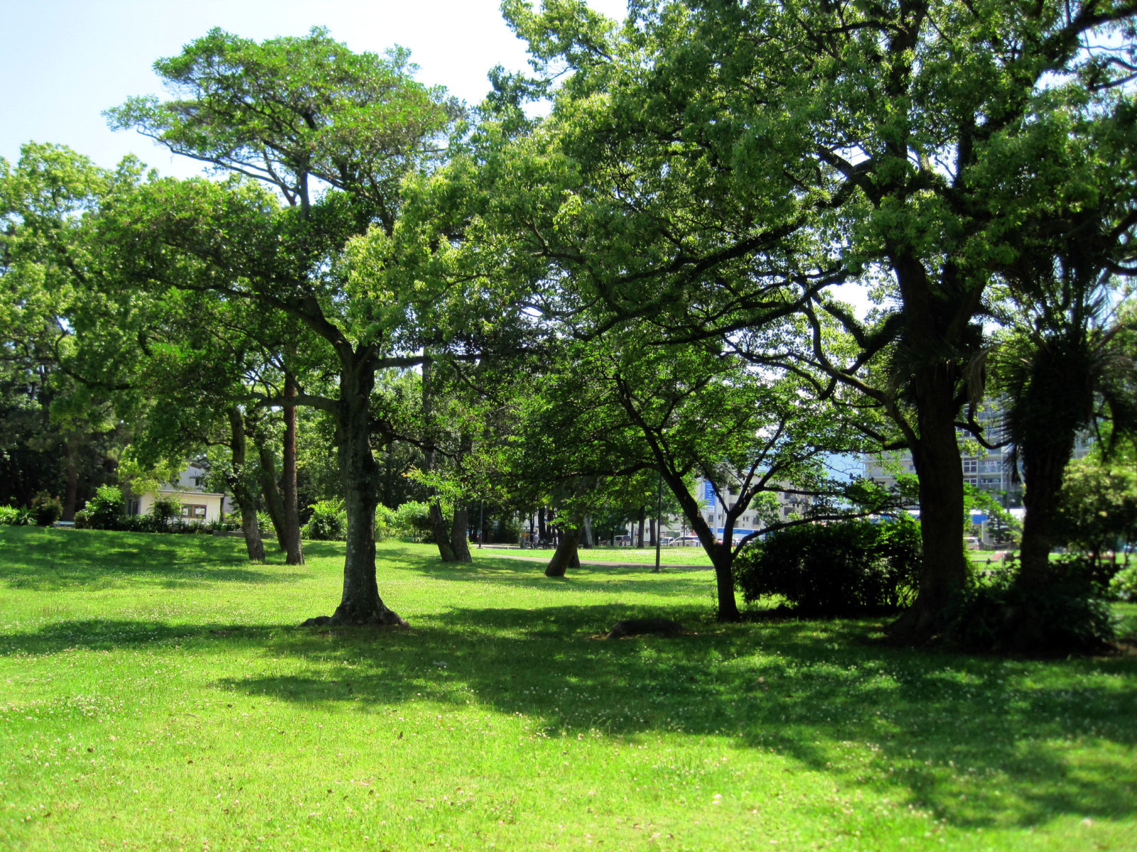 別府湾岸に作られた市民公園という感じですが・・・でも,空といい緑の芝生や南国めいた椰子などといい・・・絶品!