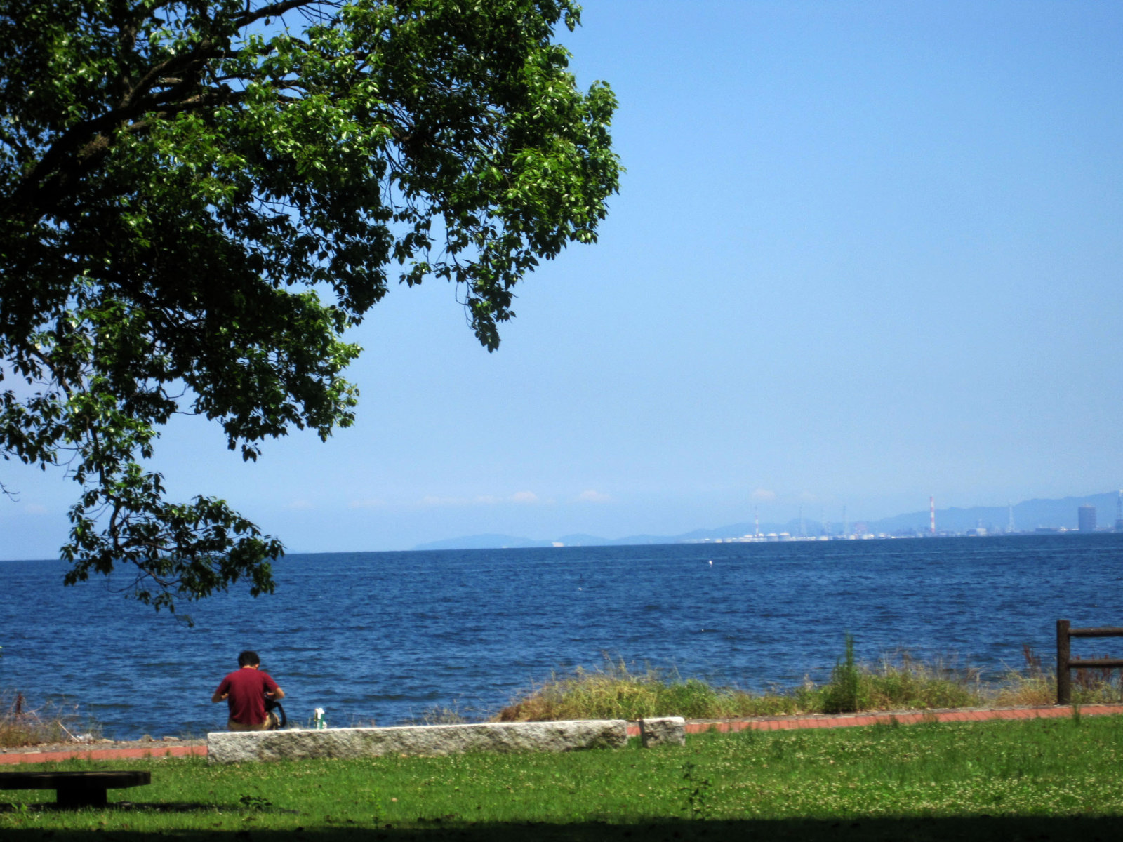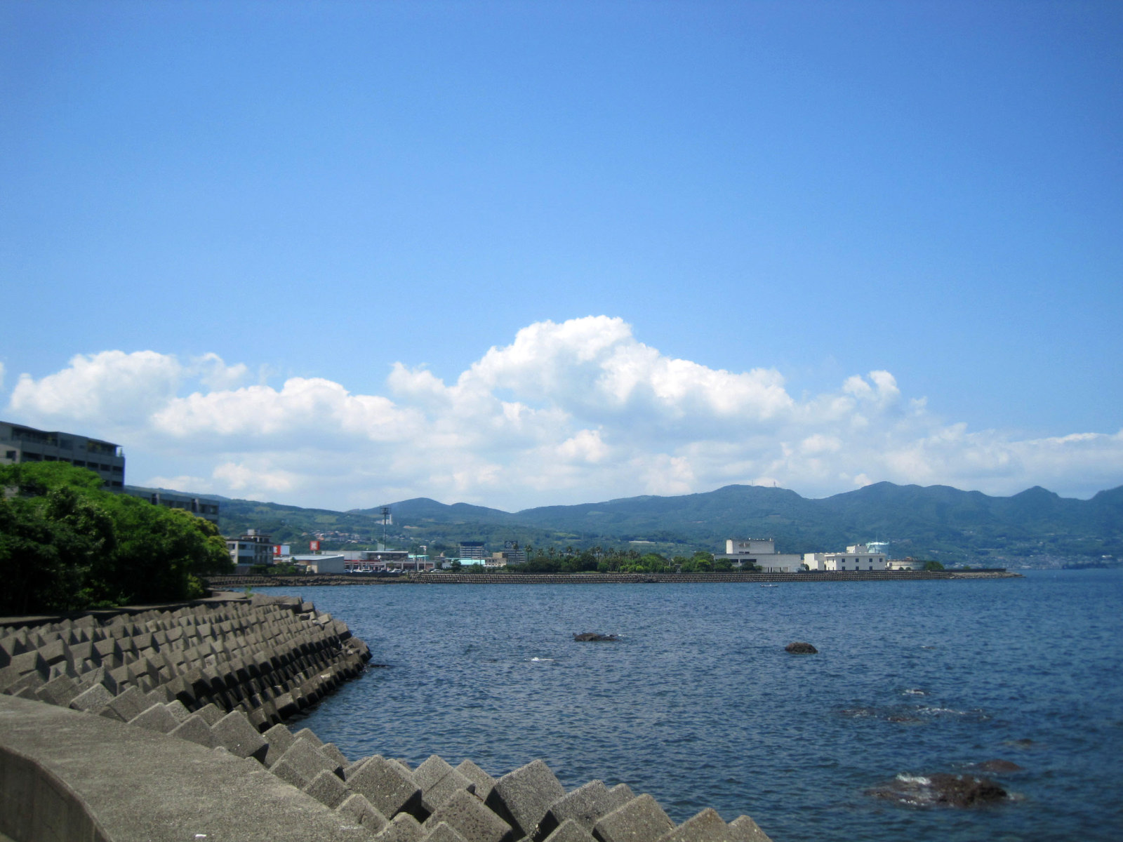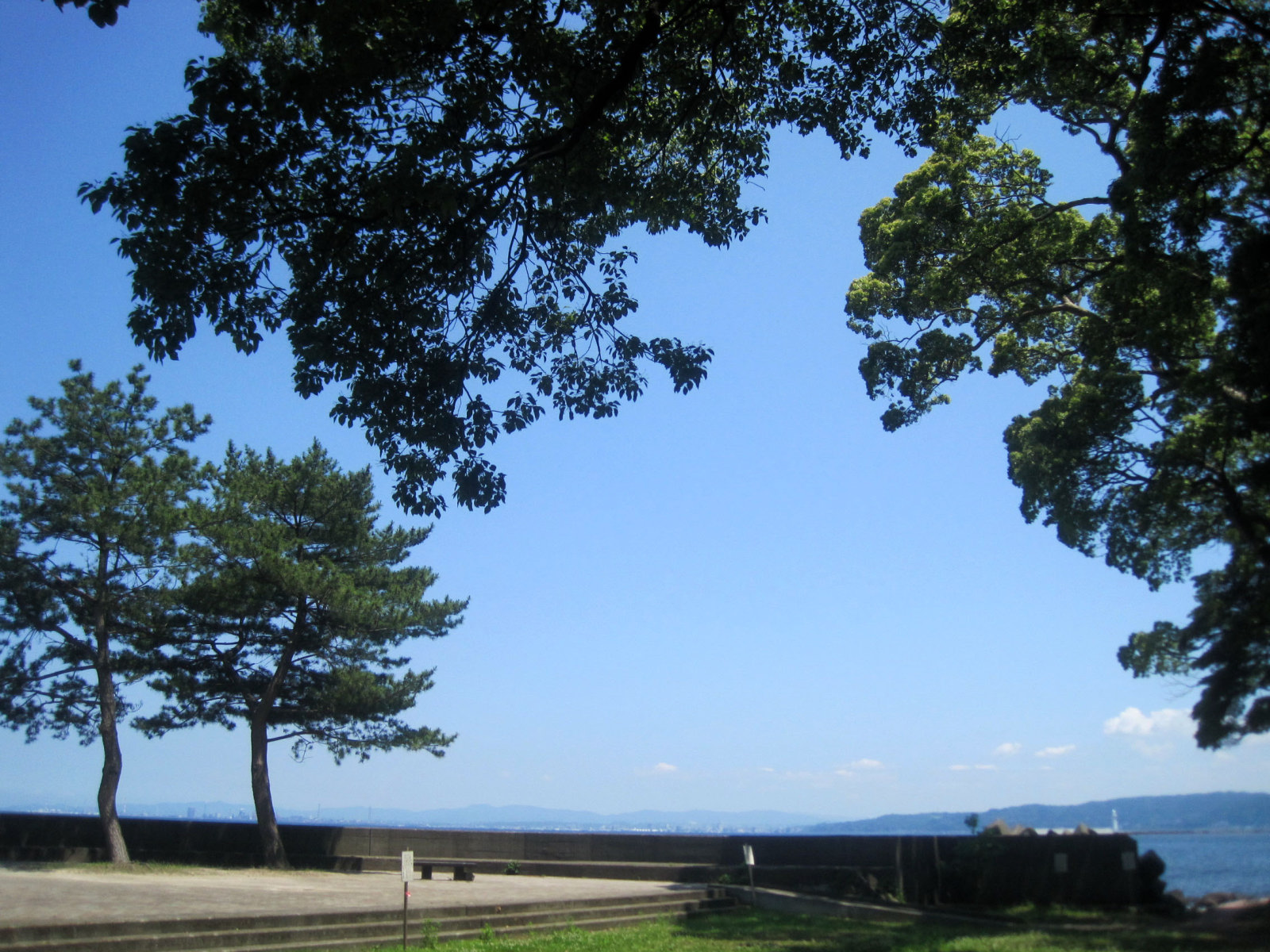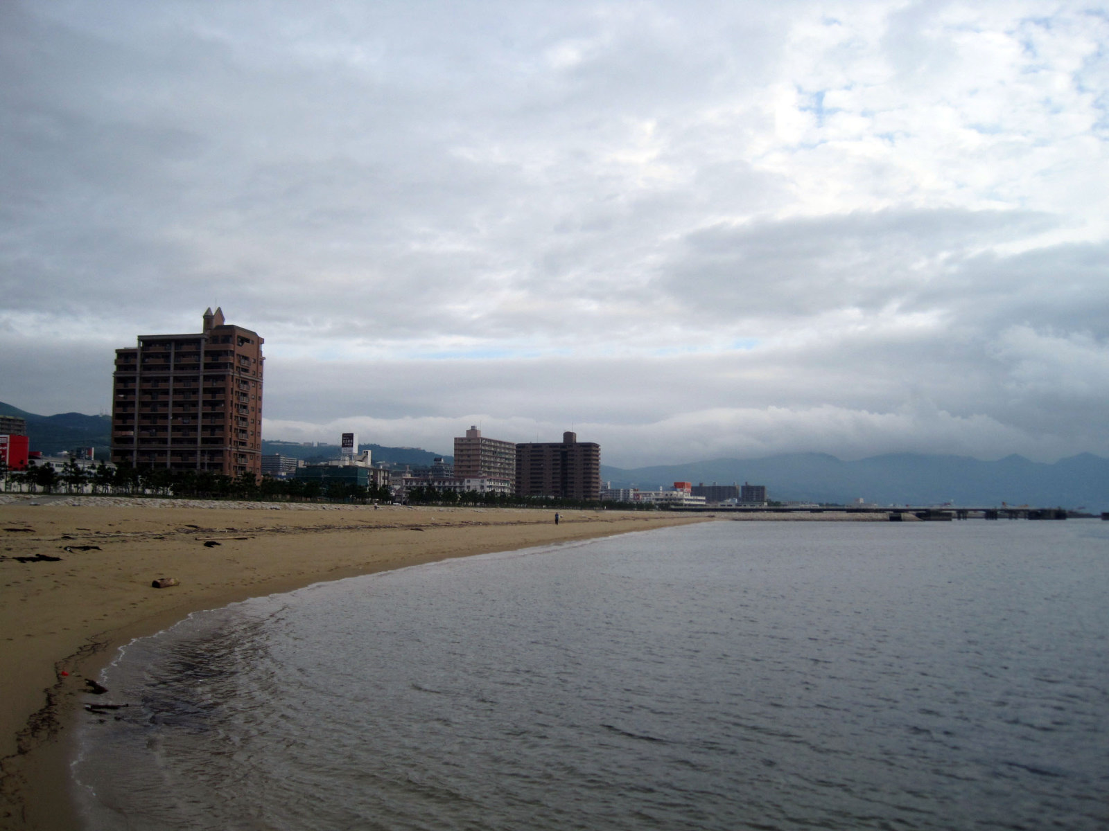 【上人ヶ浜公園は別府市の北部にある海岸の公園です。園内には芝生広場や小さな展望台もあり、背の高いパームツリーから南国の雰囲気が漂います。国道10号沿いの好立地にあり、また、別府海浜砂湯や別府市美術館が隣接しています。】だそうです。うん? 展望台ってあったっけ?