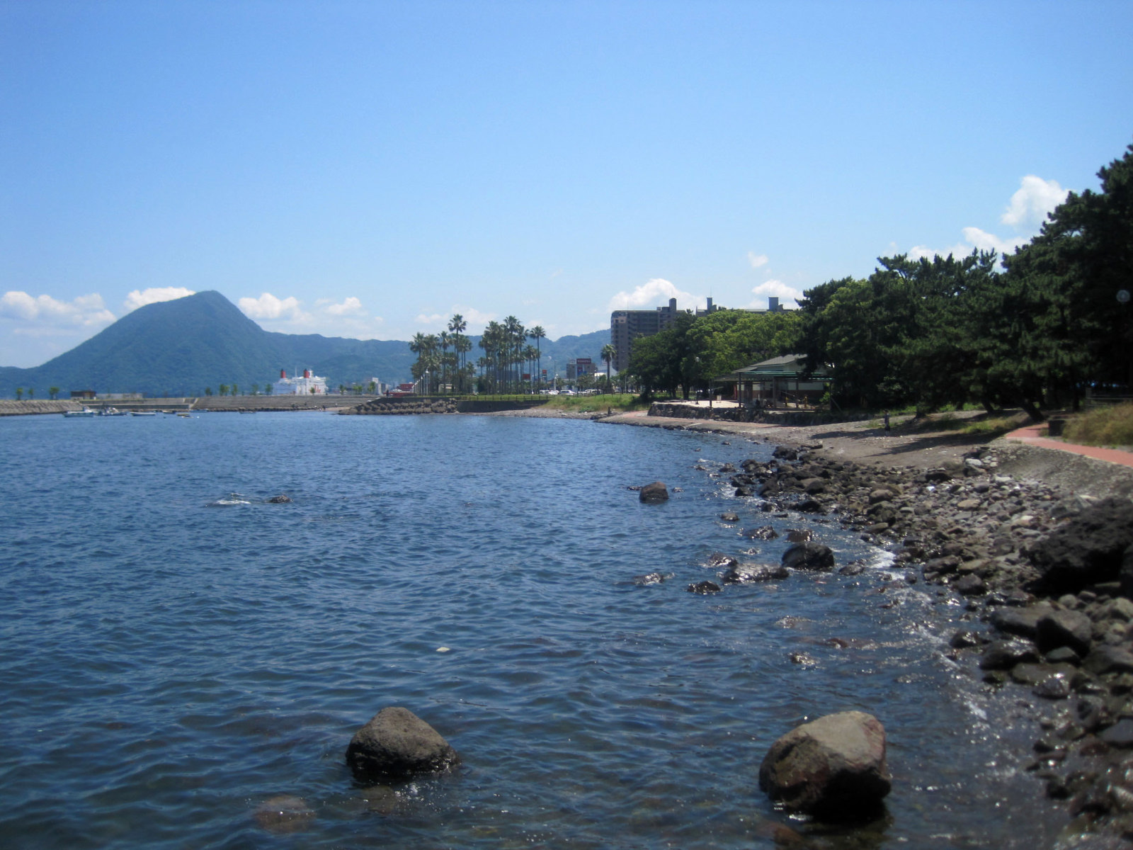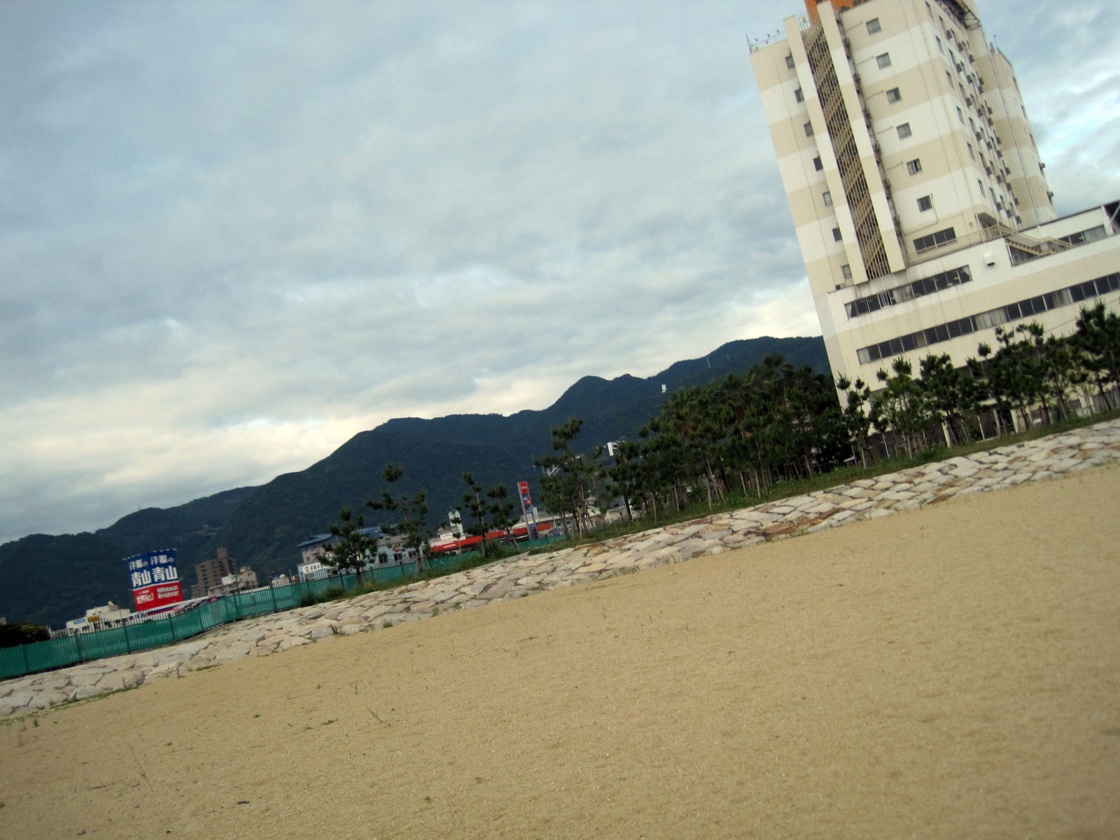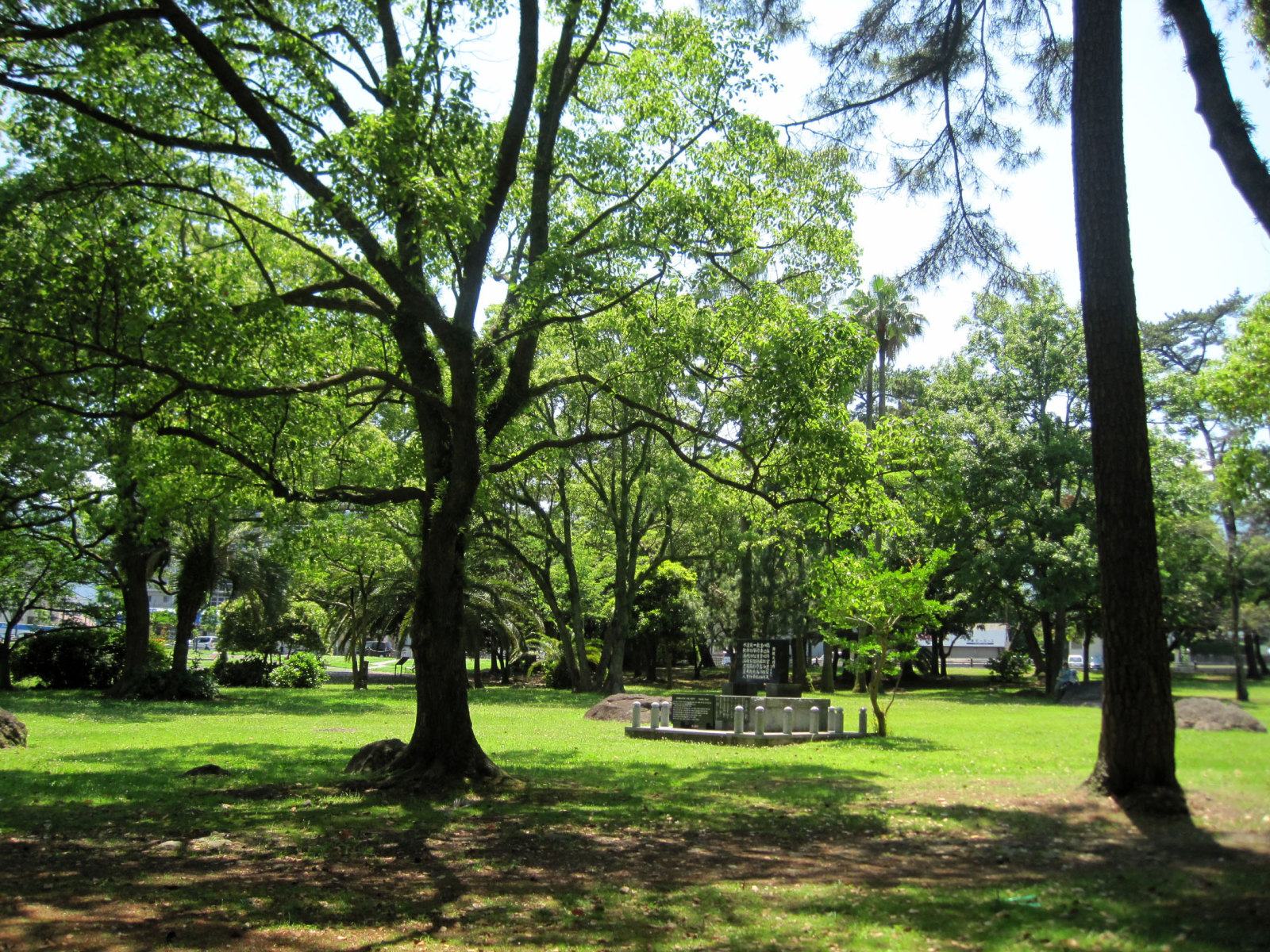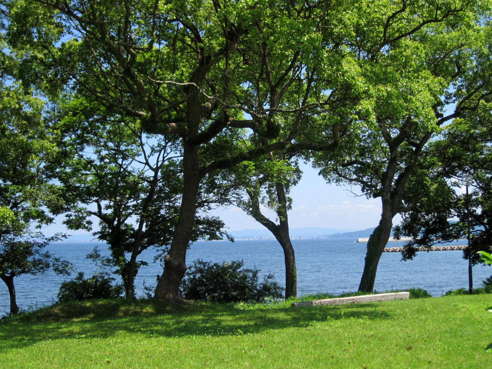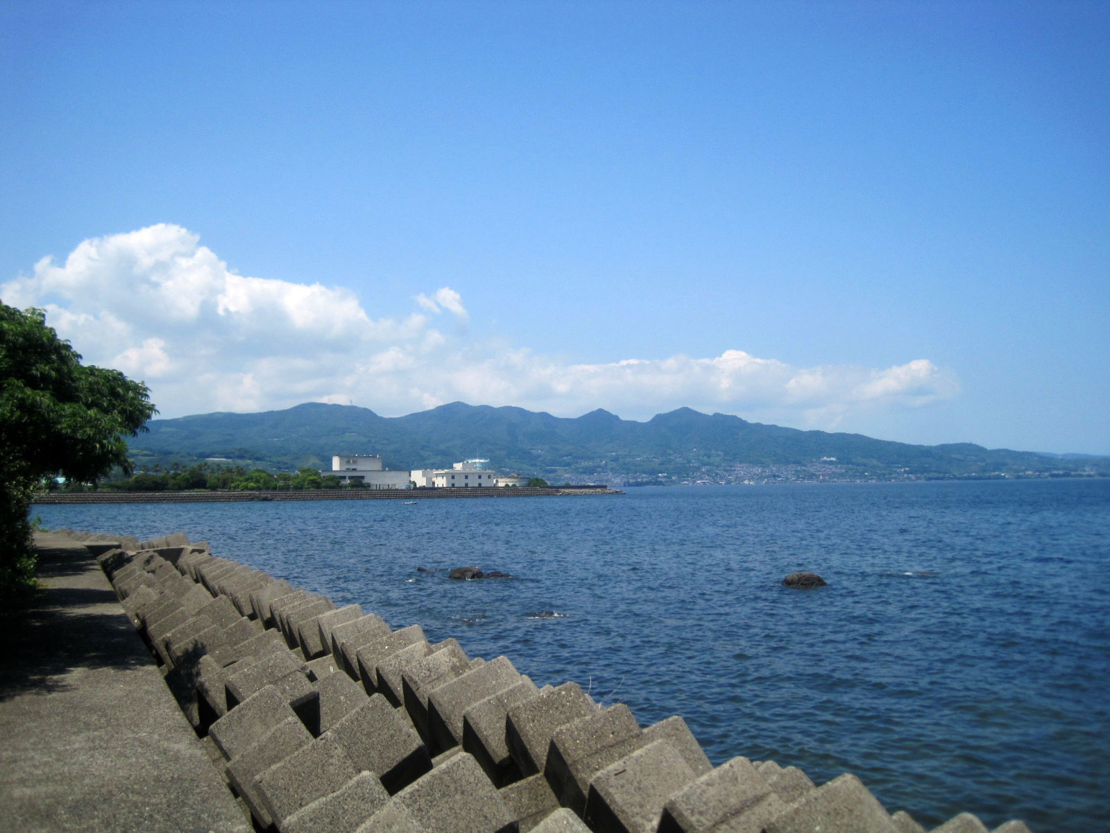【上人ヶ浜公園は別府市の北部にある海岸の公園です。園内には芝生広場や小さな展望台もあり、背の高いパームツリーから南国の雰囲気が漂います。国道10号沿いの好立地にあり、また、別府海浜砂湯や別府市美術館が隣接しています。】だそうです。うん? 展望台ってあったっけ?