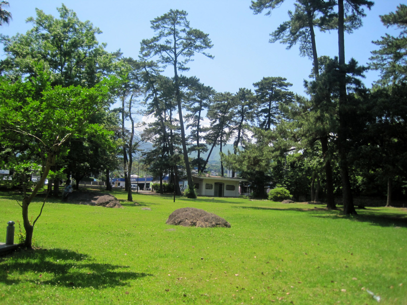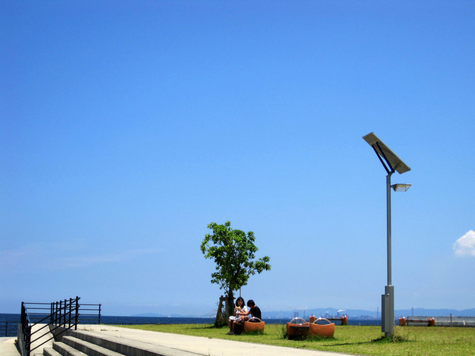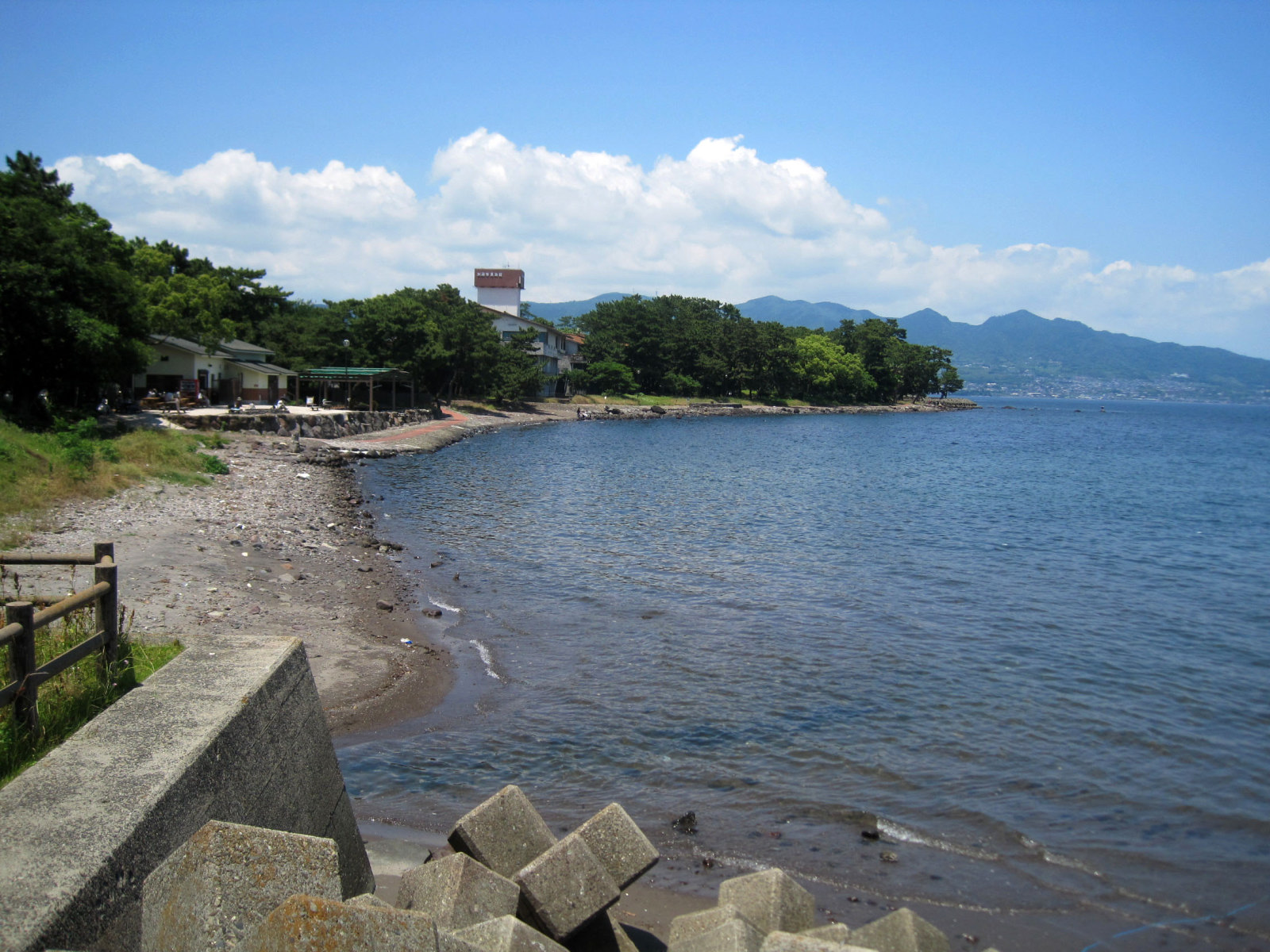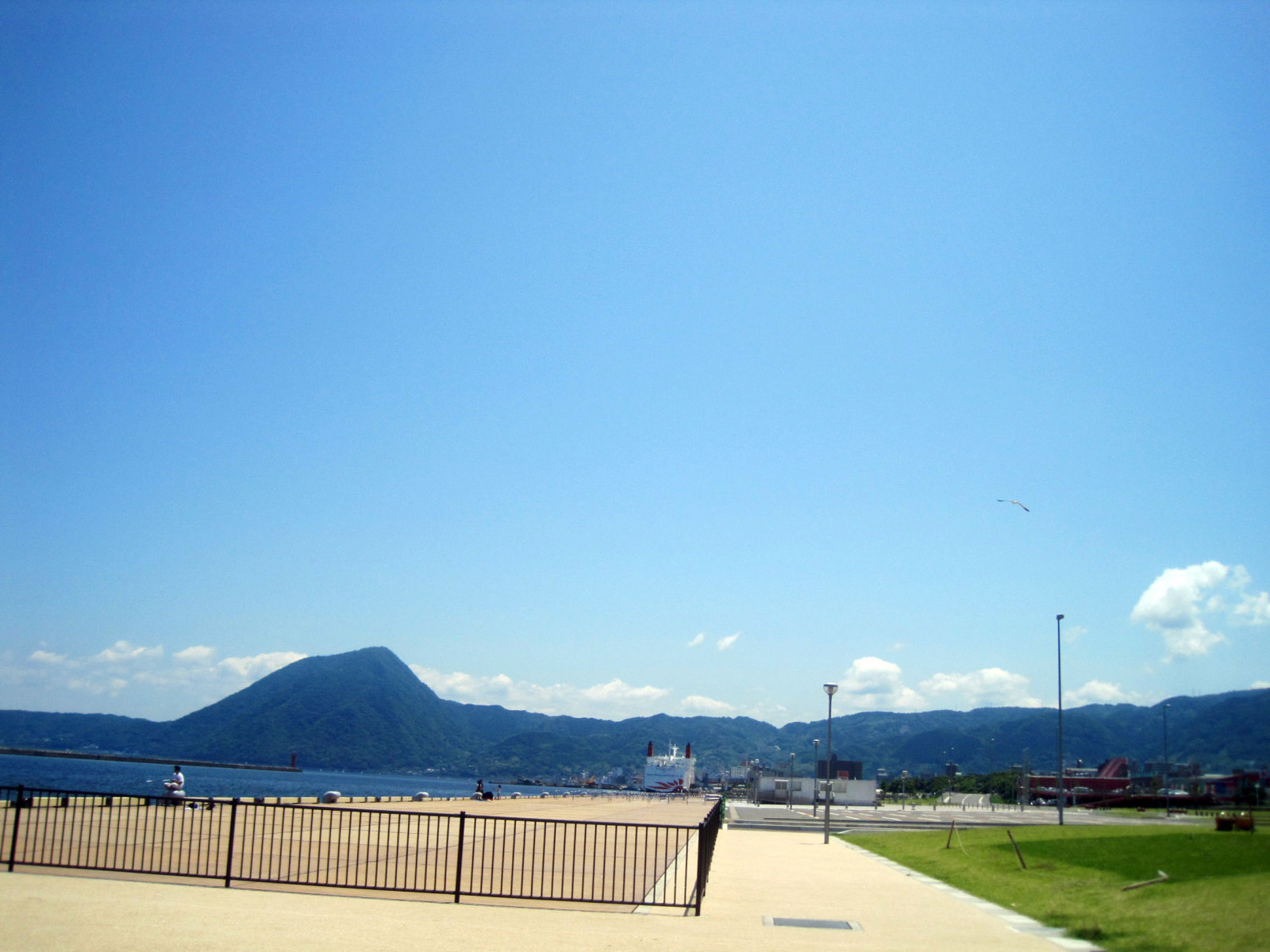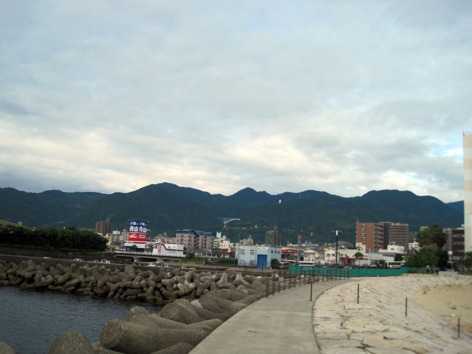 【上人ヶ浜公園は別府市の北部にある海岸の公園です。園内には芝生広場や小さな展望台もあり、背の高いパームツリーから南国の雰囲気が漂います。国道10号沿いの好立地にあり、また、別府海浜砂湯や別府市美術館が隣接しています。】だそうです。うん? 展望台ってあったっけ?
