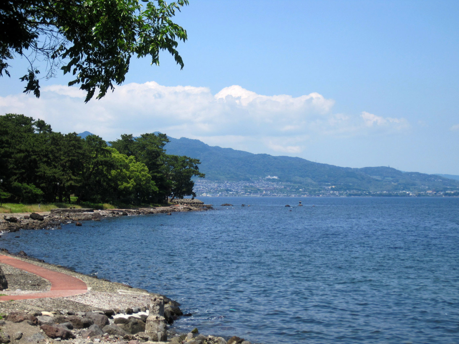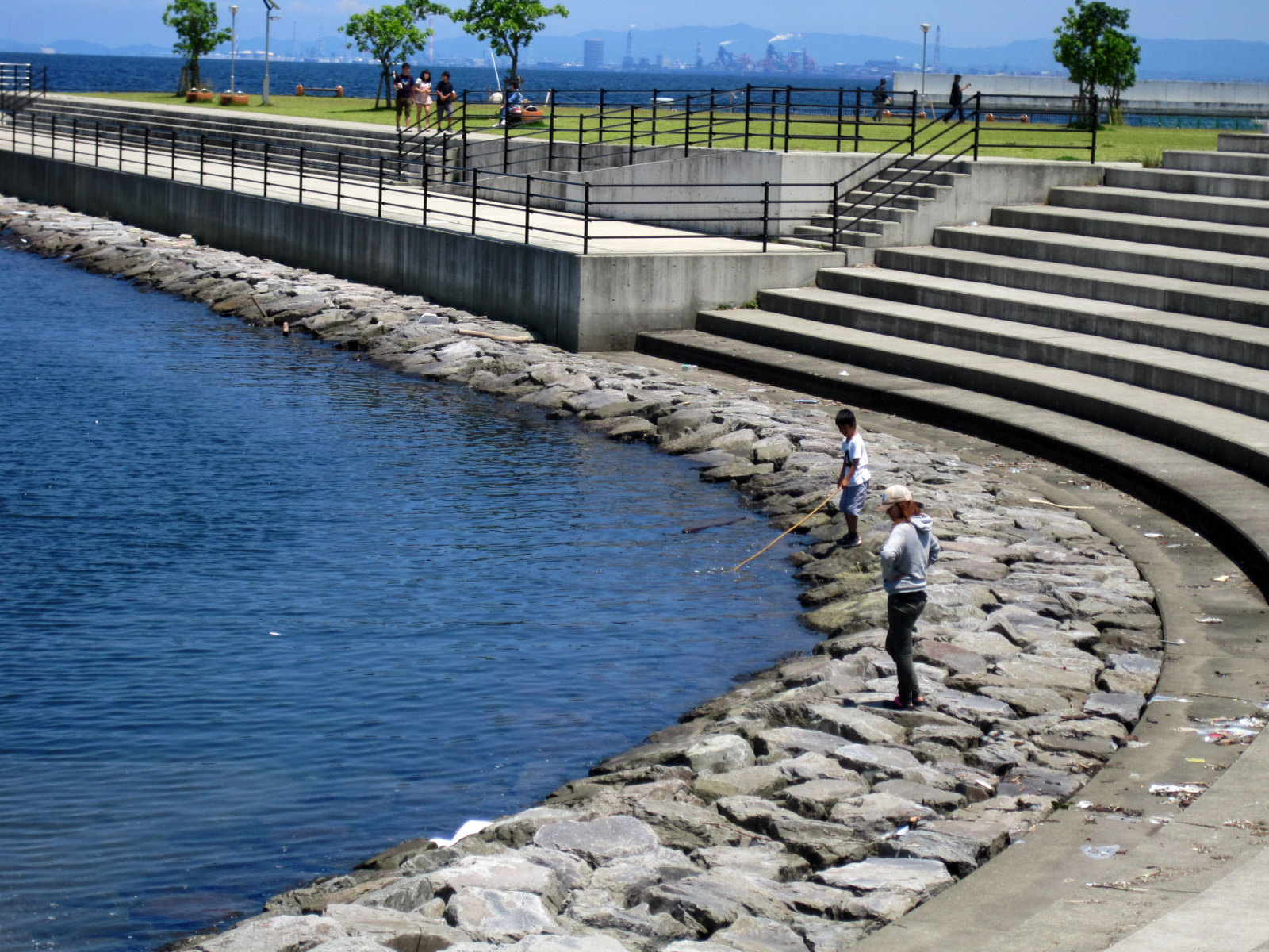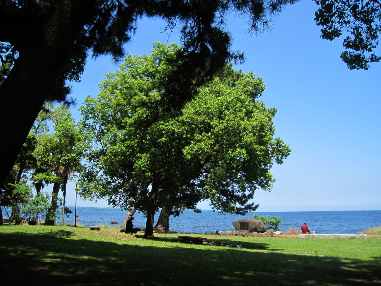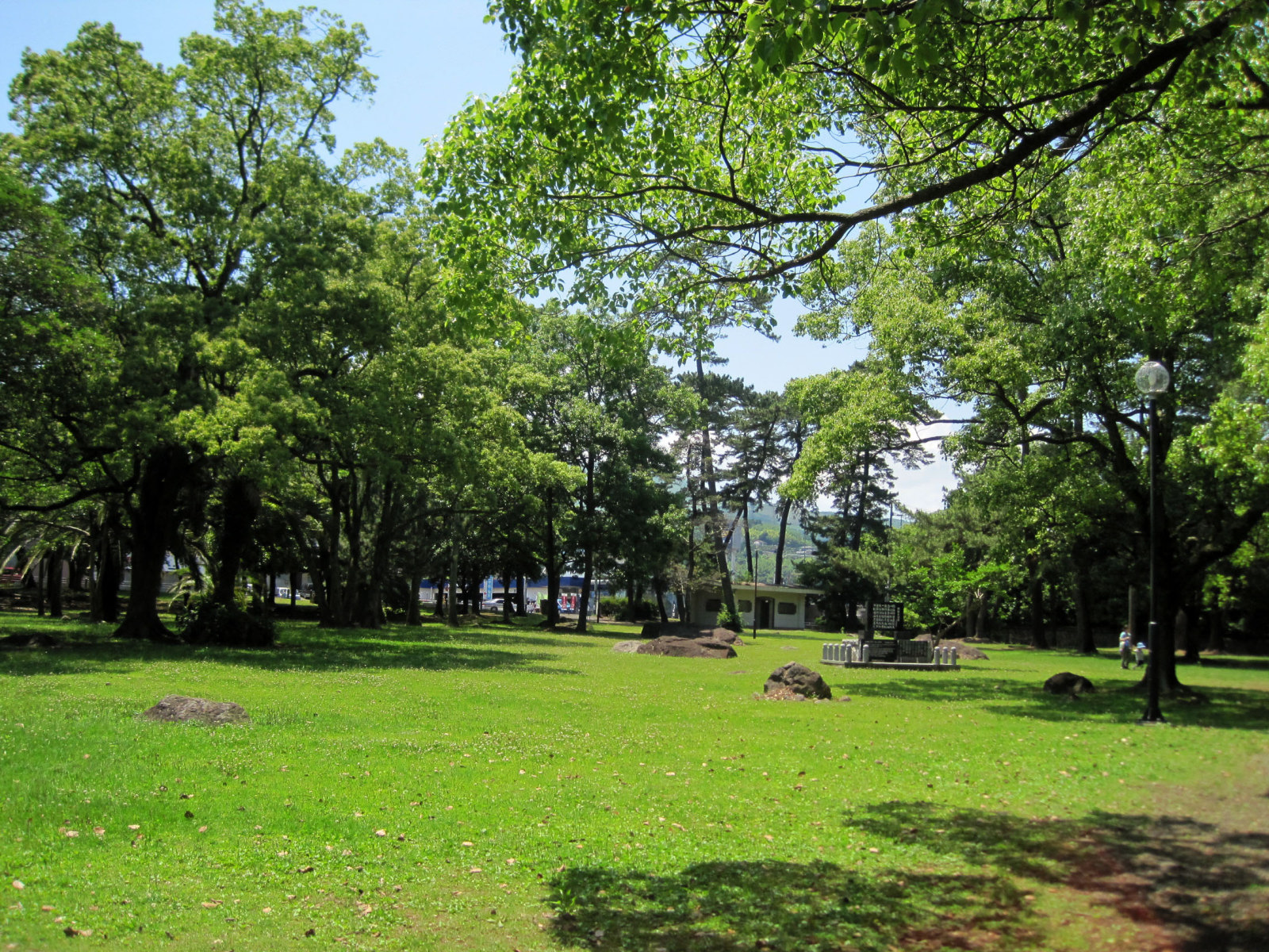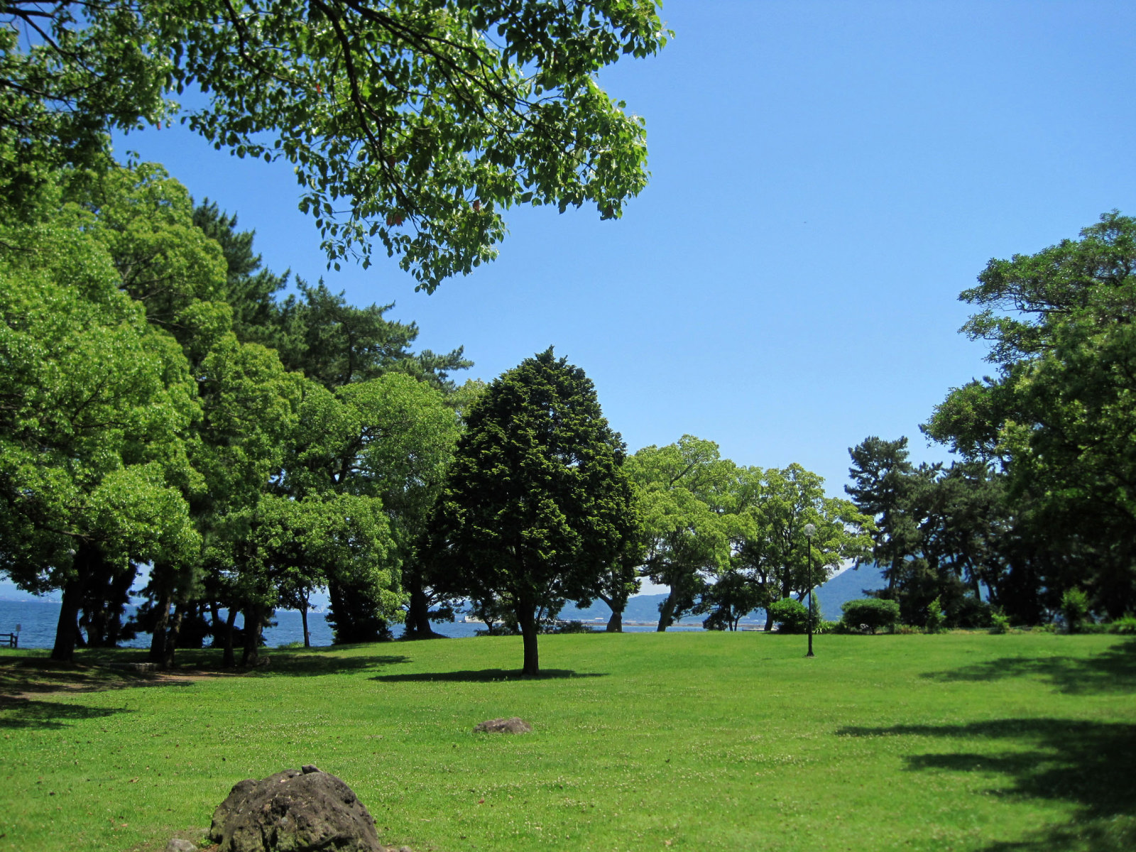 【上人ヶ浜公園は別府市の北部にある海岸の公園です。園内には芝生広場や小さな展望台もあり、背の高いパームツリーから南国の雰囲気が漂います。国道10号沿いの好立地にあり、また、別府海浜砂湯や別府市美術館が隣接しています。】だそうです。うん? 展望台ってあったっけ?