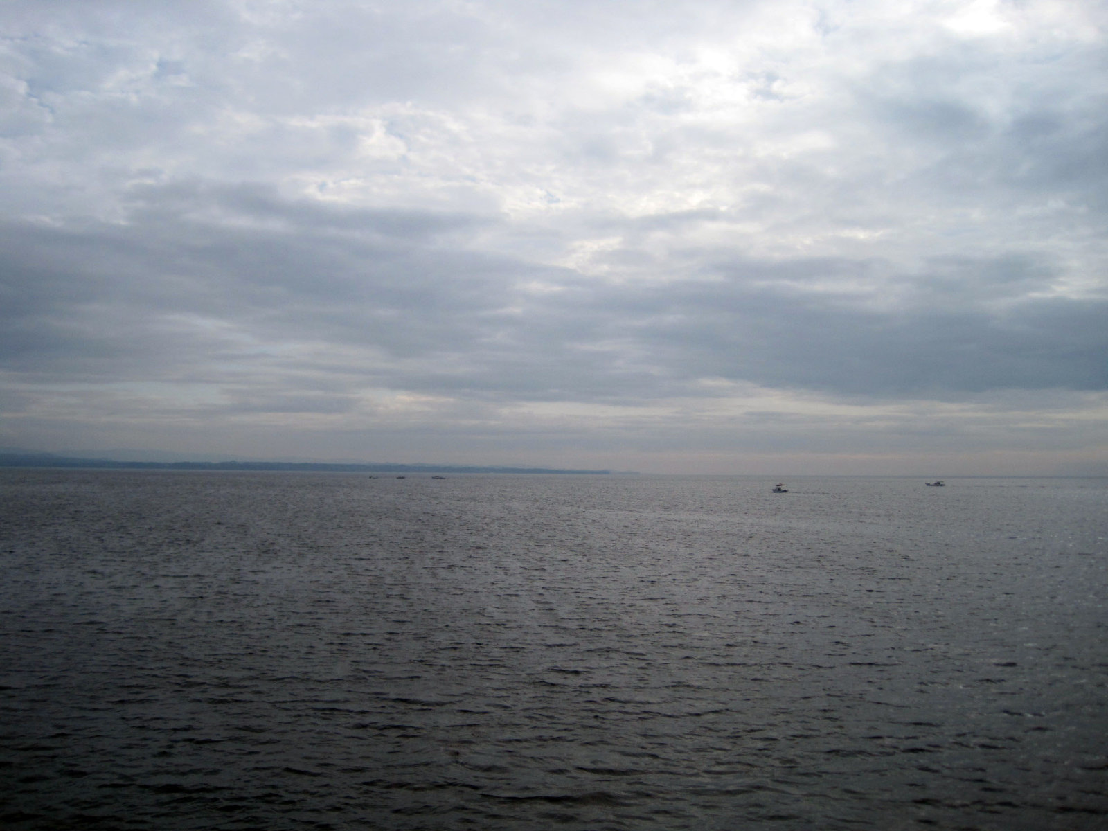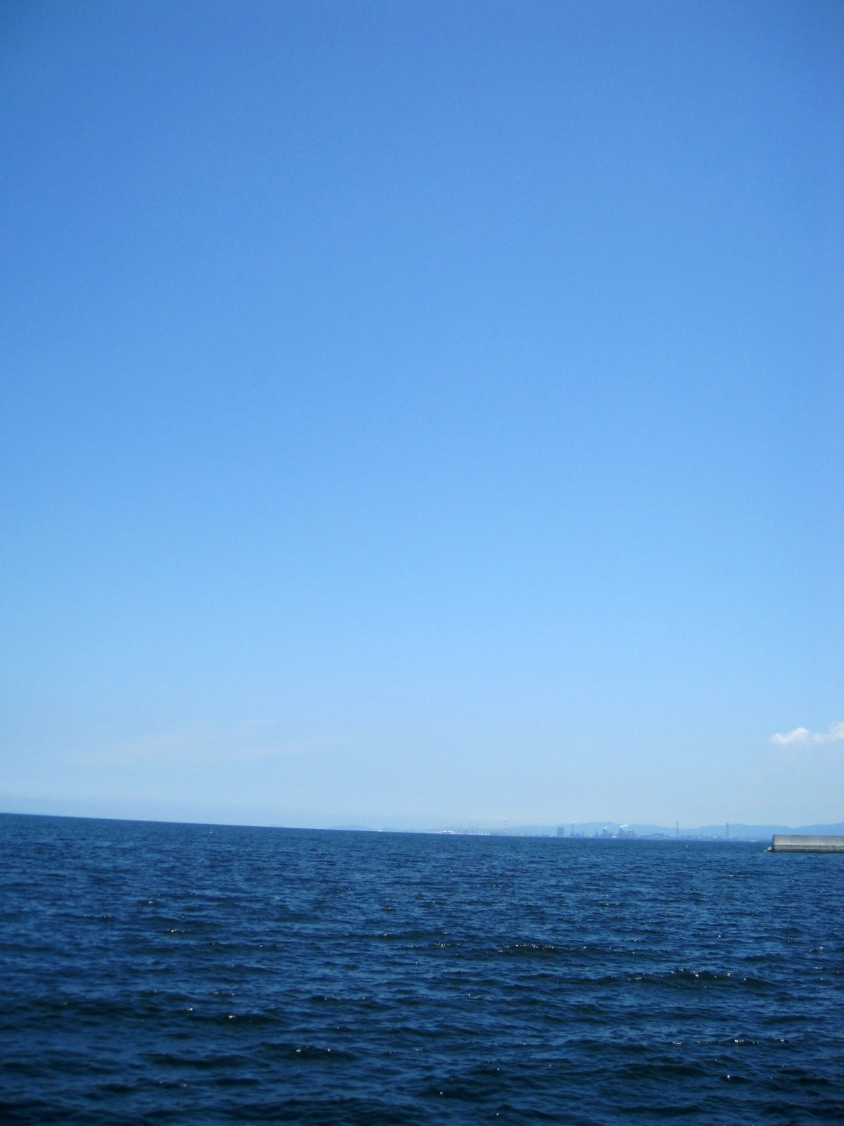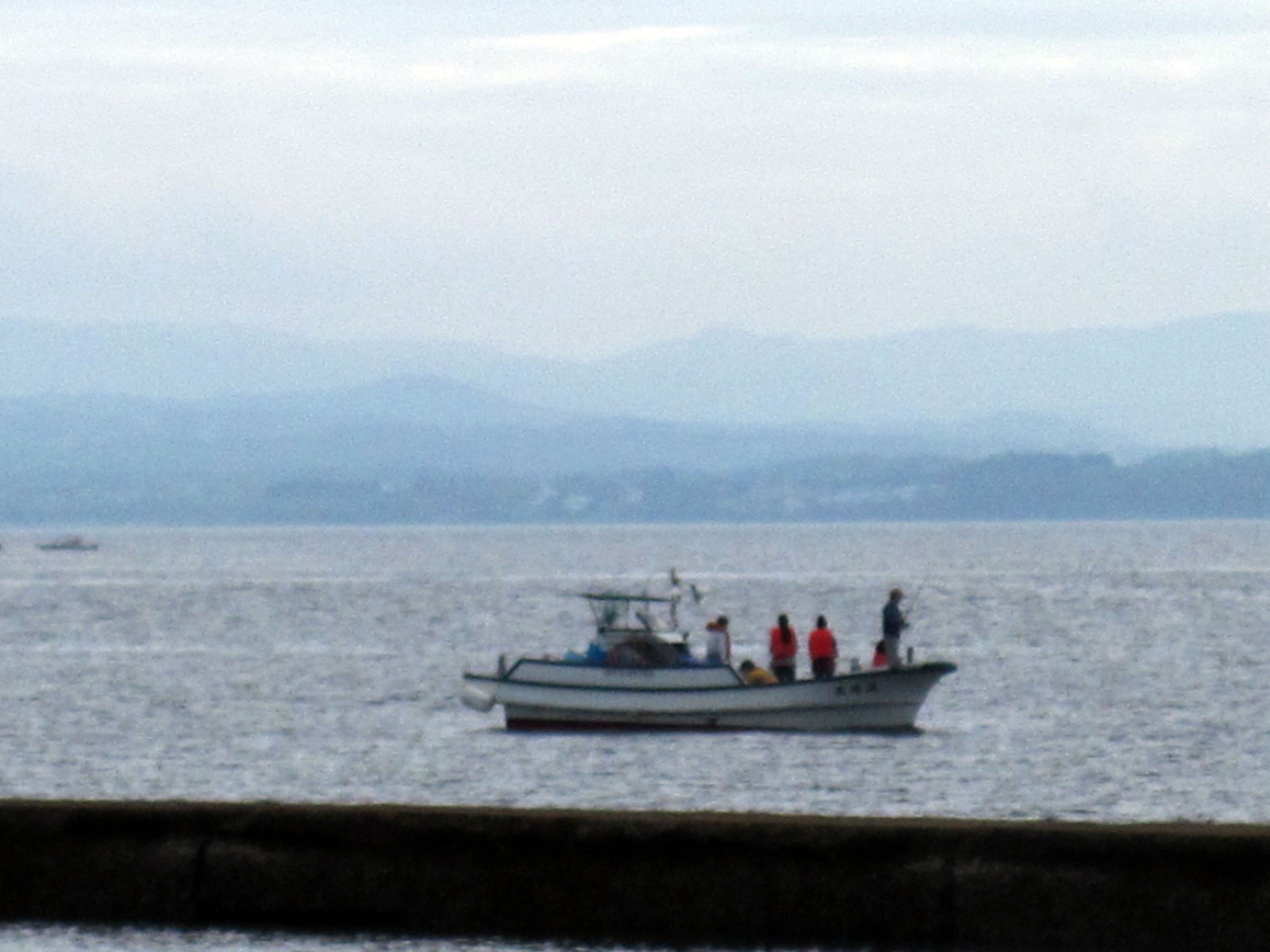 釣り人さんたちも・・・でも,豊後水道の方は,伊予灘だそうですが・・・水平線です。