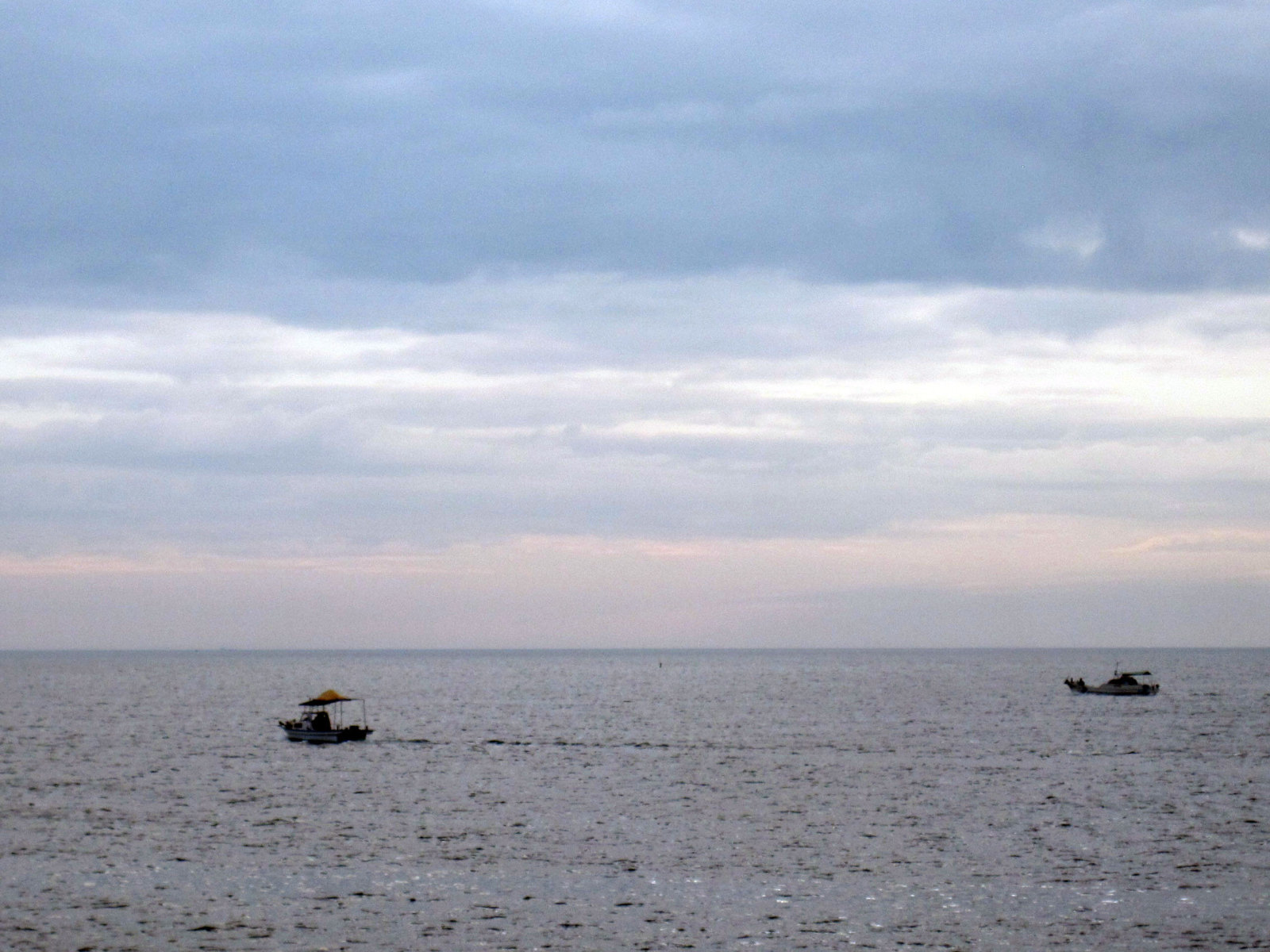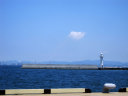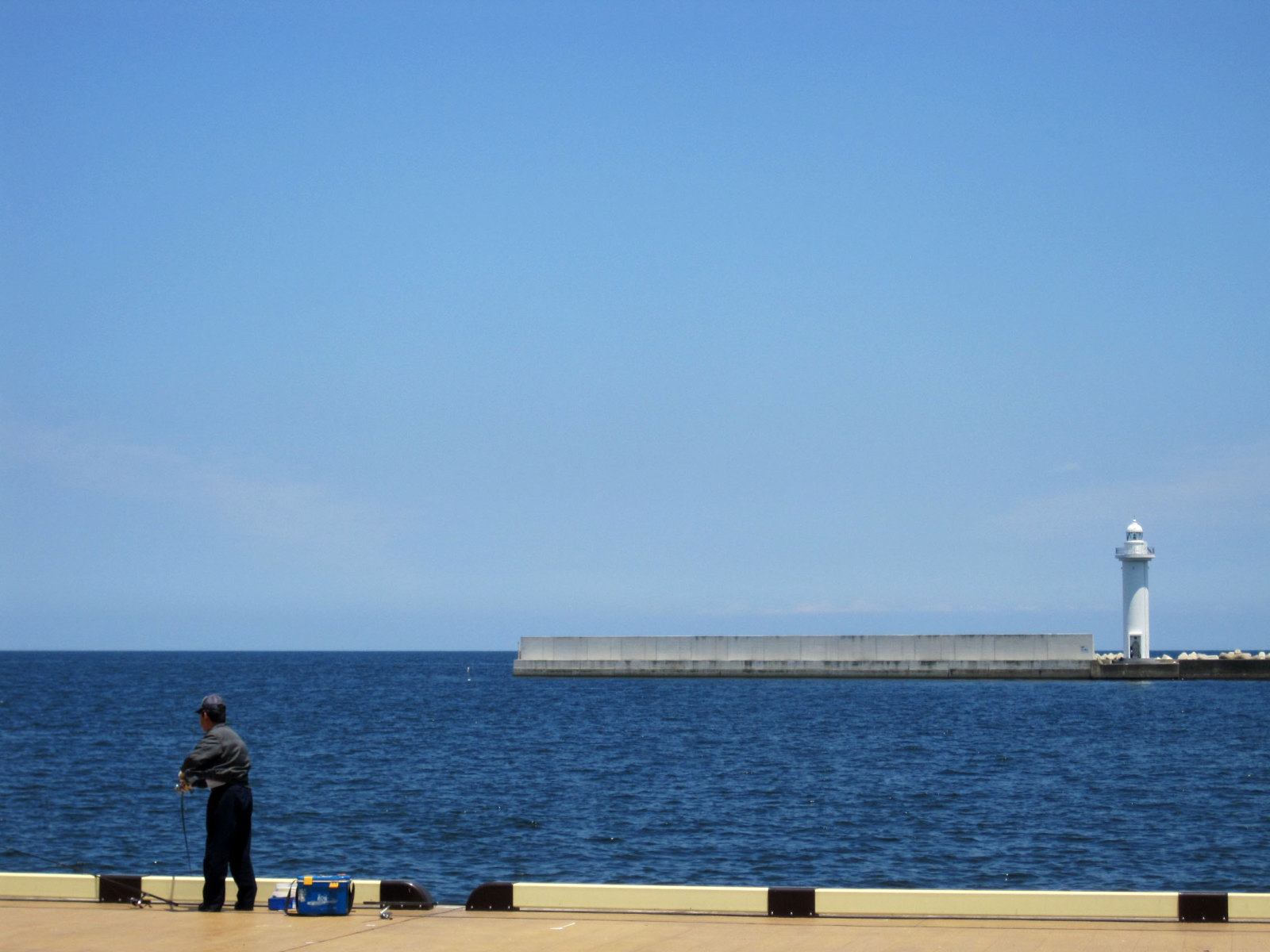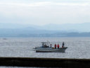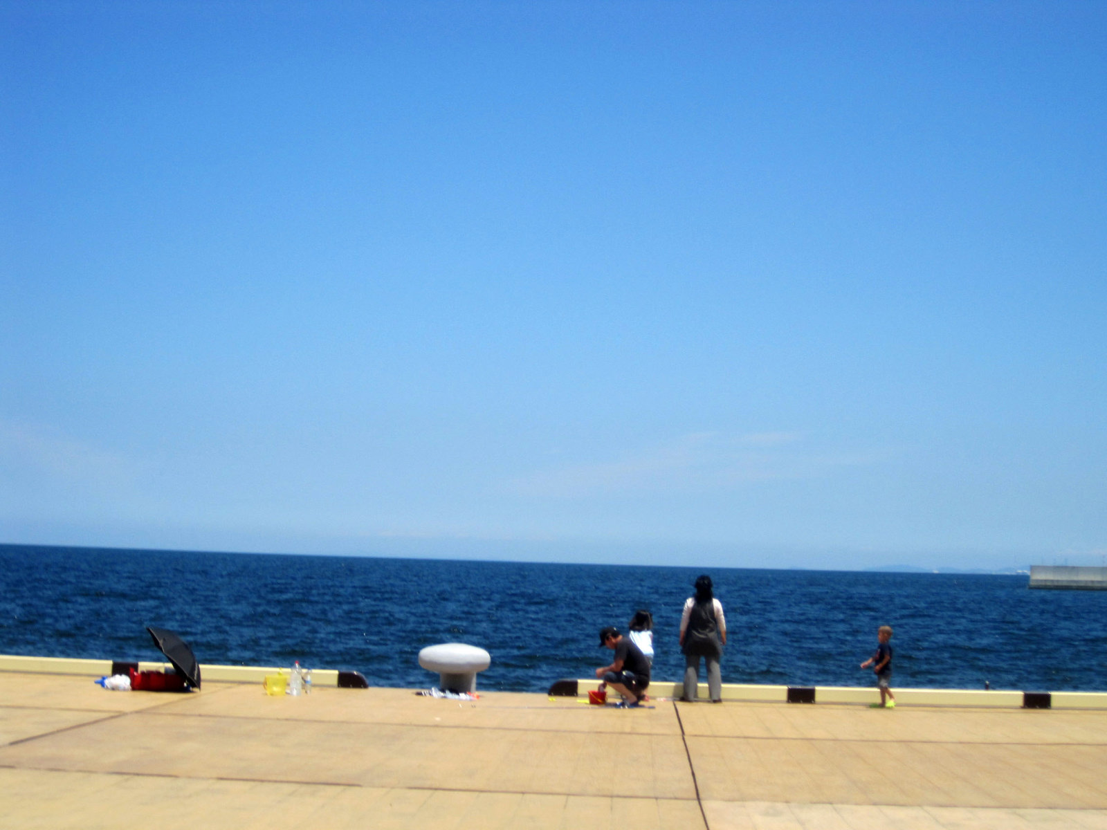 釣り人さんたちも・・・でも,豊後水道の方は,伊予灘だそうですが・・・水平線です。