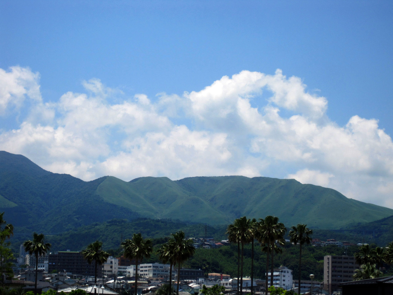 山側も1300mを超す鶴見岳と,由布岳に連なる山々です。