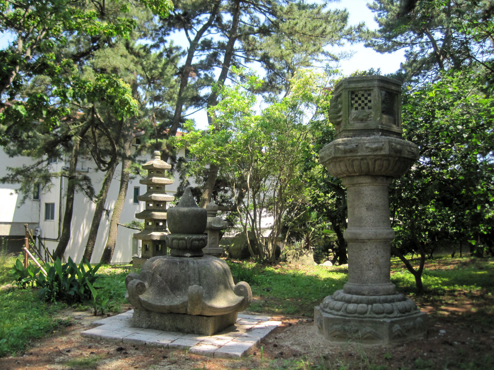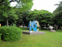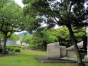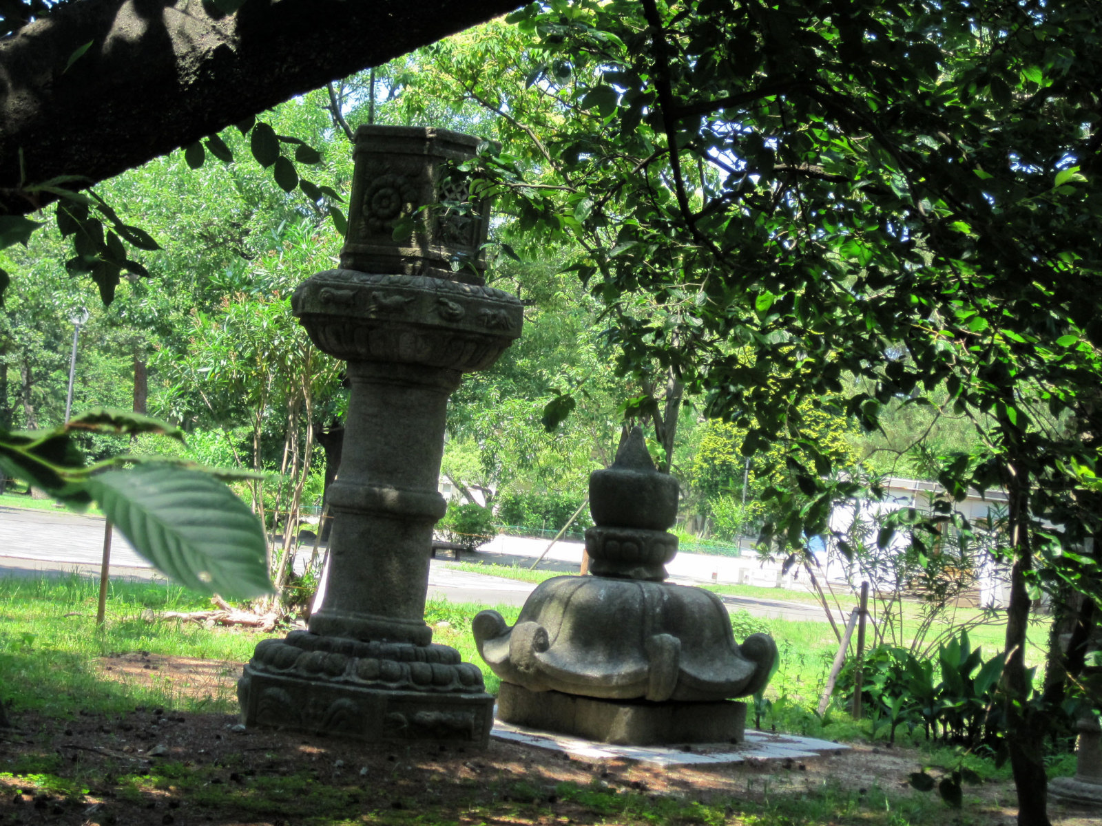 美術館の中庭の灯篭を観て・・・そして,いろんな紫陽花などなど,そして歴史の石は,外に陳列されていました。