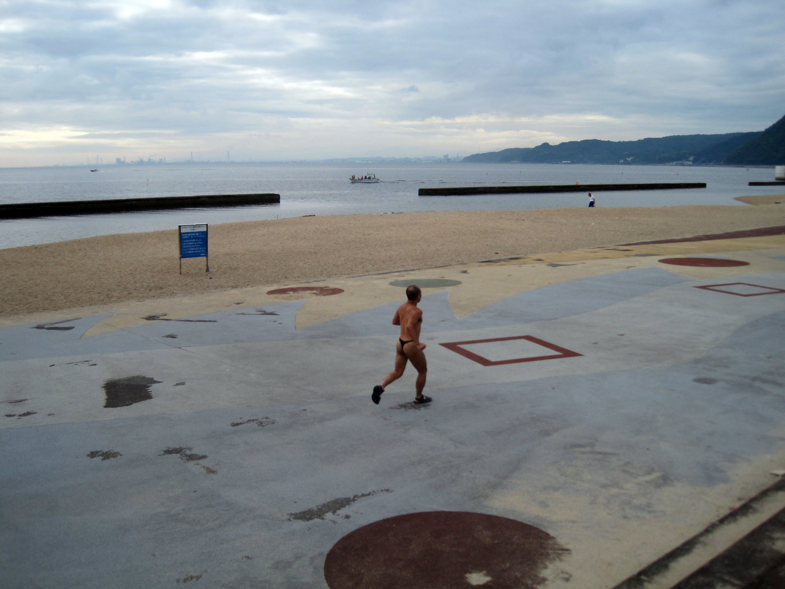 あぁ・・・おじさんが走っていると思えばTバック・・・う~ん,微妙!