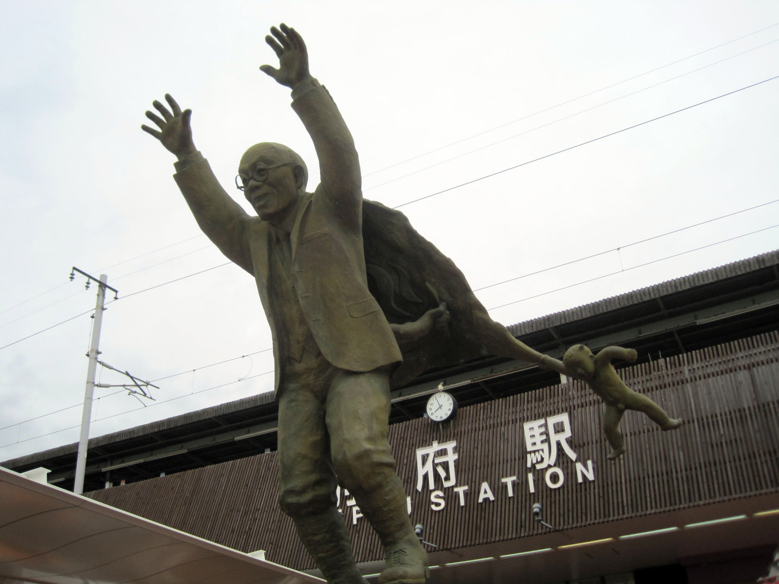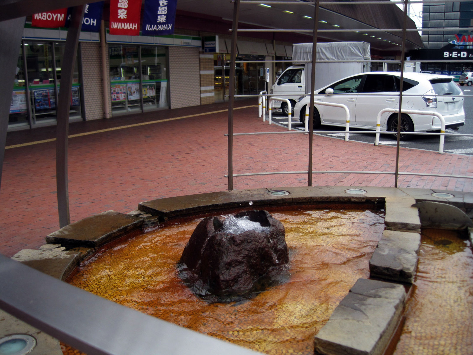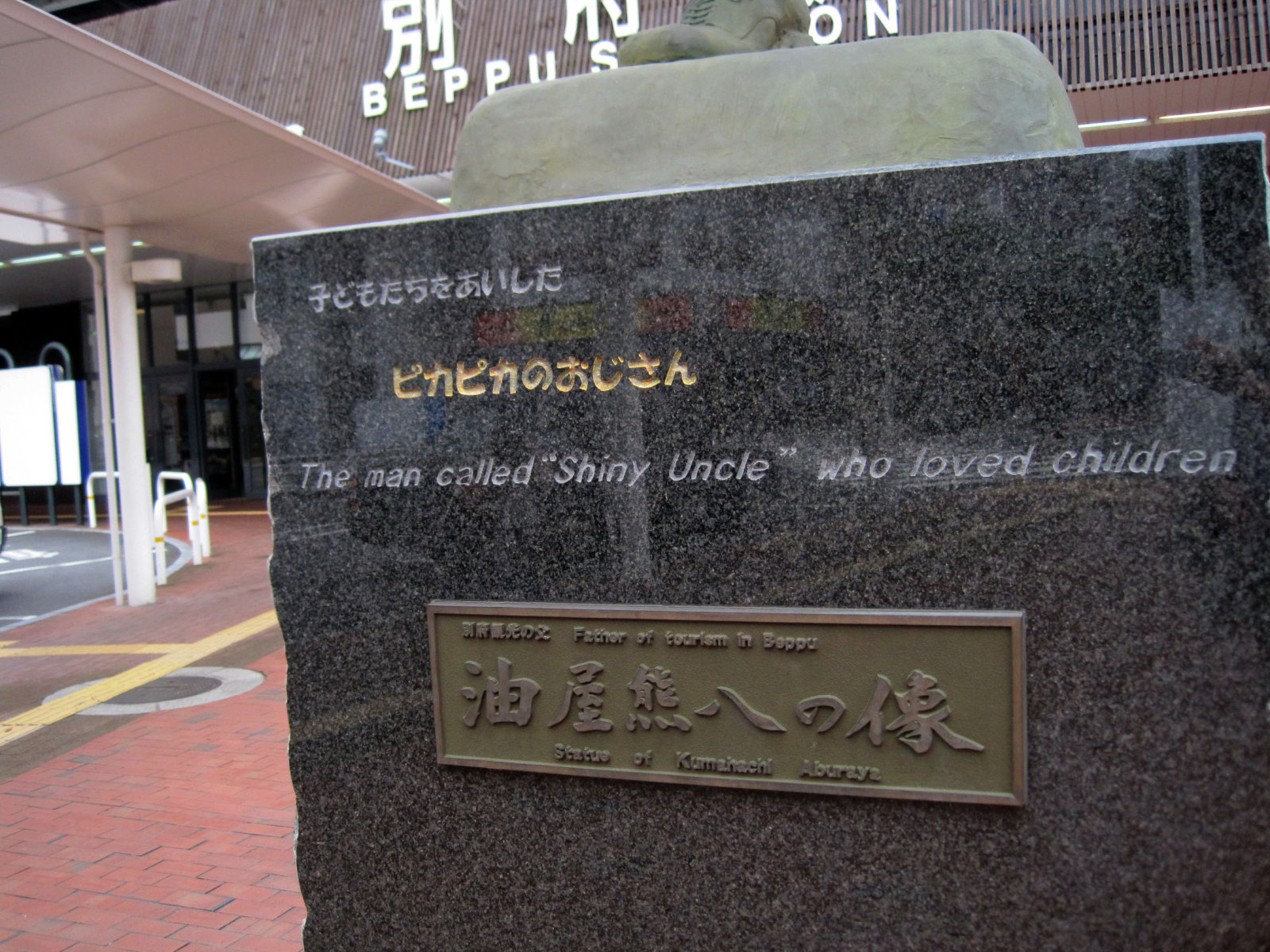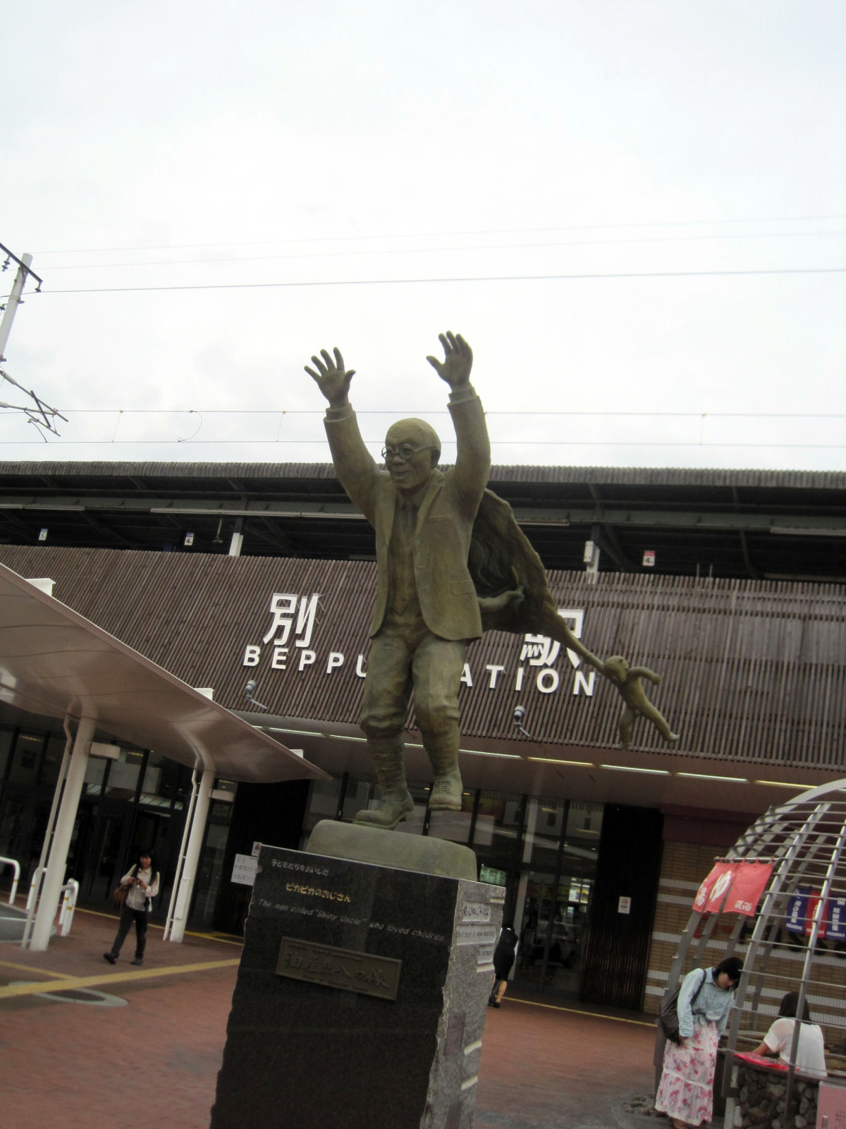 別府駅前には手湯と・・・へんなおじさんの銅像!