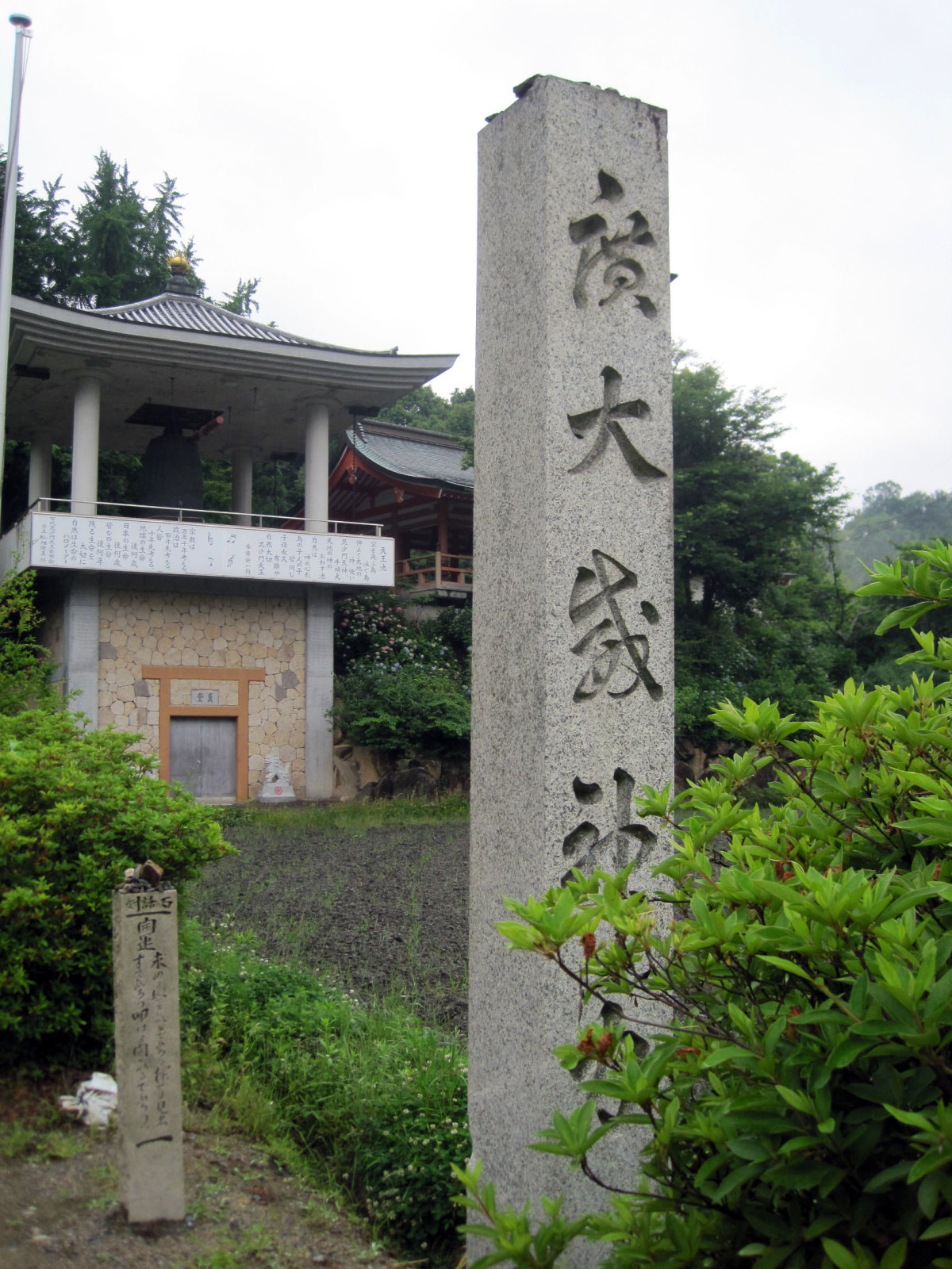 山門にも鐘がありましたが,中腹に,大きな鐘楼もあります。【巨大梵鐘の重量は11トン余り、中国四国一の大きさ、回りに般若心経はんにゃしんぎょうが刻まれている。 (道路事情により これ以上の重量での搬入が困難でした)】だそうです。