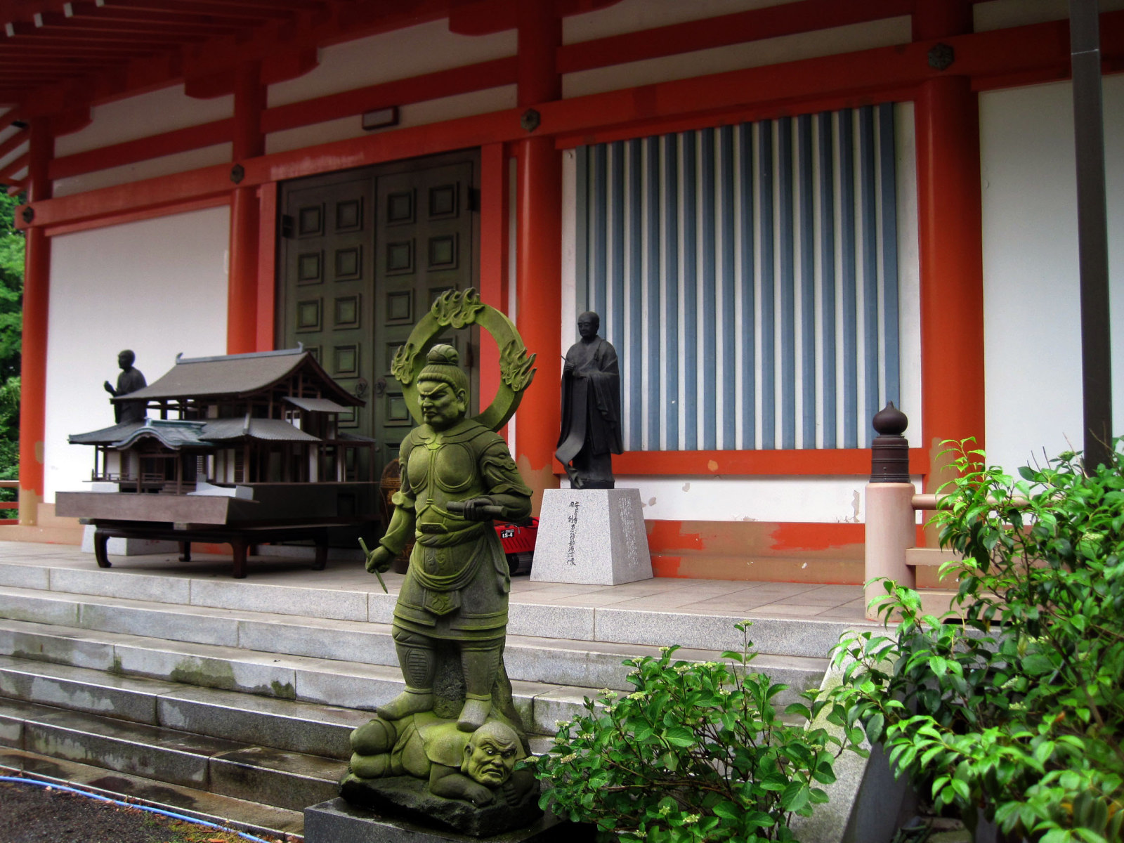 【1984年11月に建立された成願堂(祈りの場)内には、一木彫りの等身大の毘沙門天像36体(本堂とで42体)が並んでいる。】の前には,いくつかの像も・・・