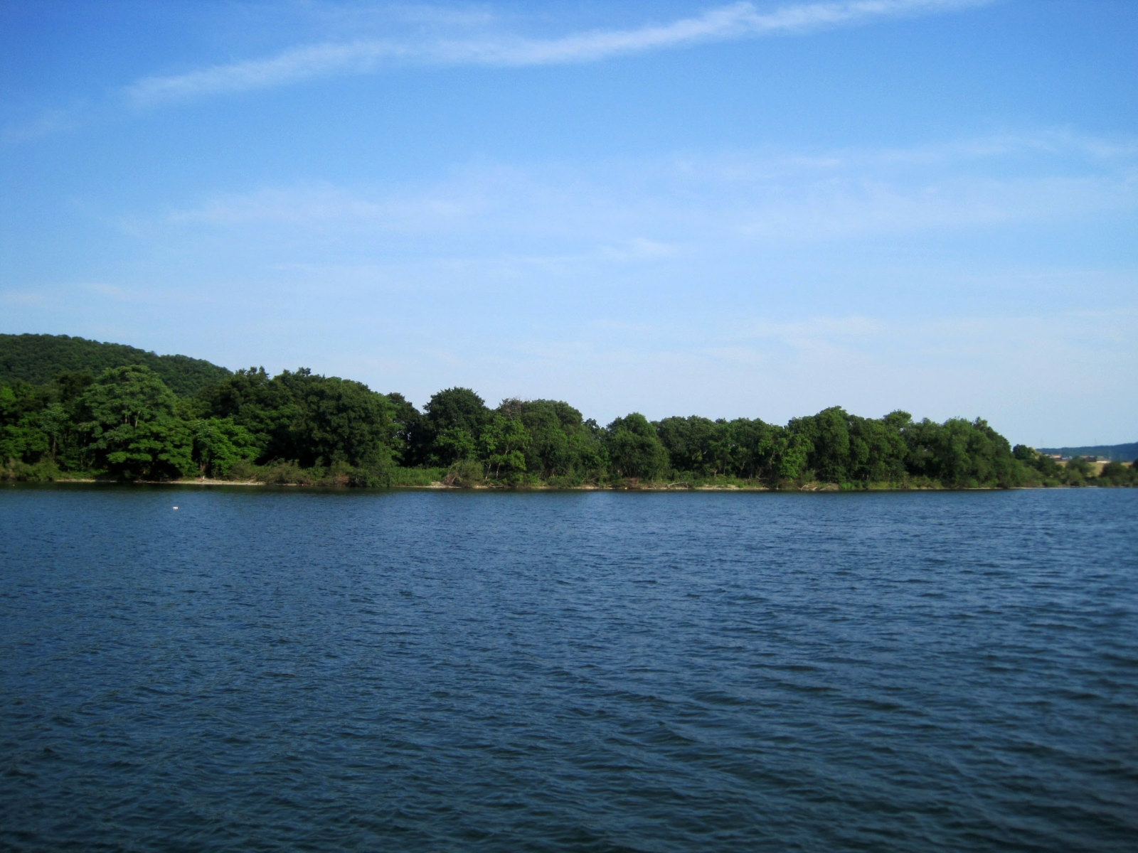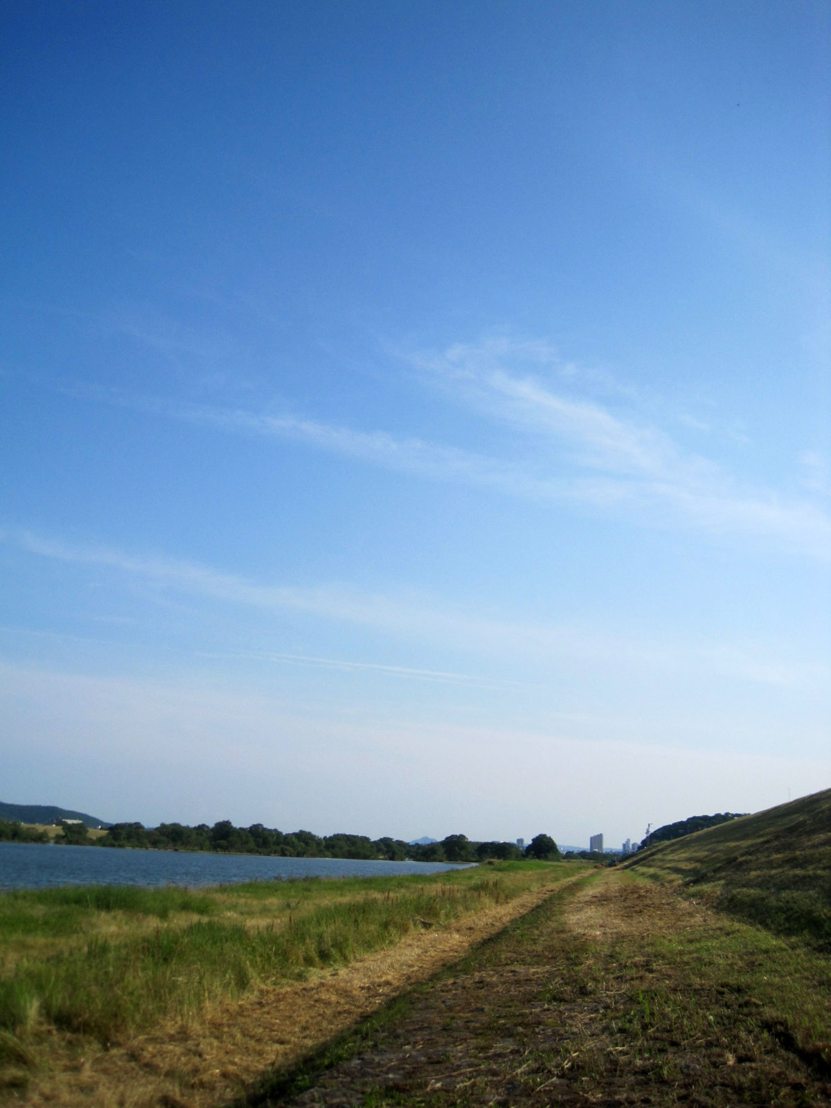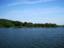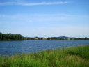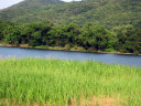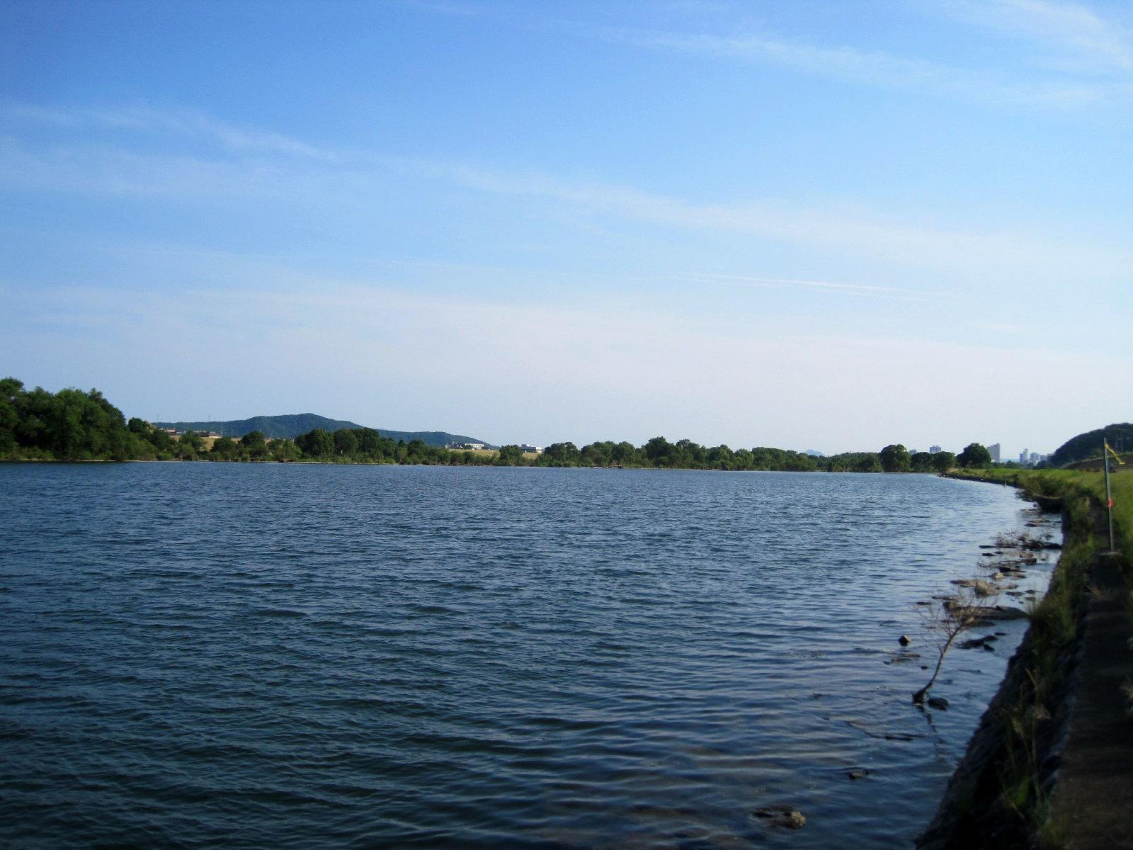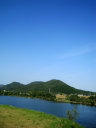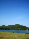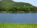 青い水面と空,そして緑の山のコントラストがいいですね1