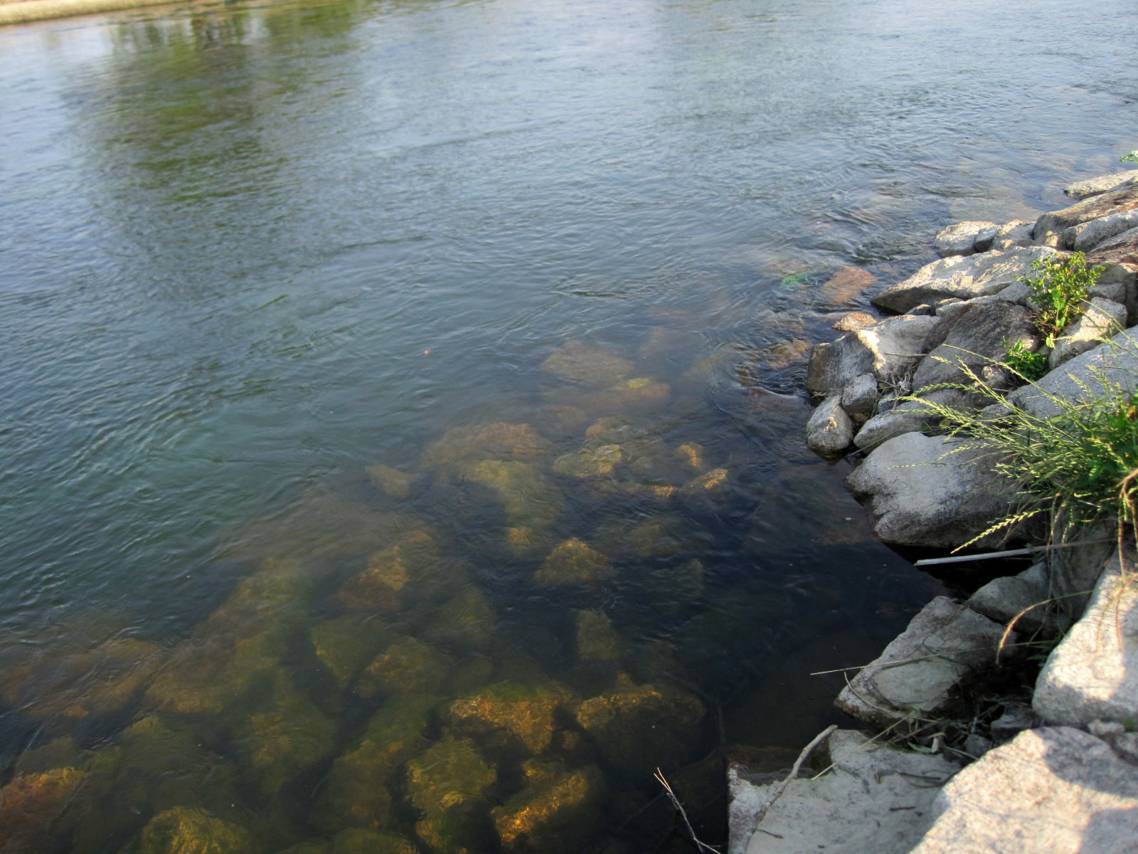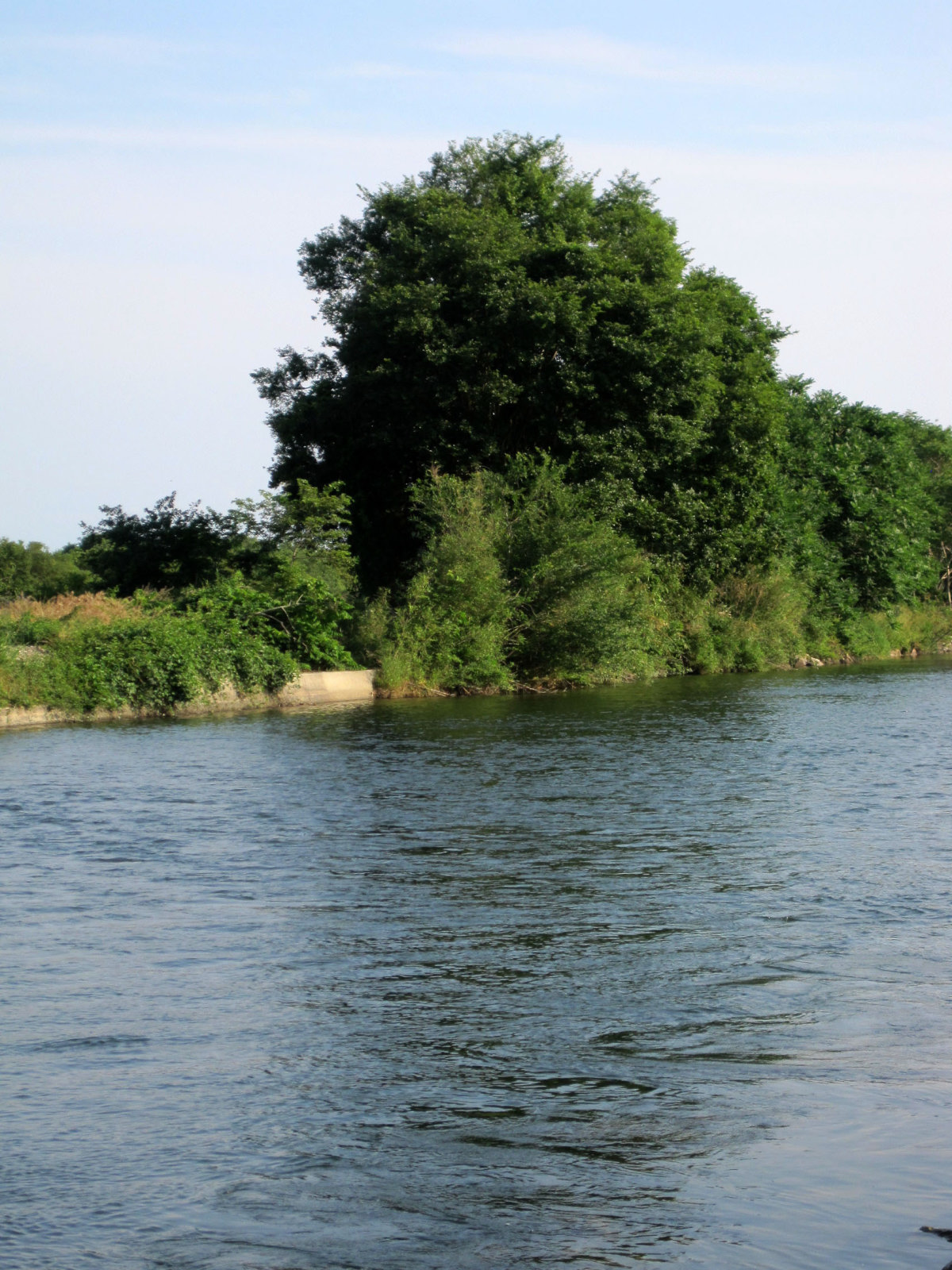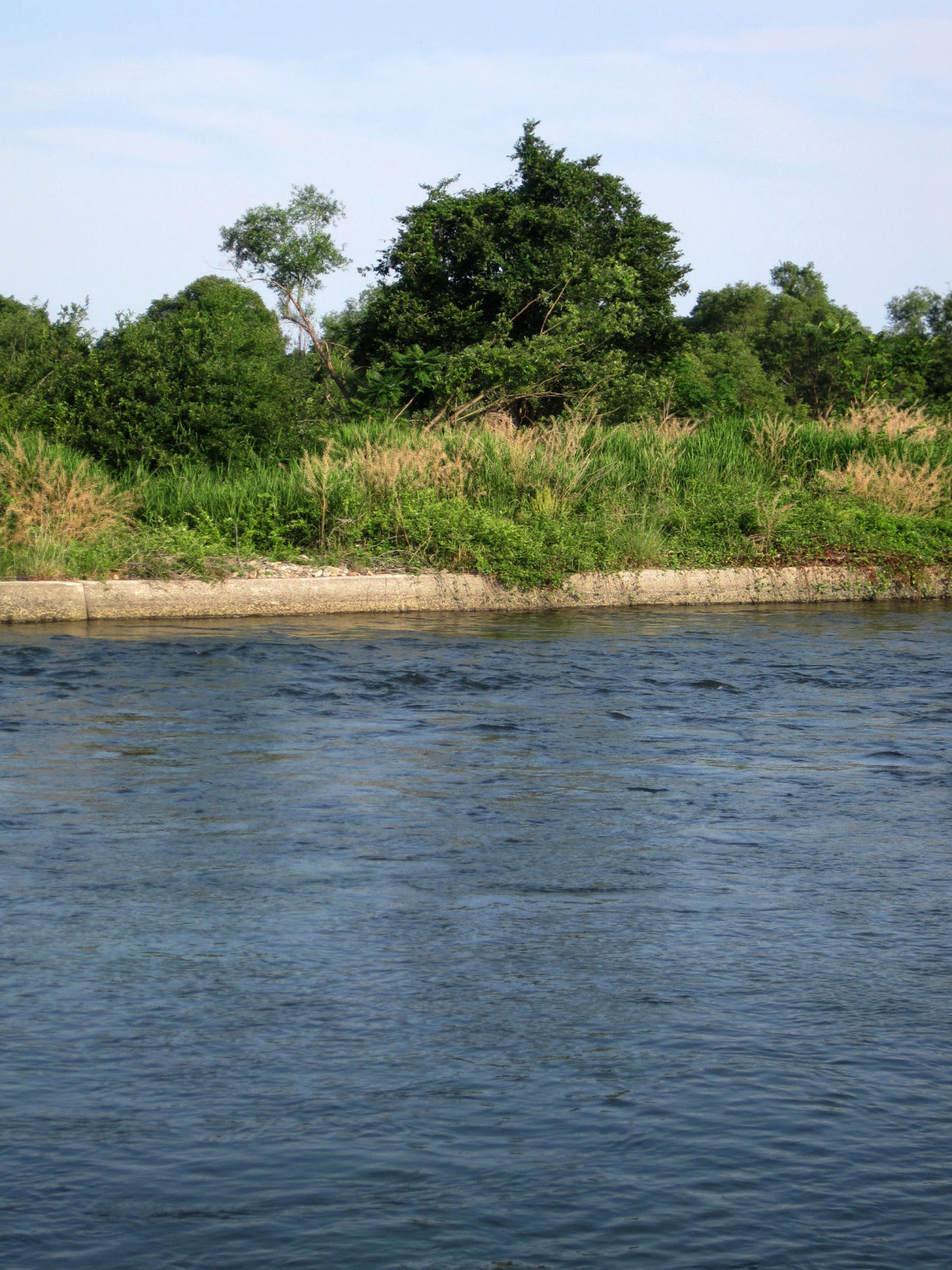 もう少し下流の三野公園の下の辺り・・木々が結構川面に沈んだ感じですものね,水量はいずれにしても多いのでしょう!