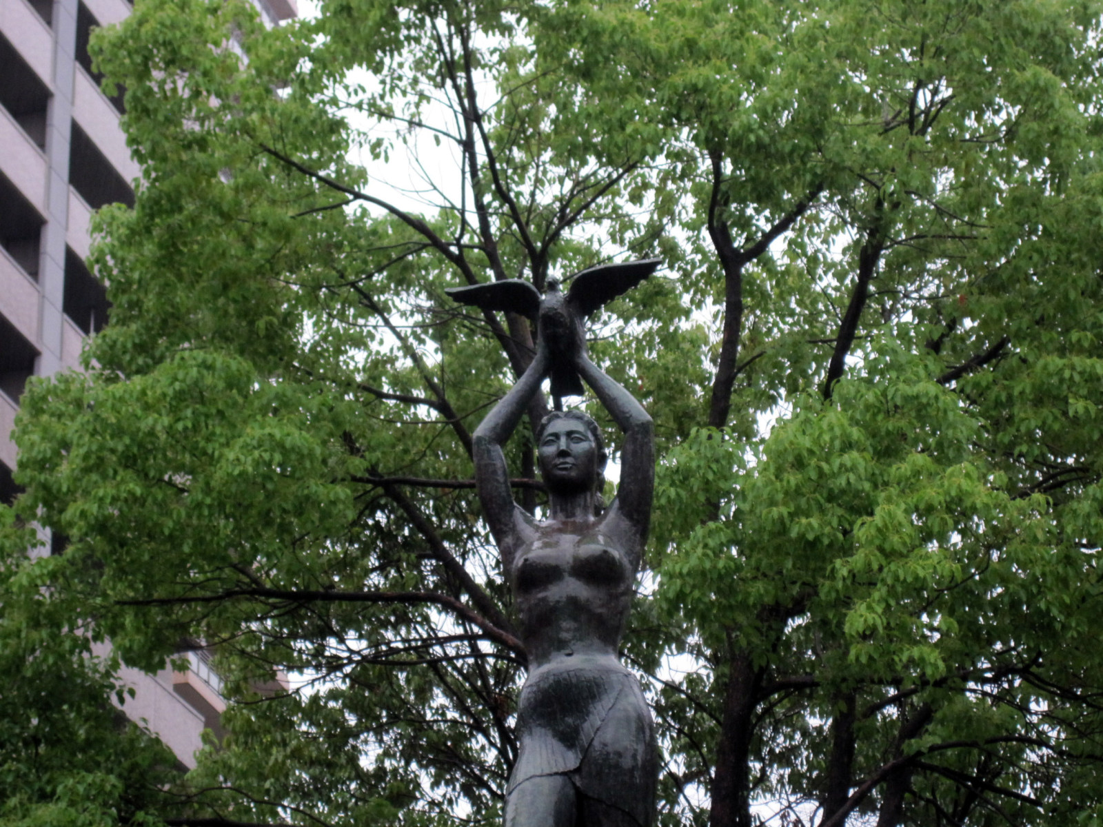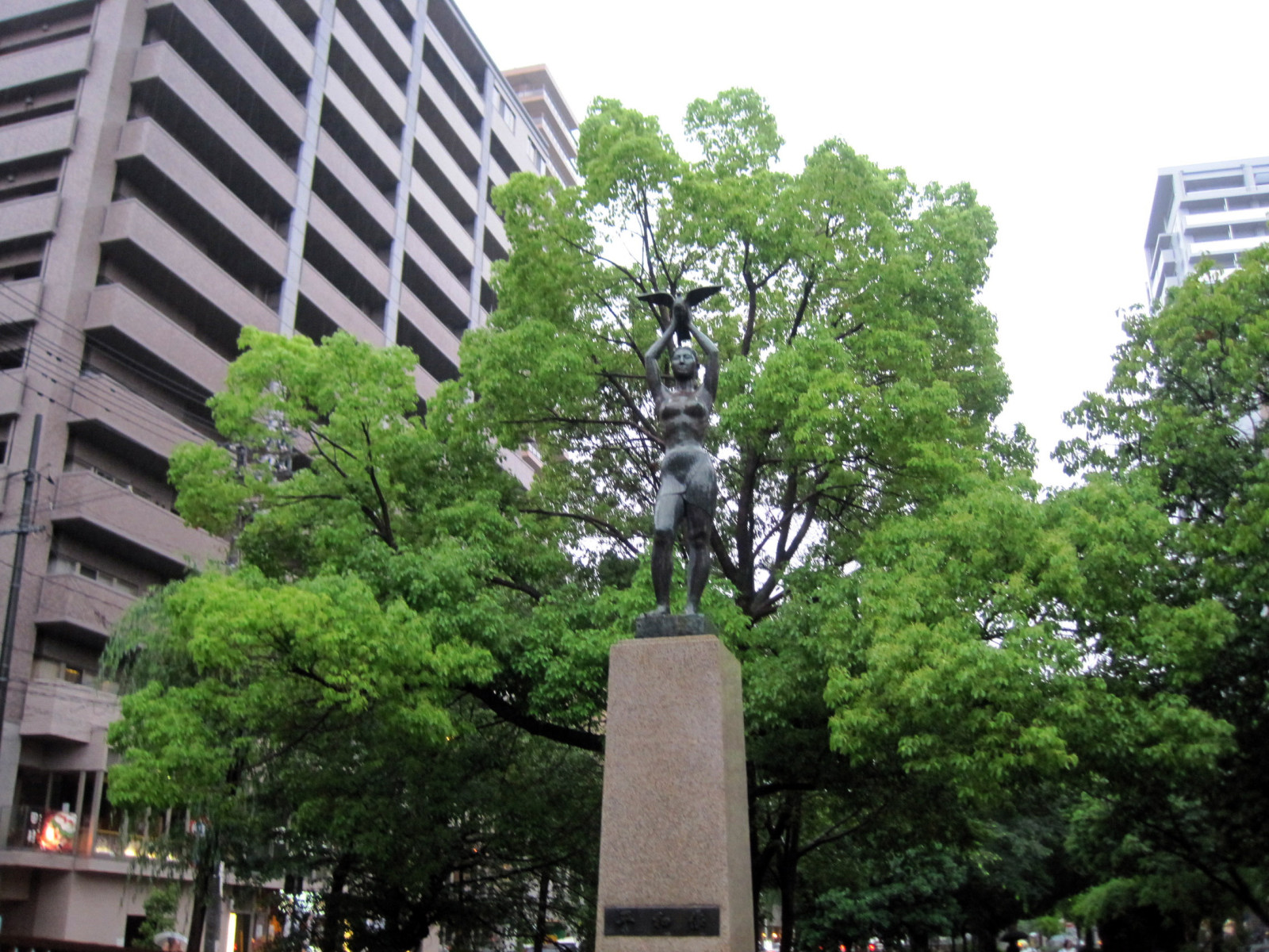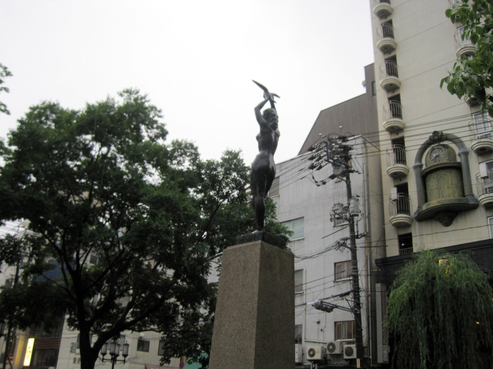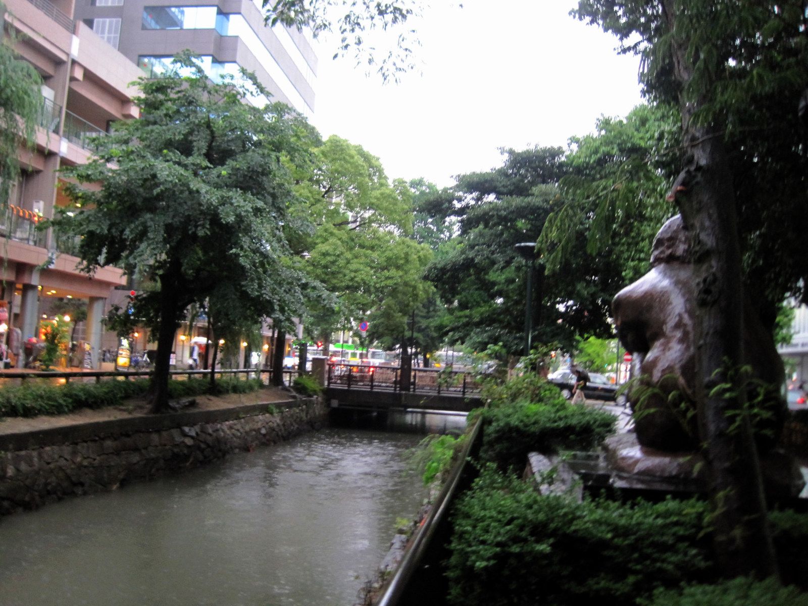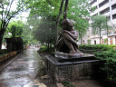 そして,雨に煙る西川緑道公園ですが・・・銅像なども,ちょっと悲しそう。