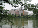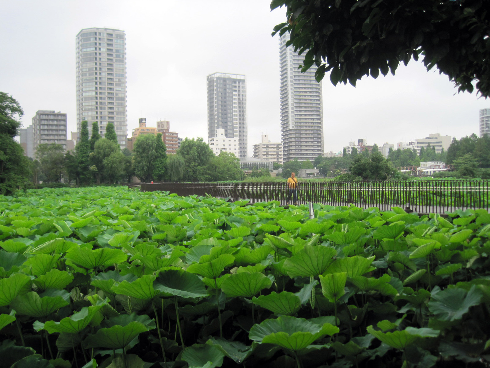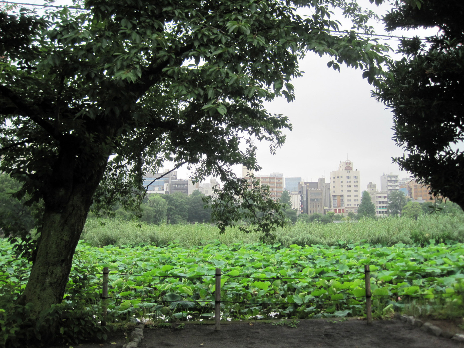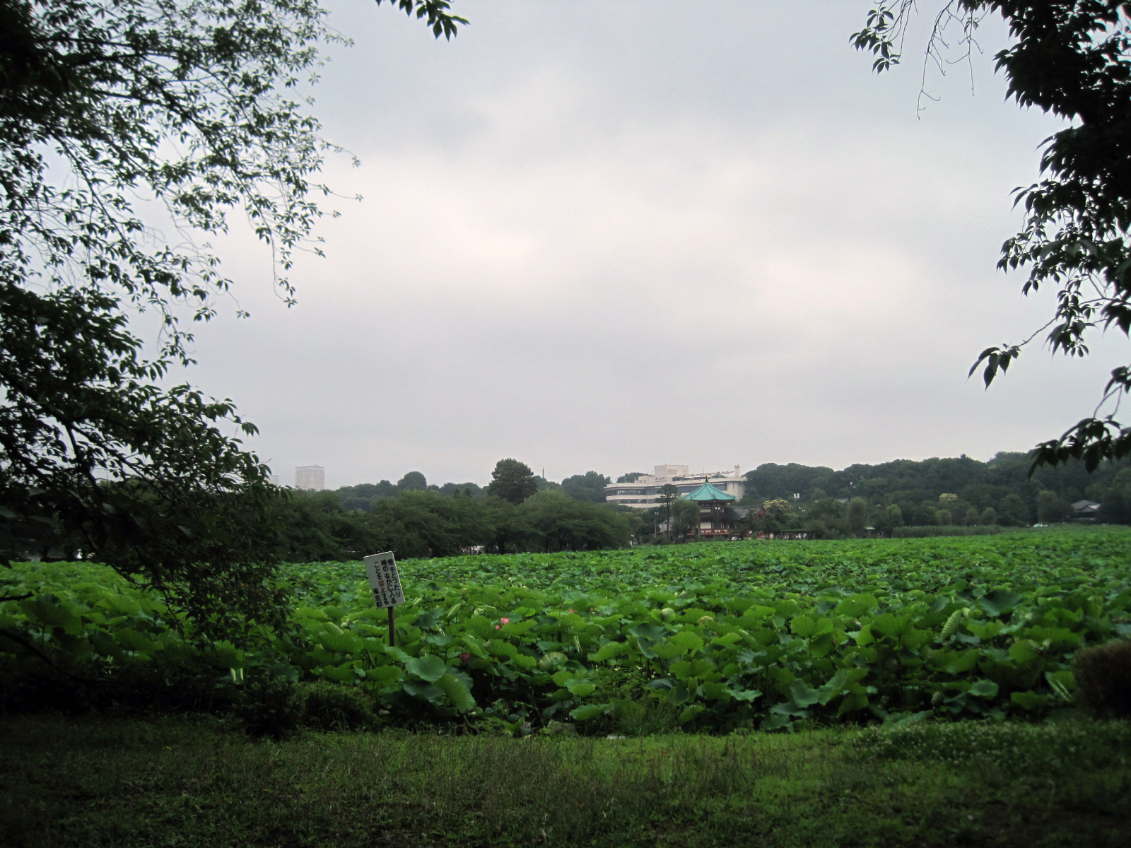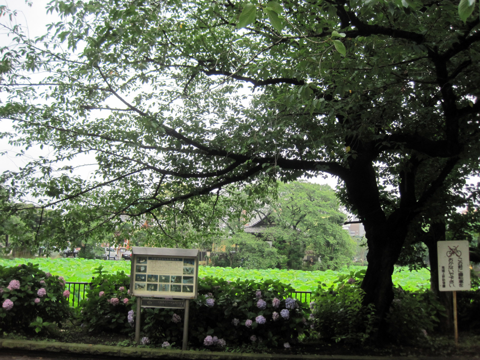 さて,そこから,道路を挟んで不忍池! もう,水面は,蓮に覆われていて,見えません!